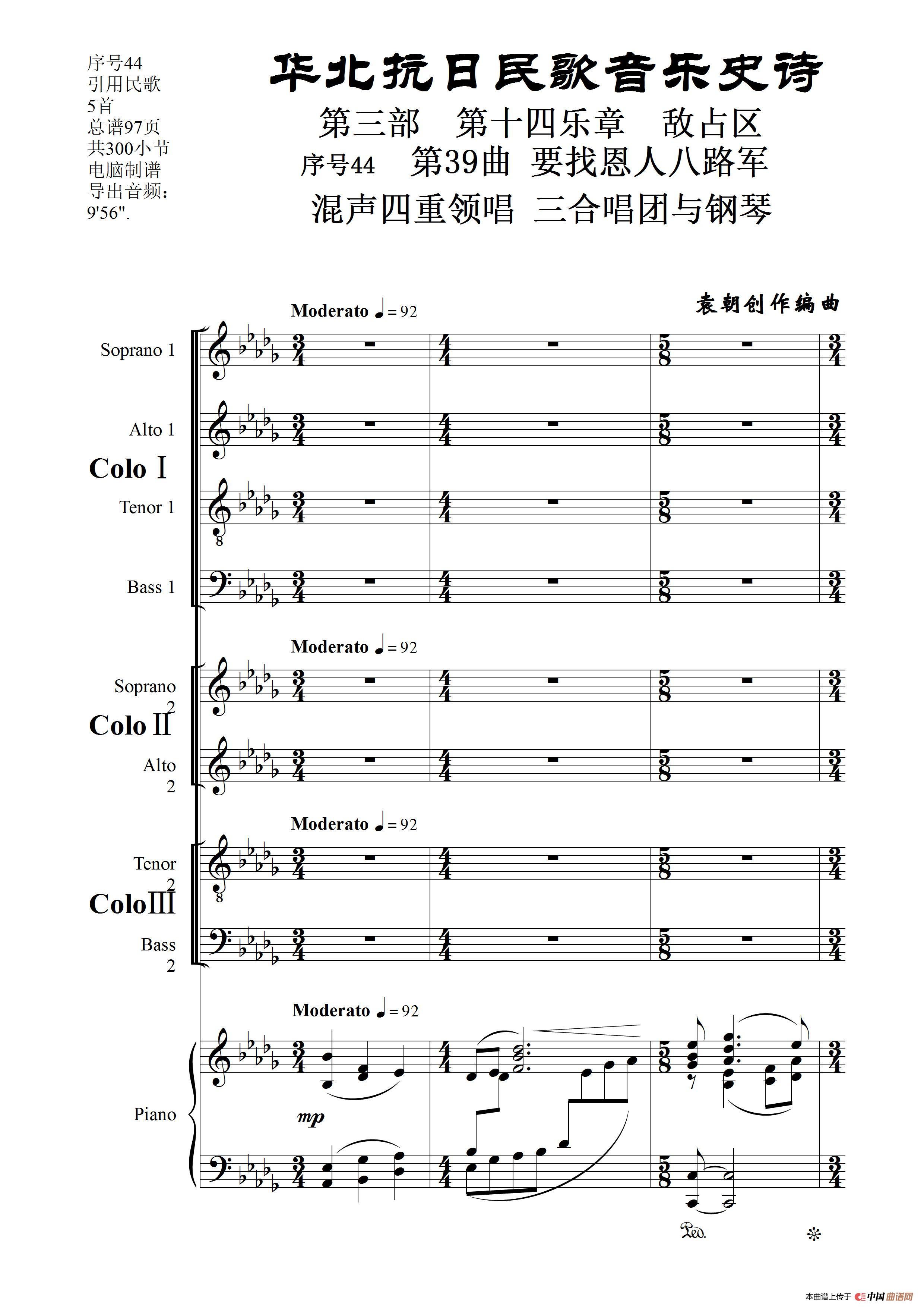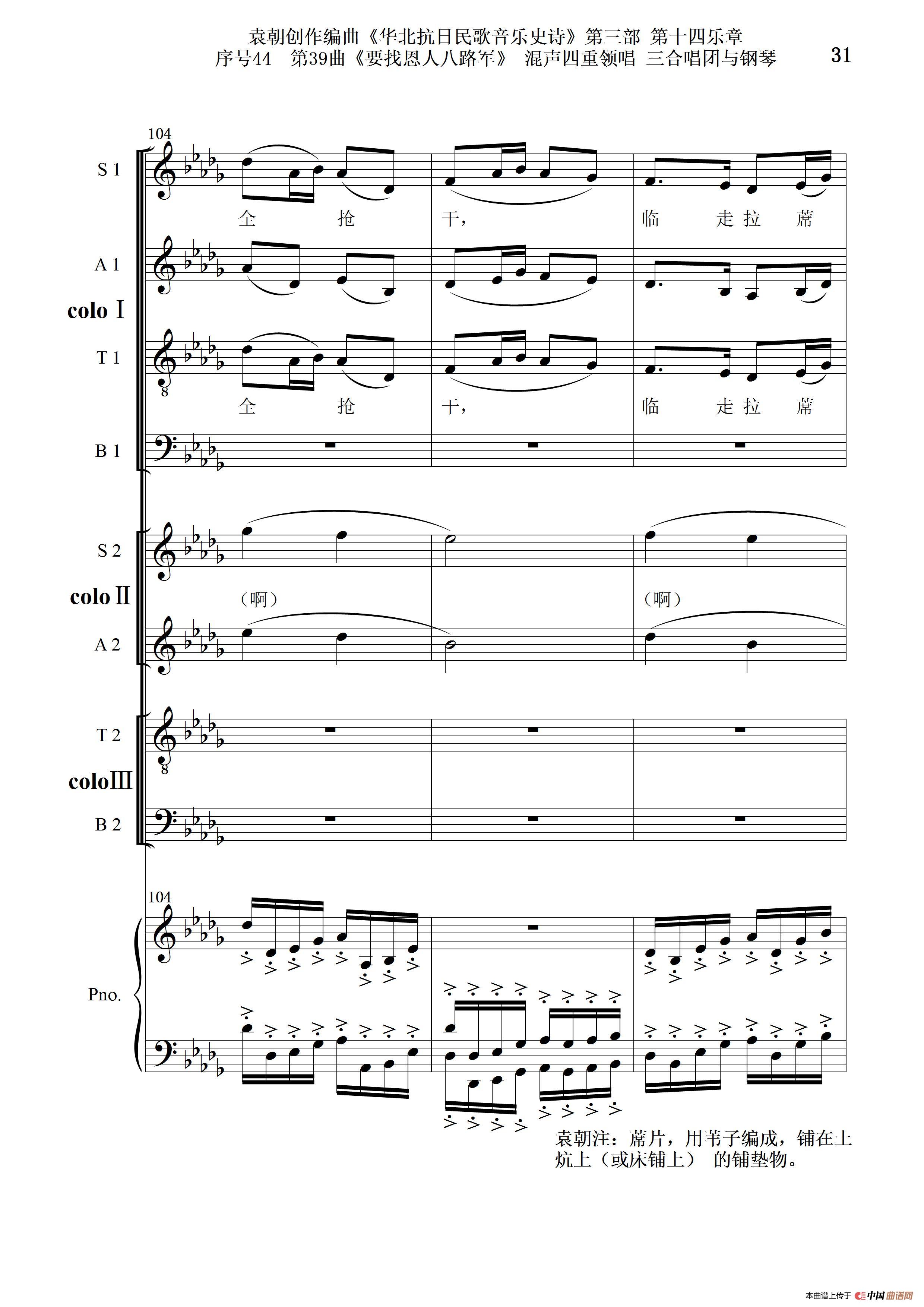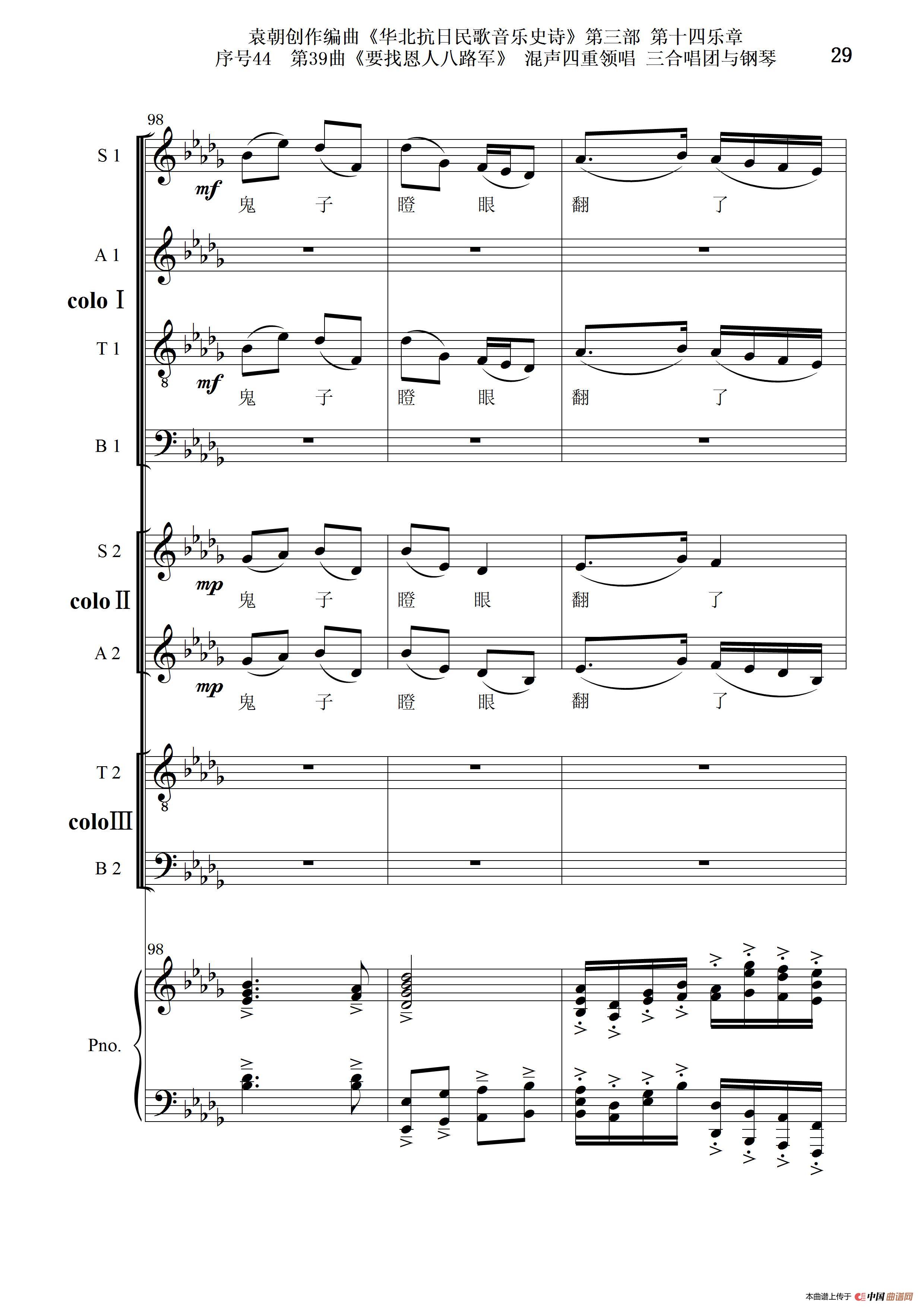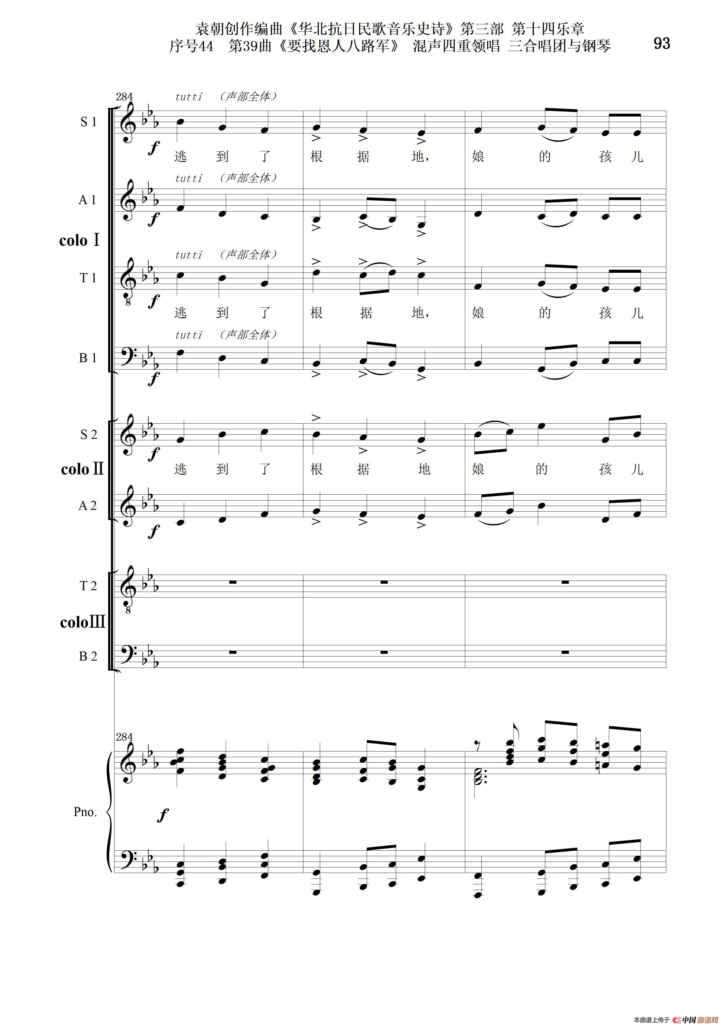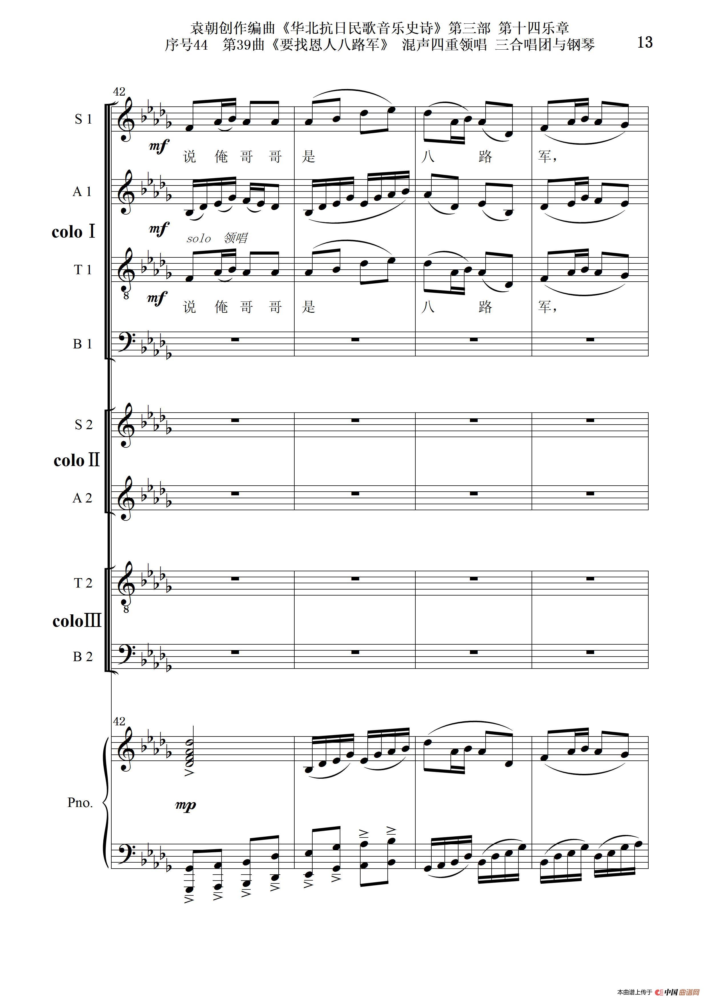 序号44第39曲《要找恩人八路军》混声四重领唱 三合唱团与钢琴