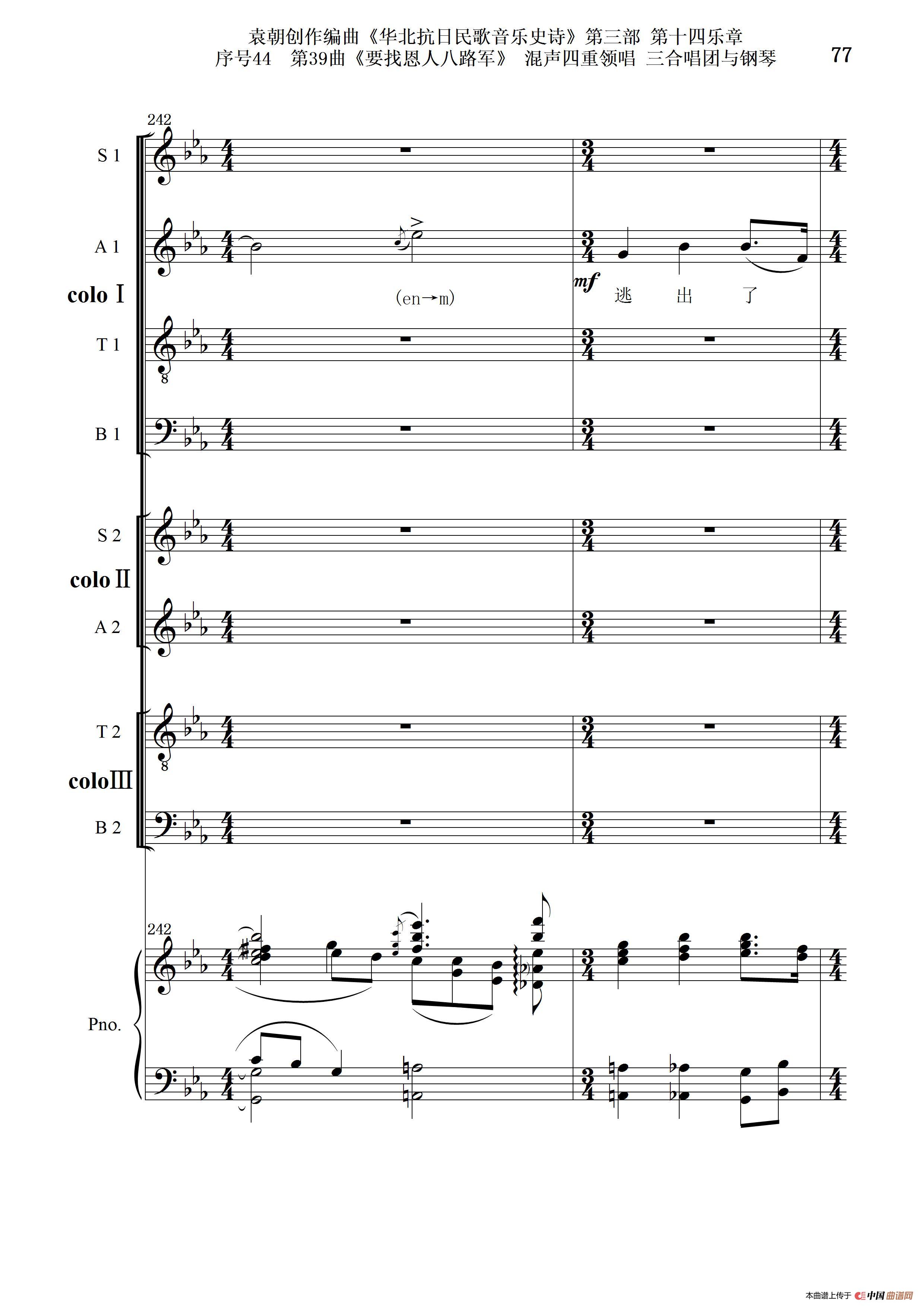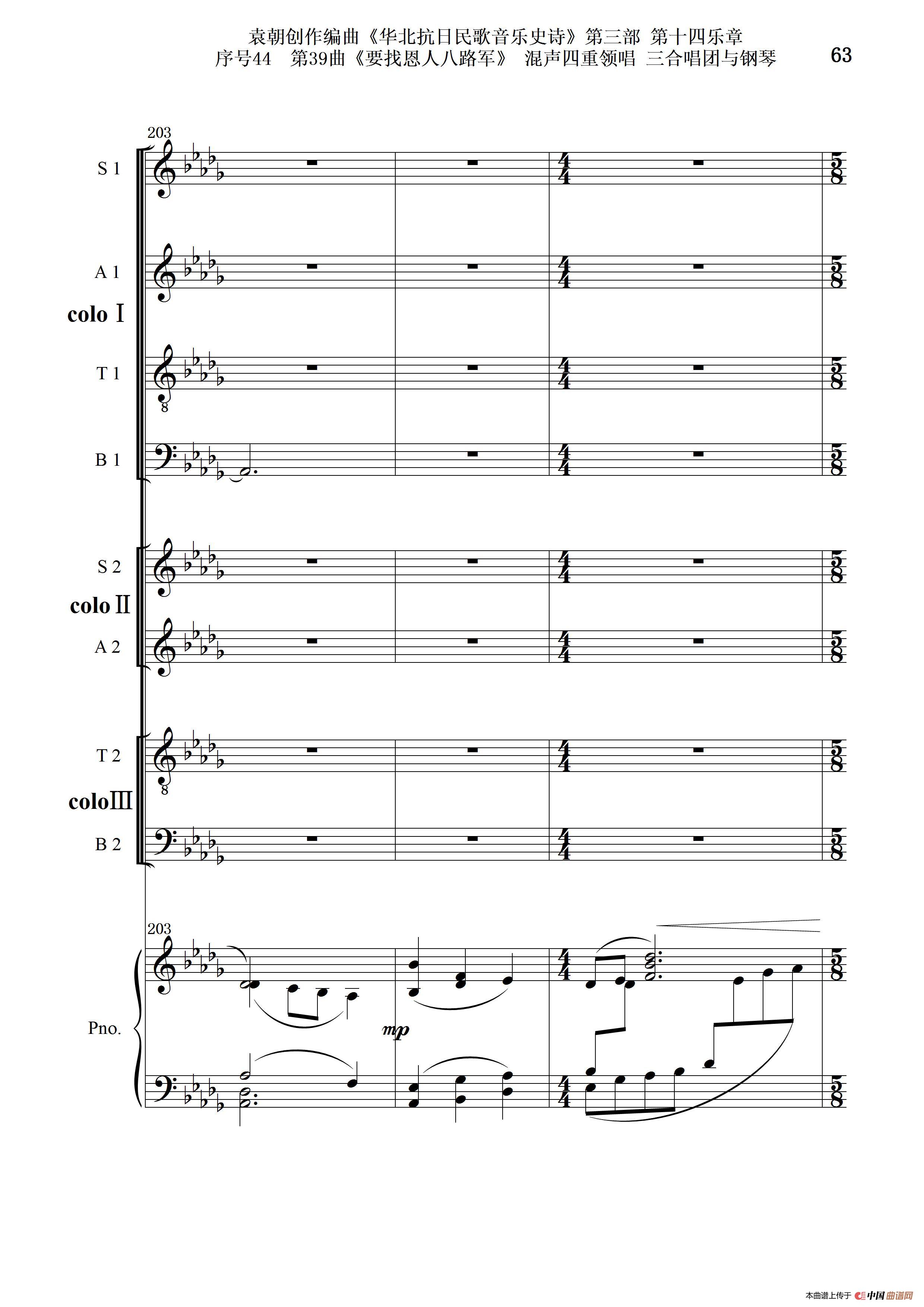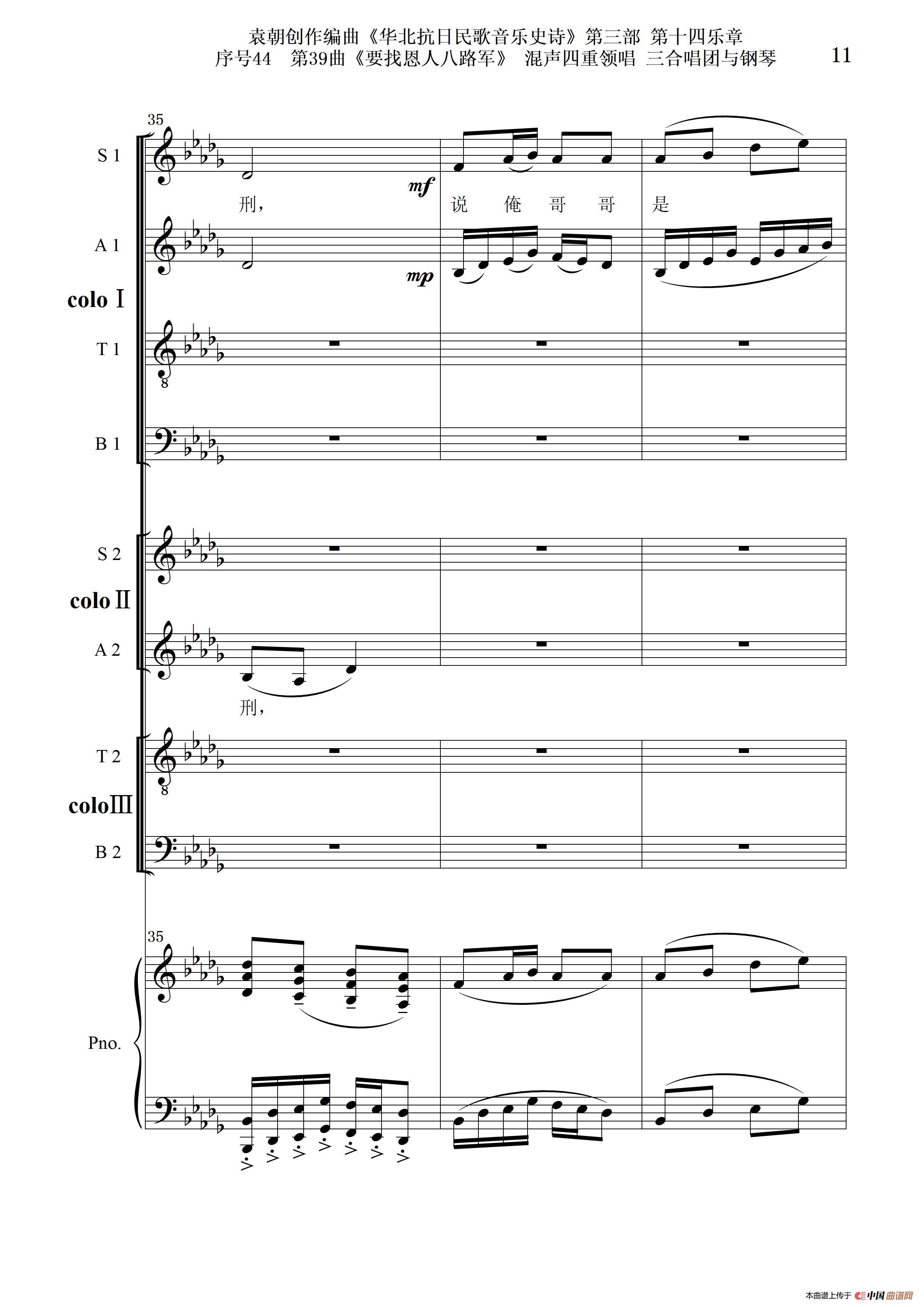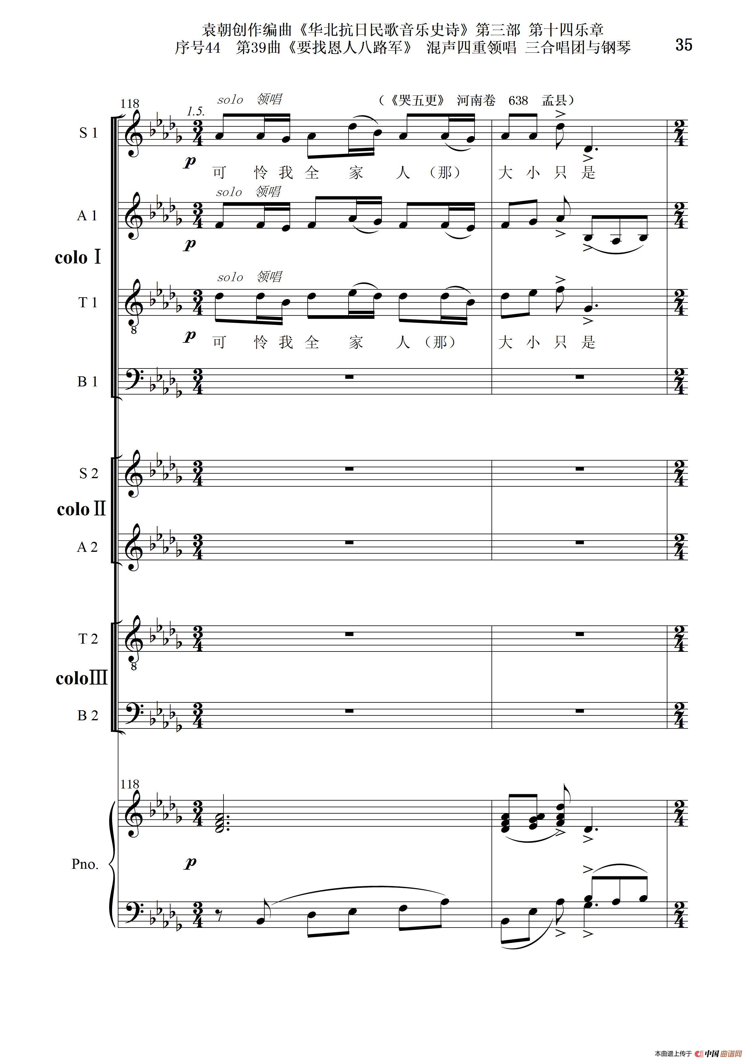 序号44第39曲《要找恩人八路军》混声四重领唱 三合唱团与钢琴