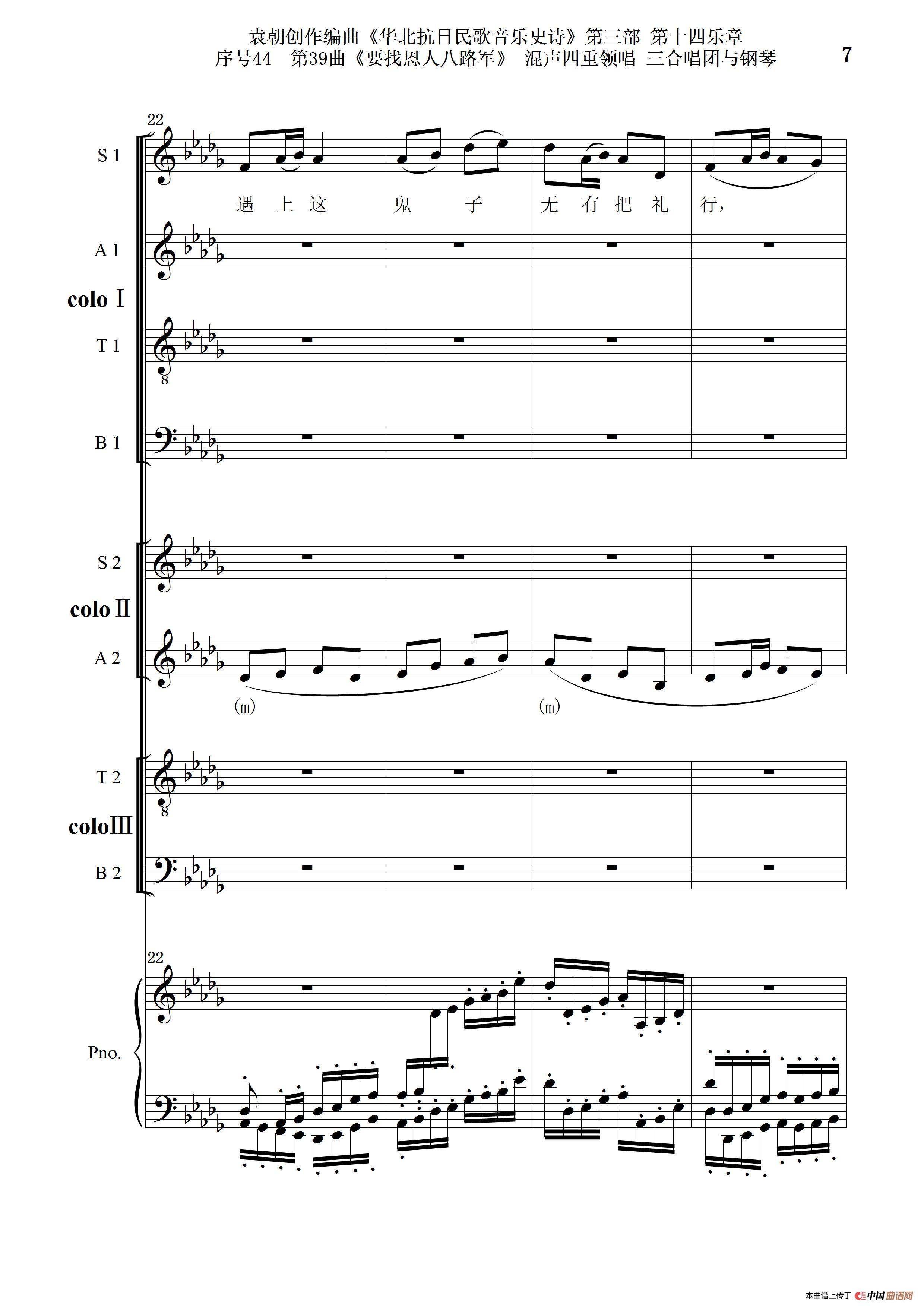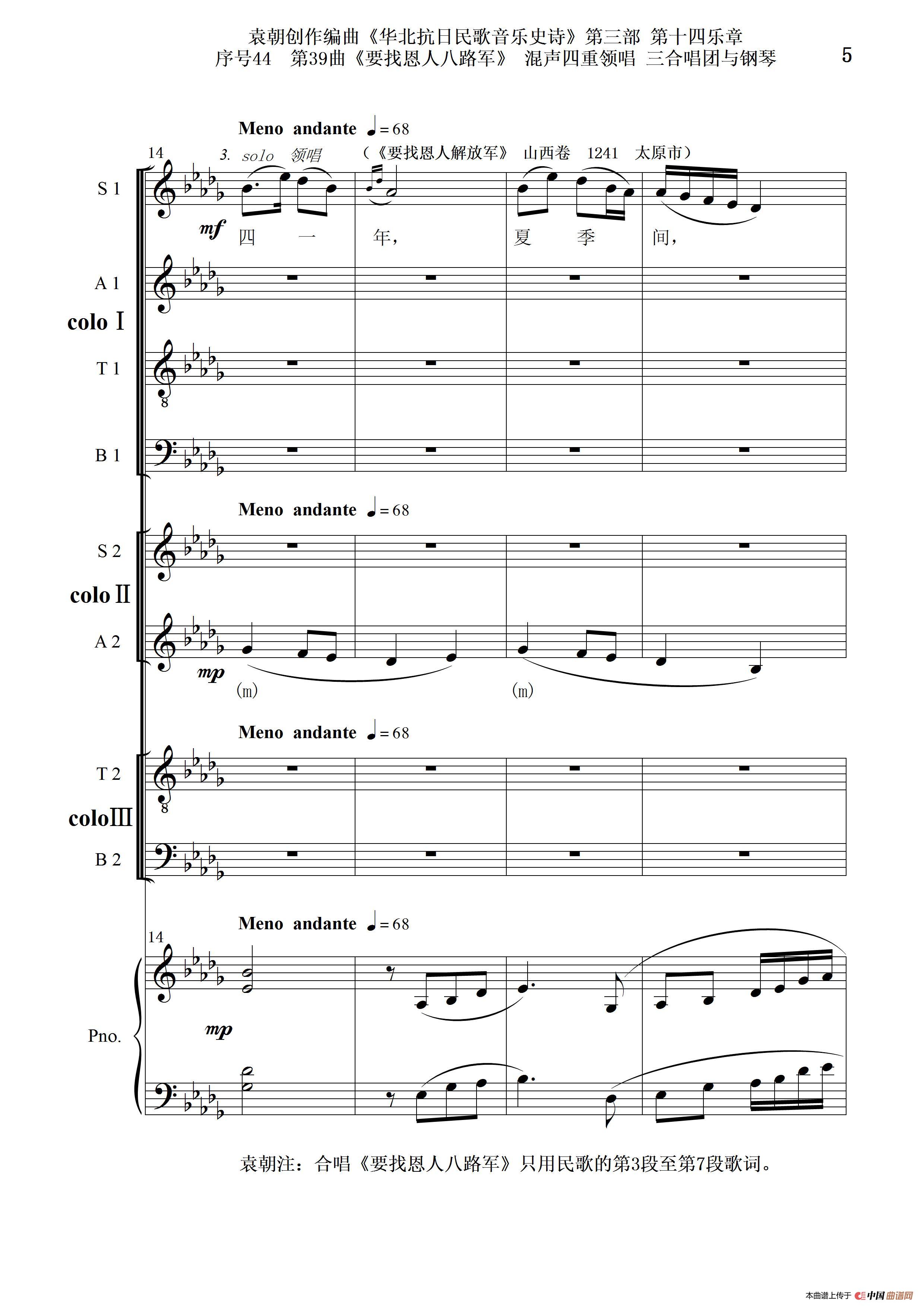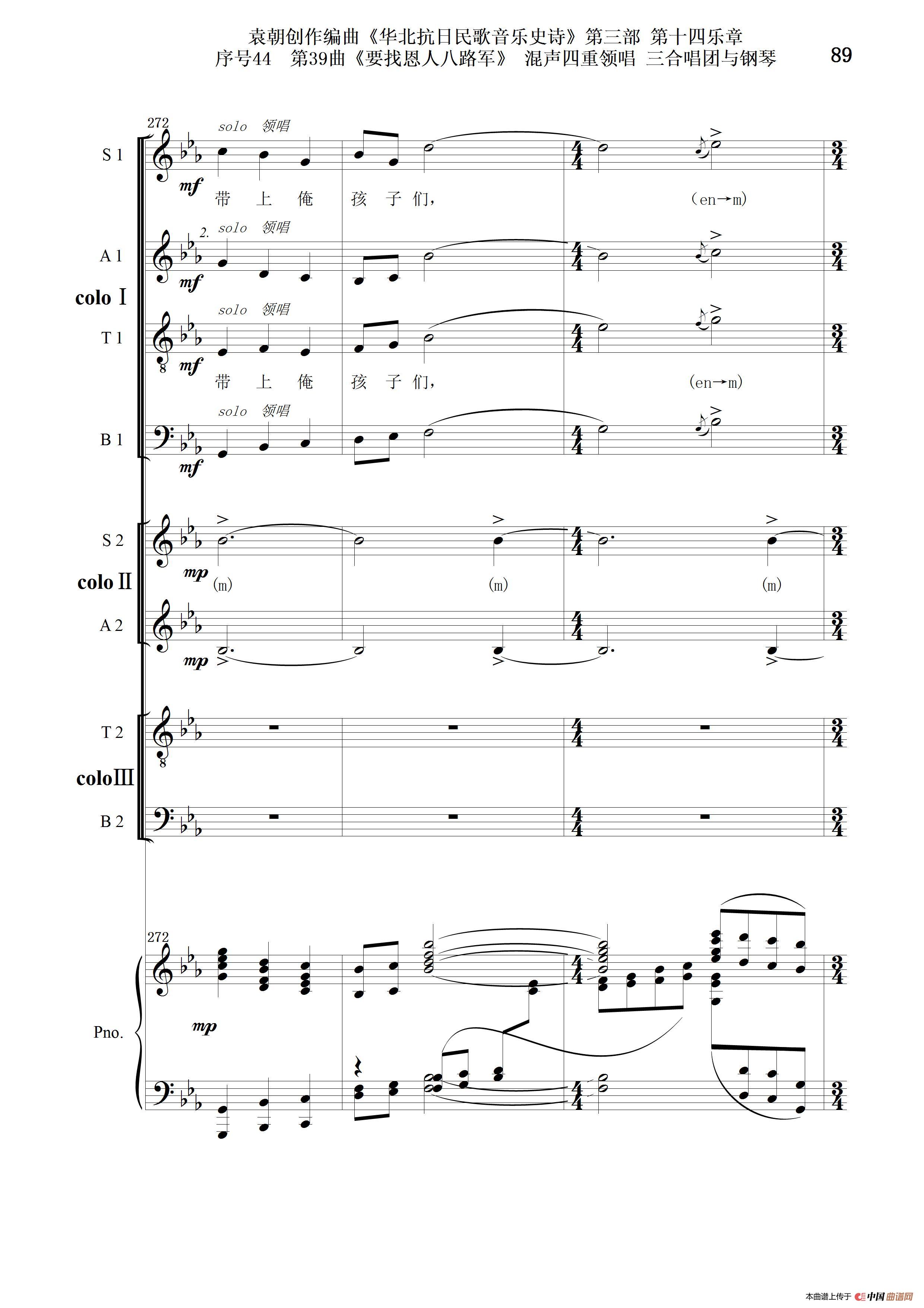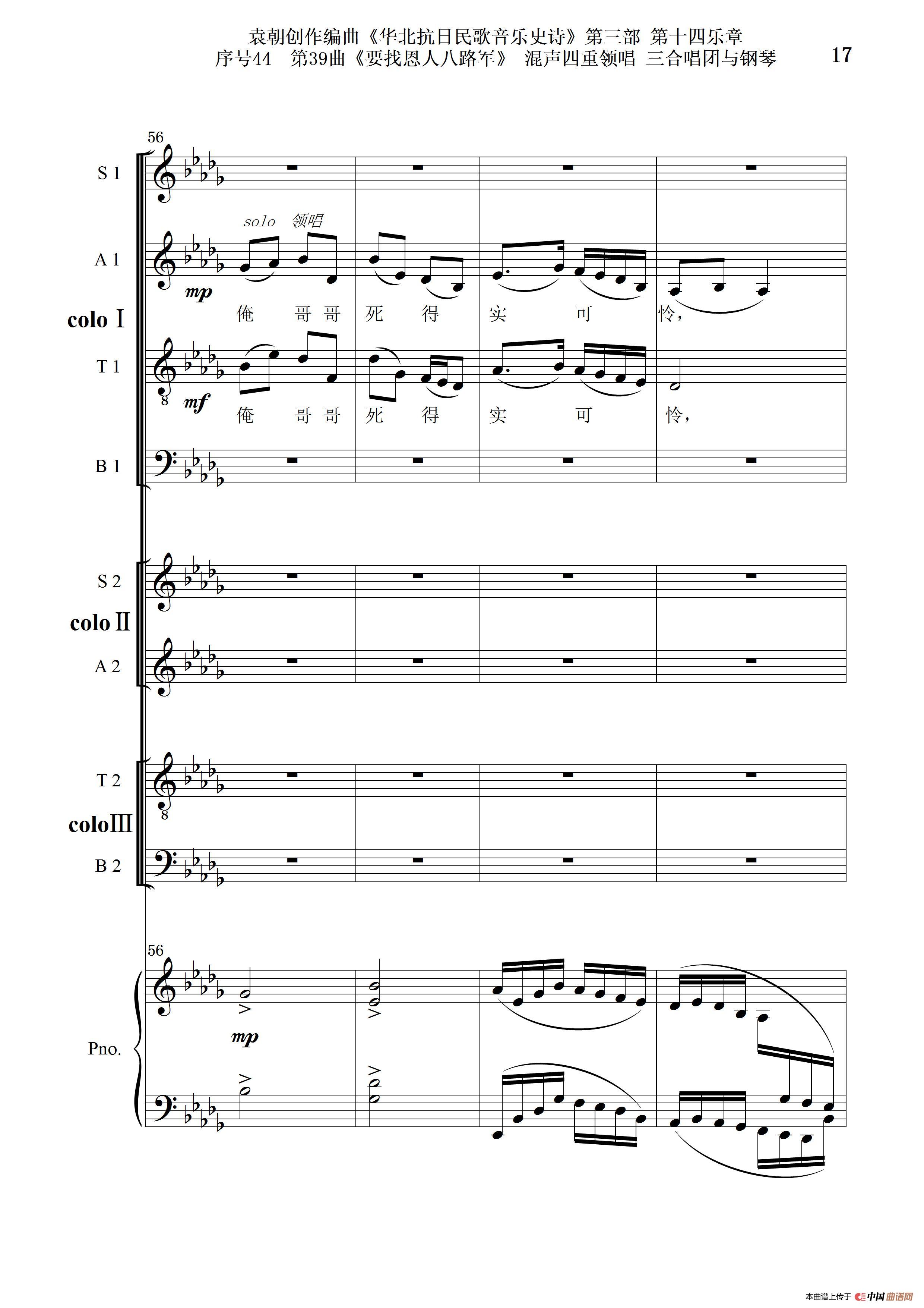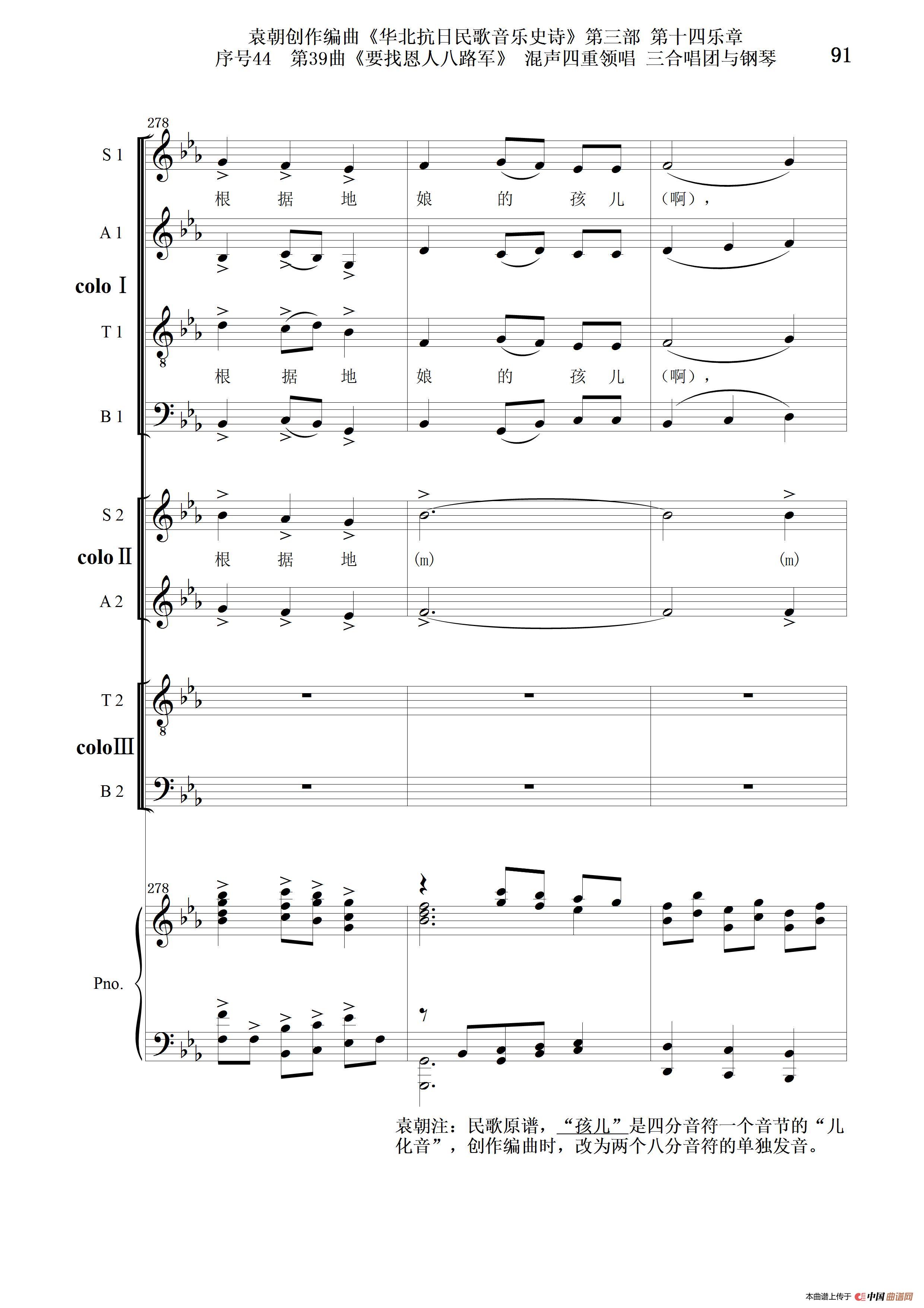 序号44第39曲《要找恩人八路军》混声四重领唱 三合唱团与钢琴