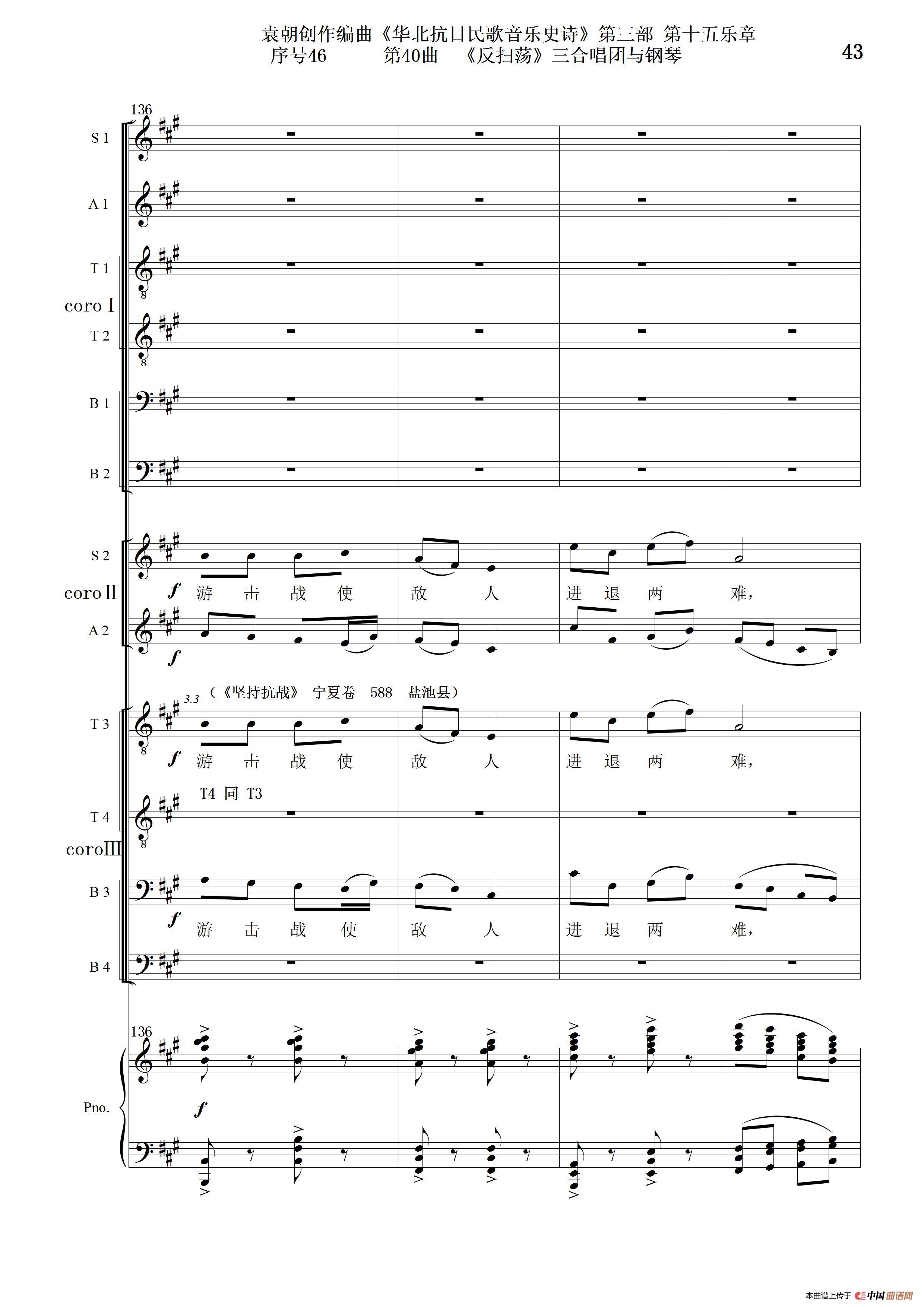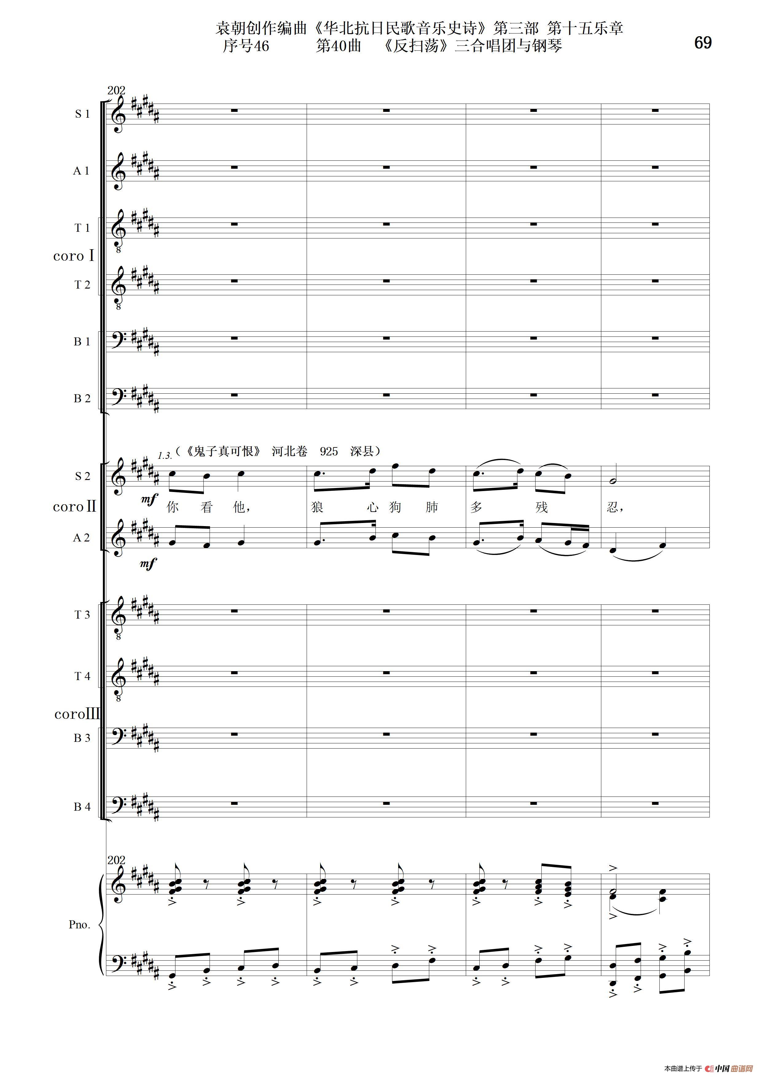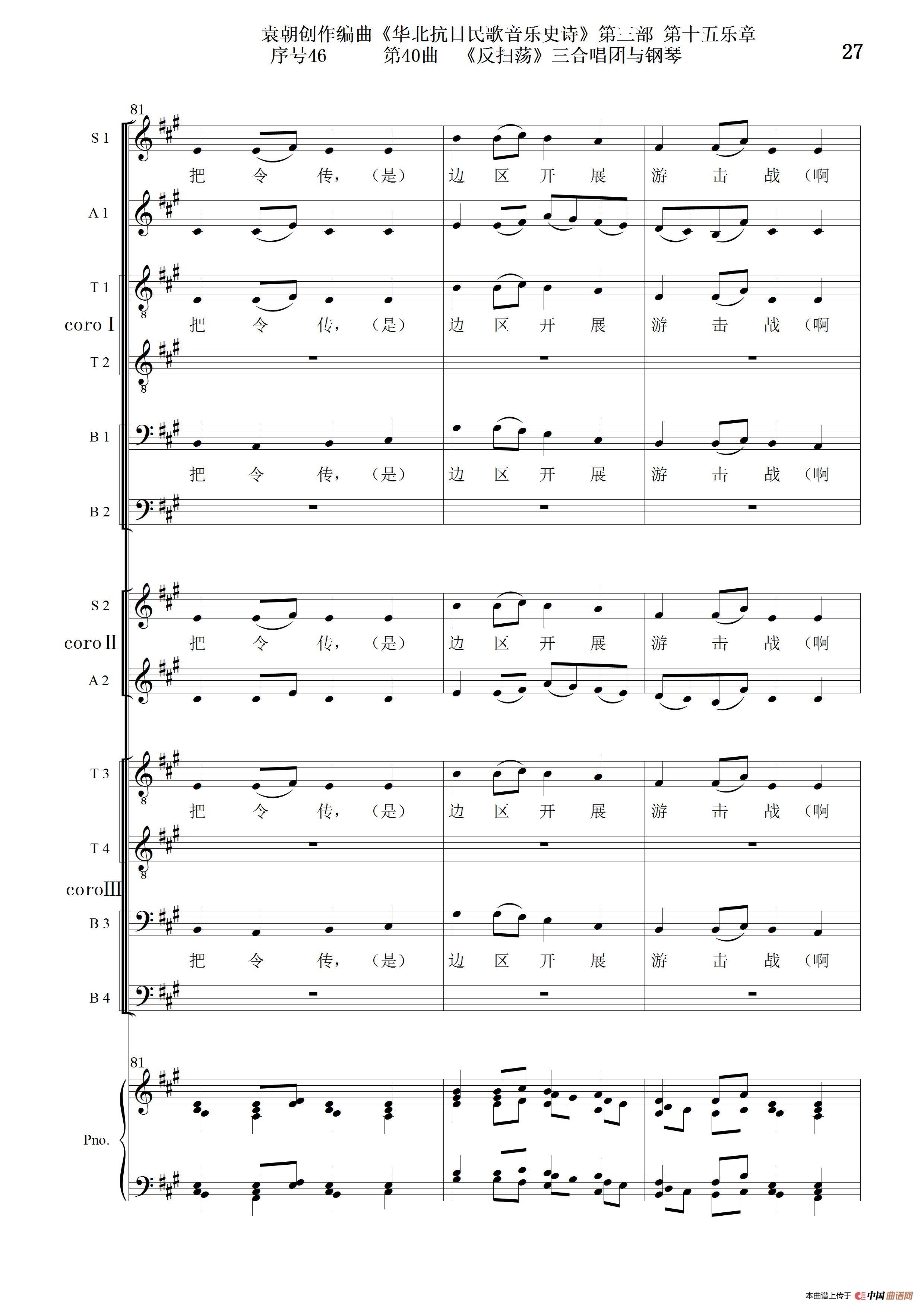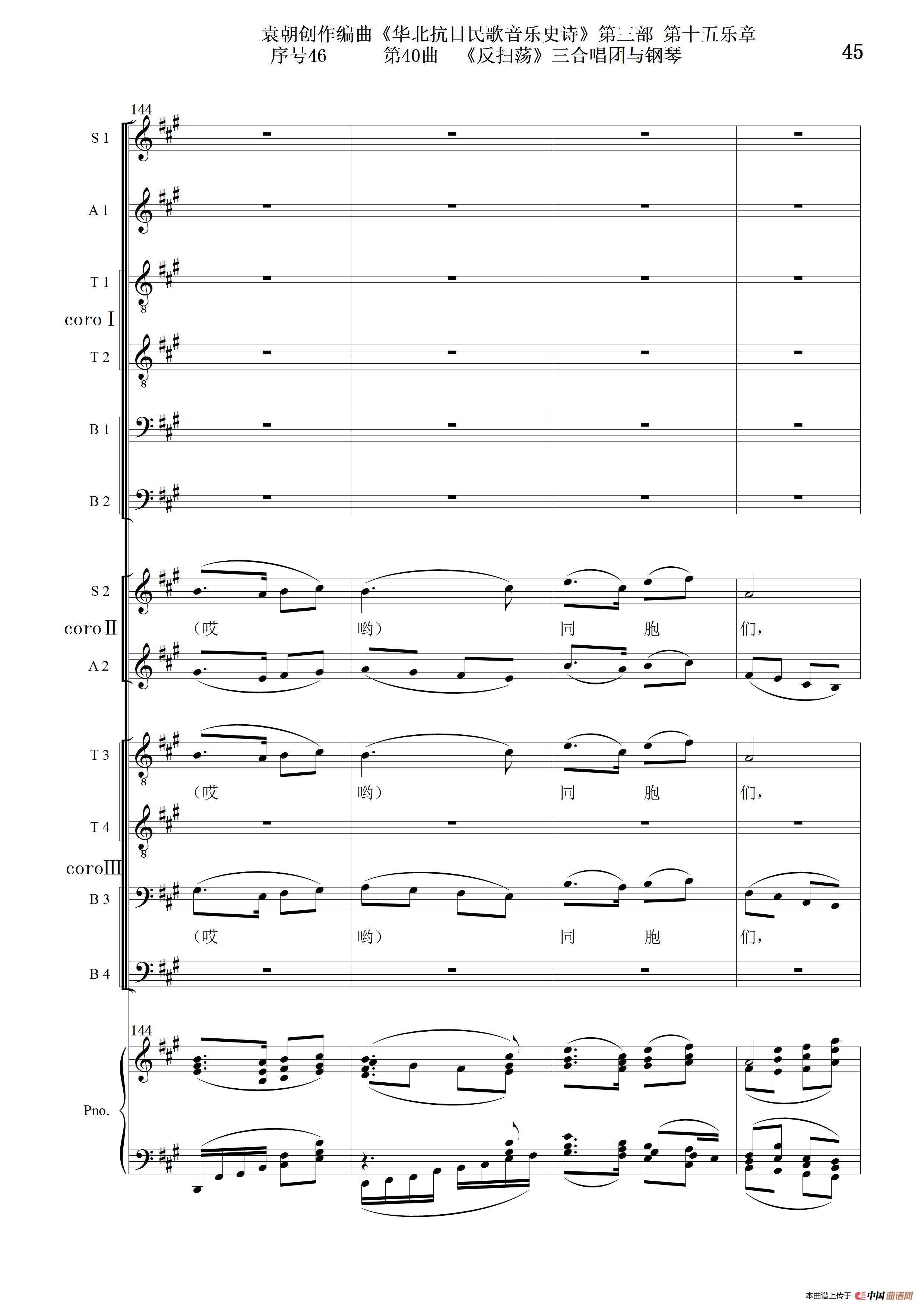 序号46第40曲《反扫荡》三合唱团与钢琴