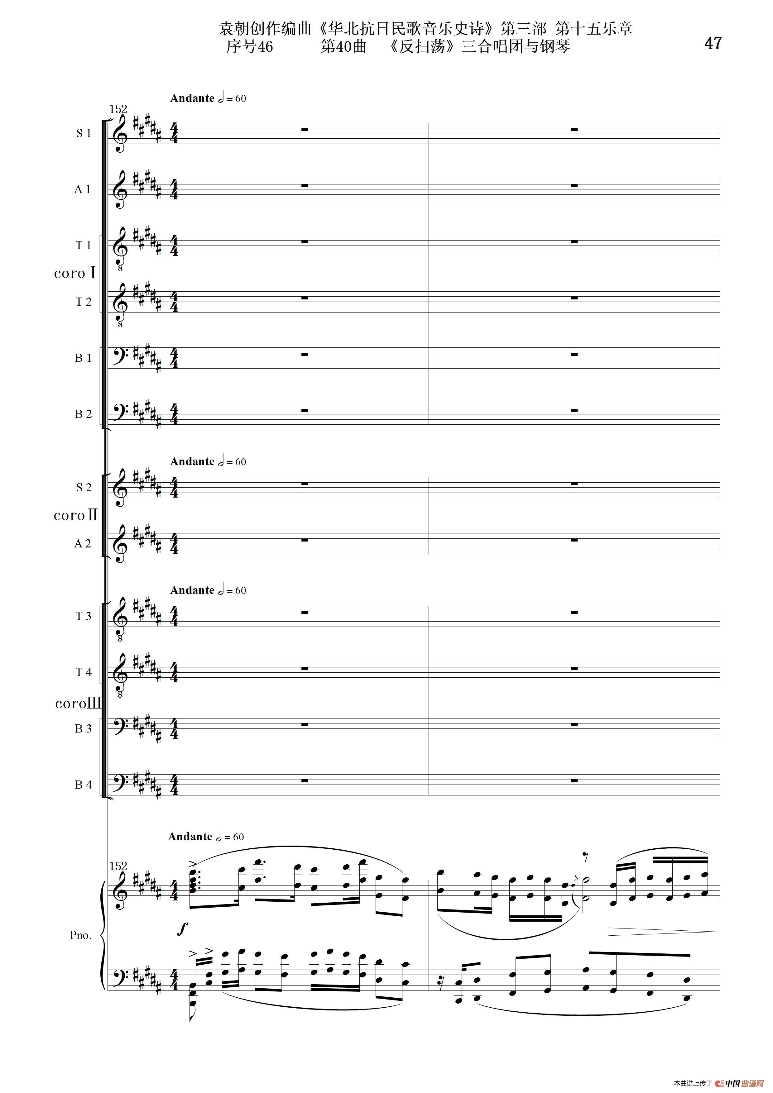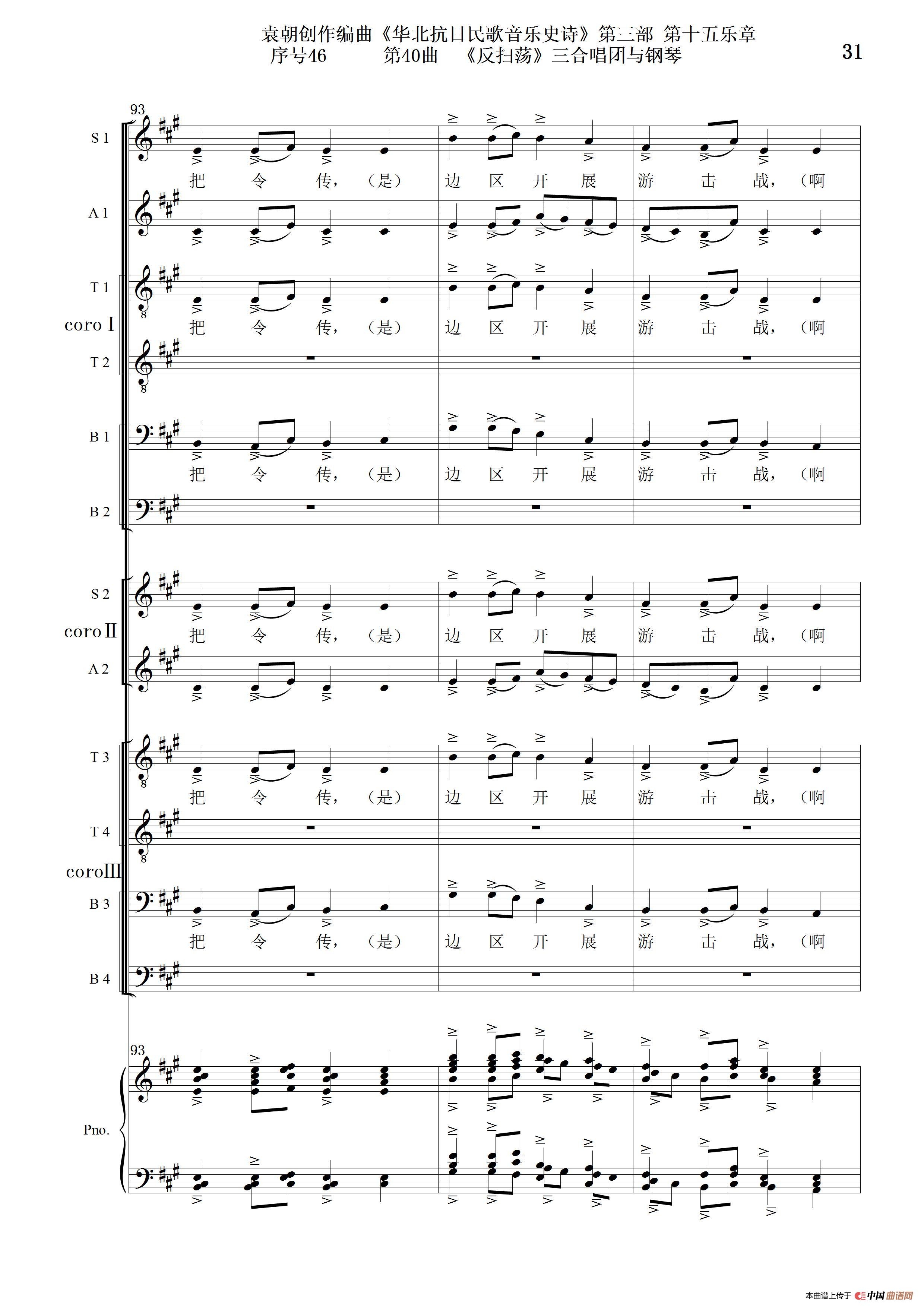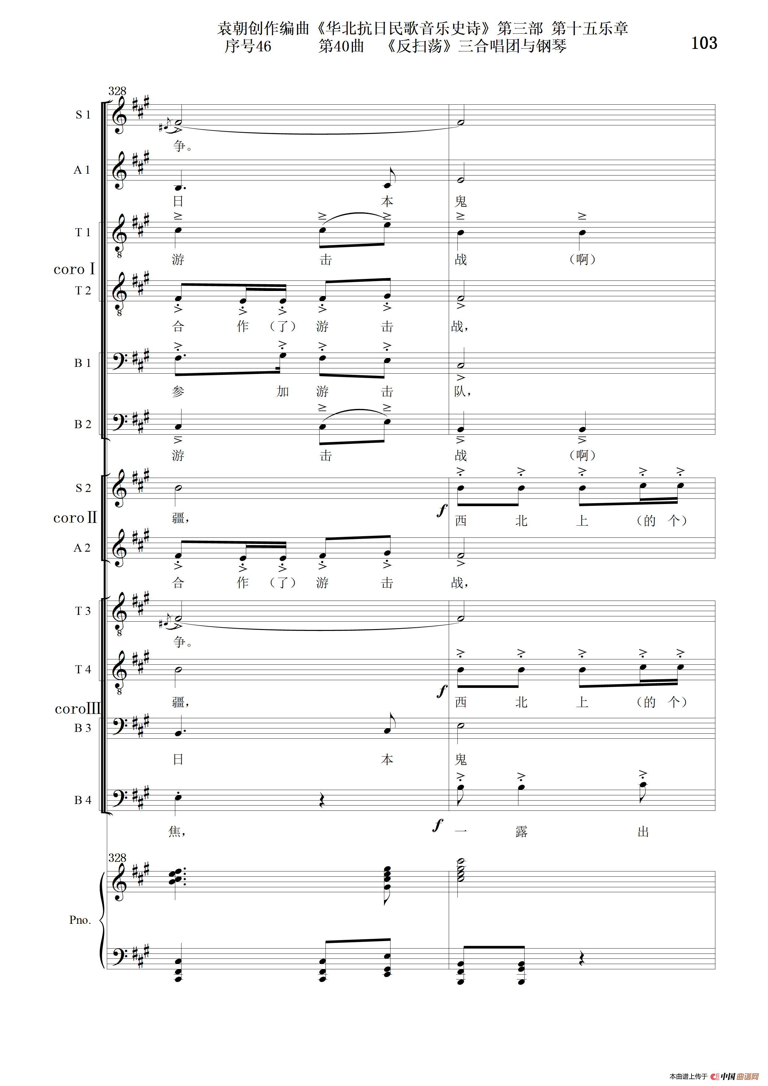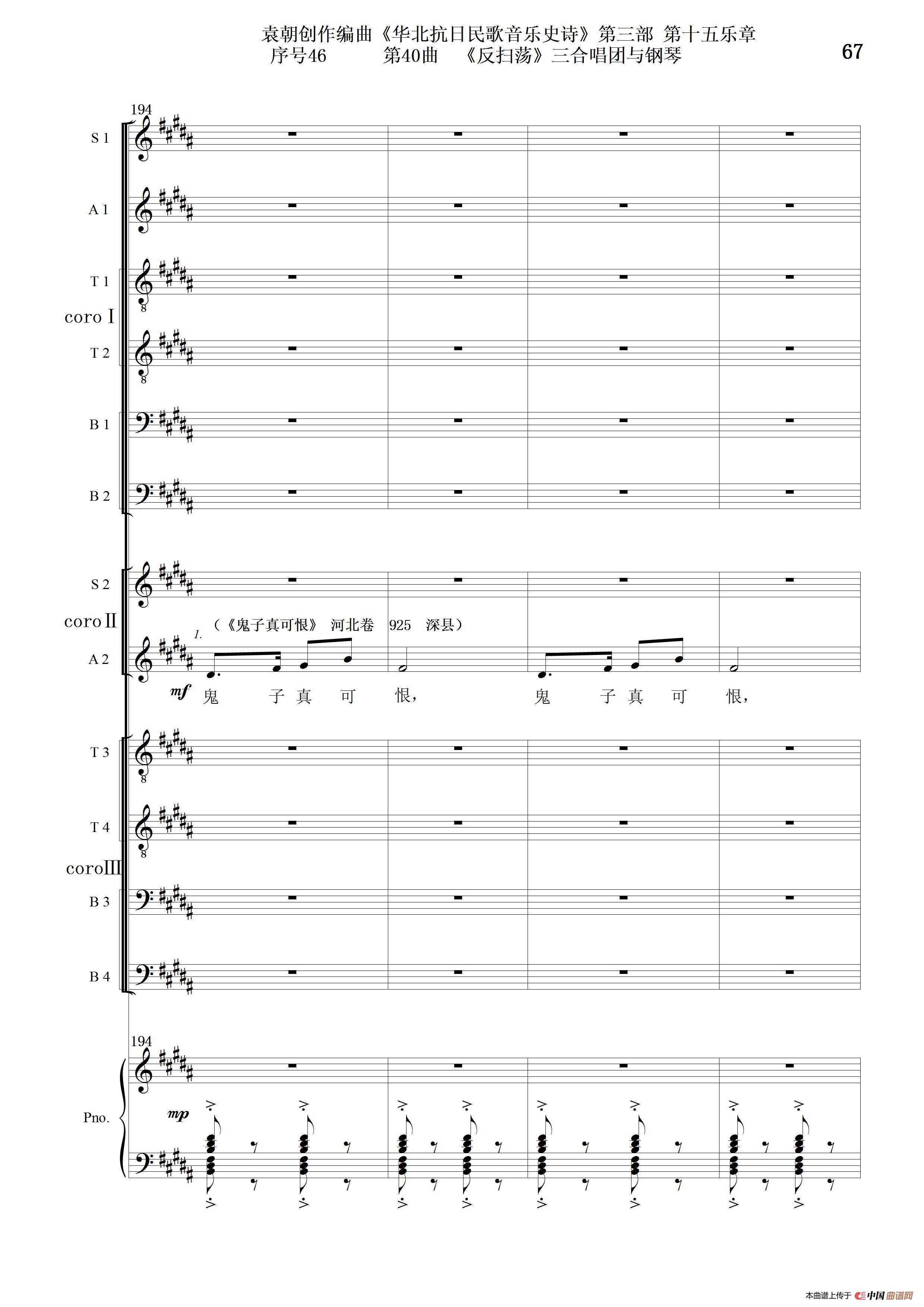 序号46第40曲《反扫荡》三合唱团与钢琴