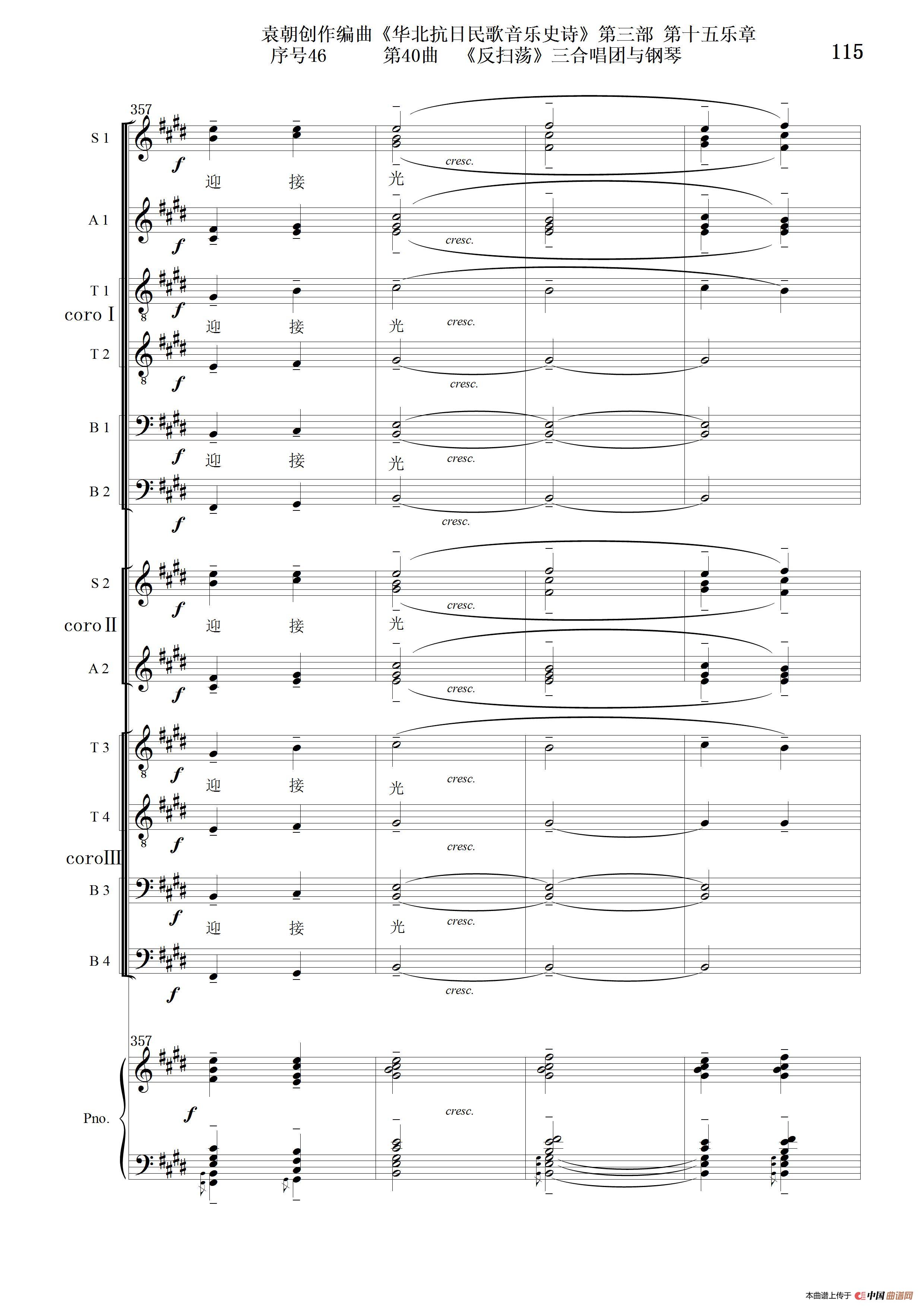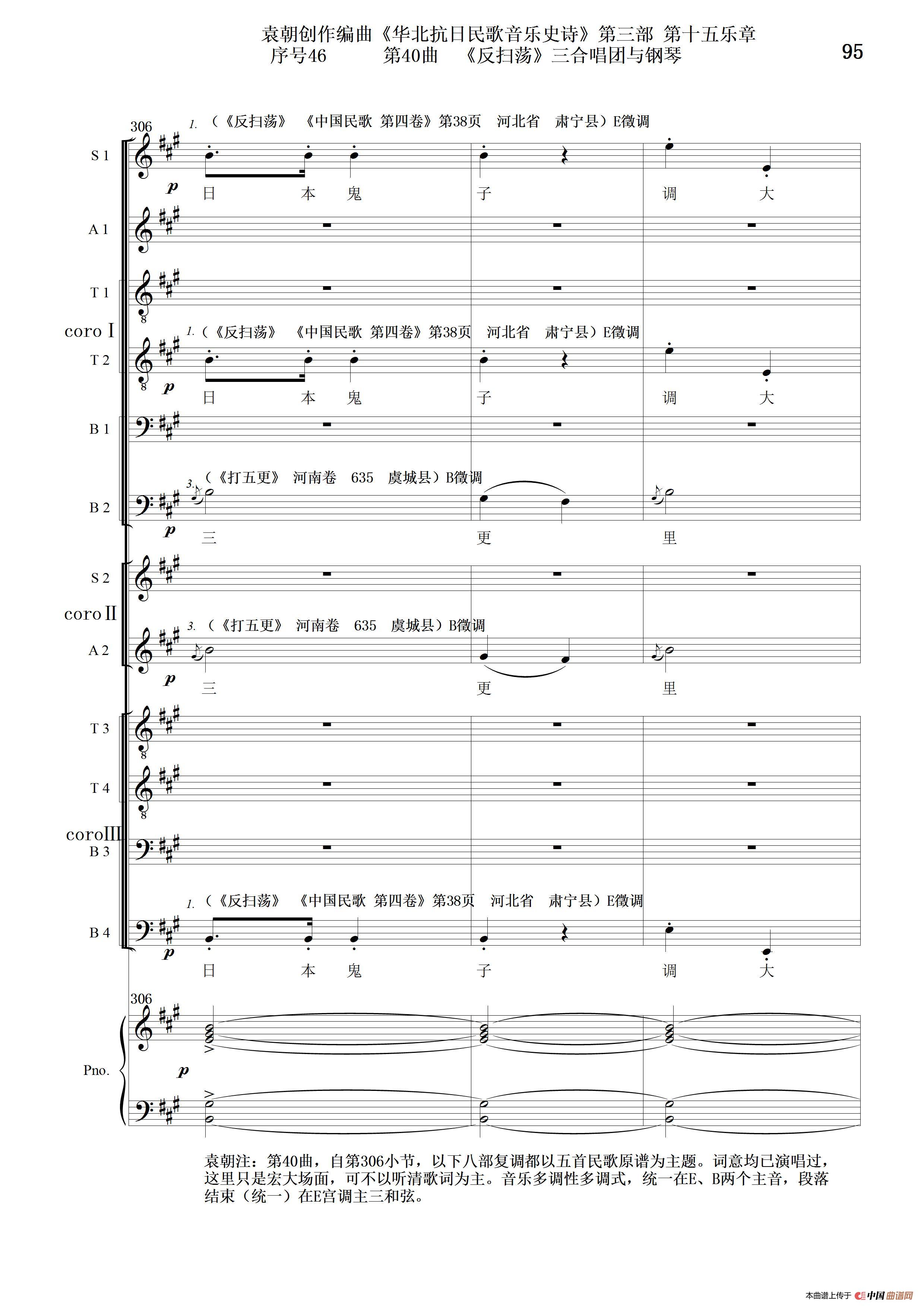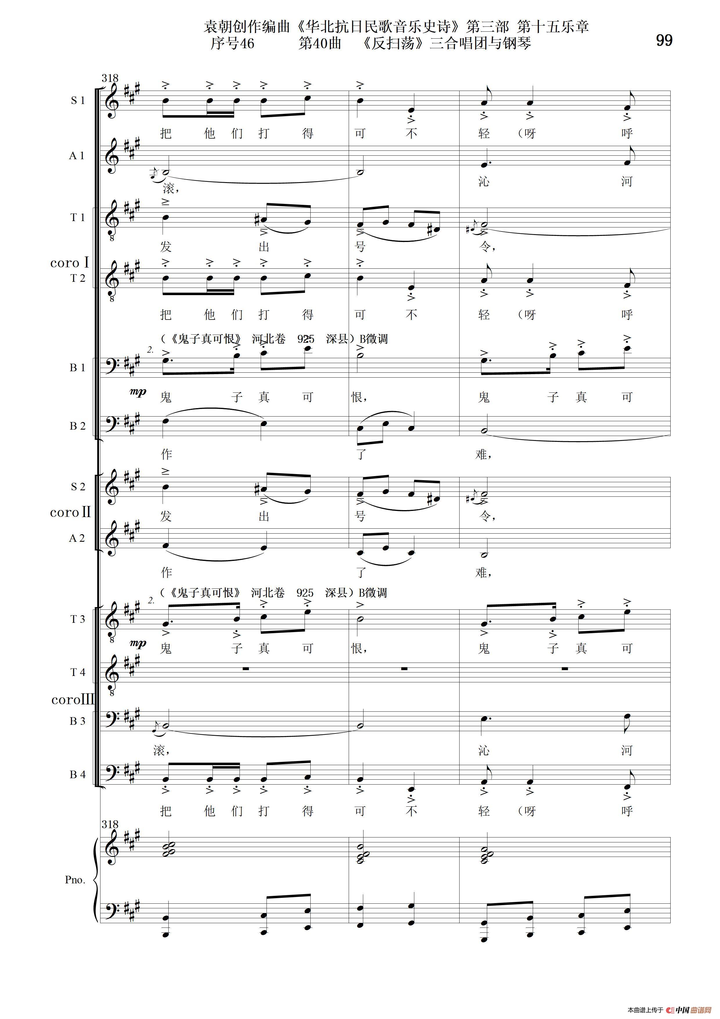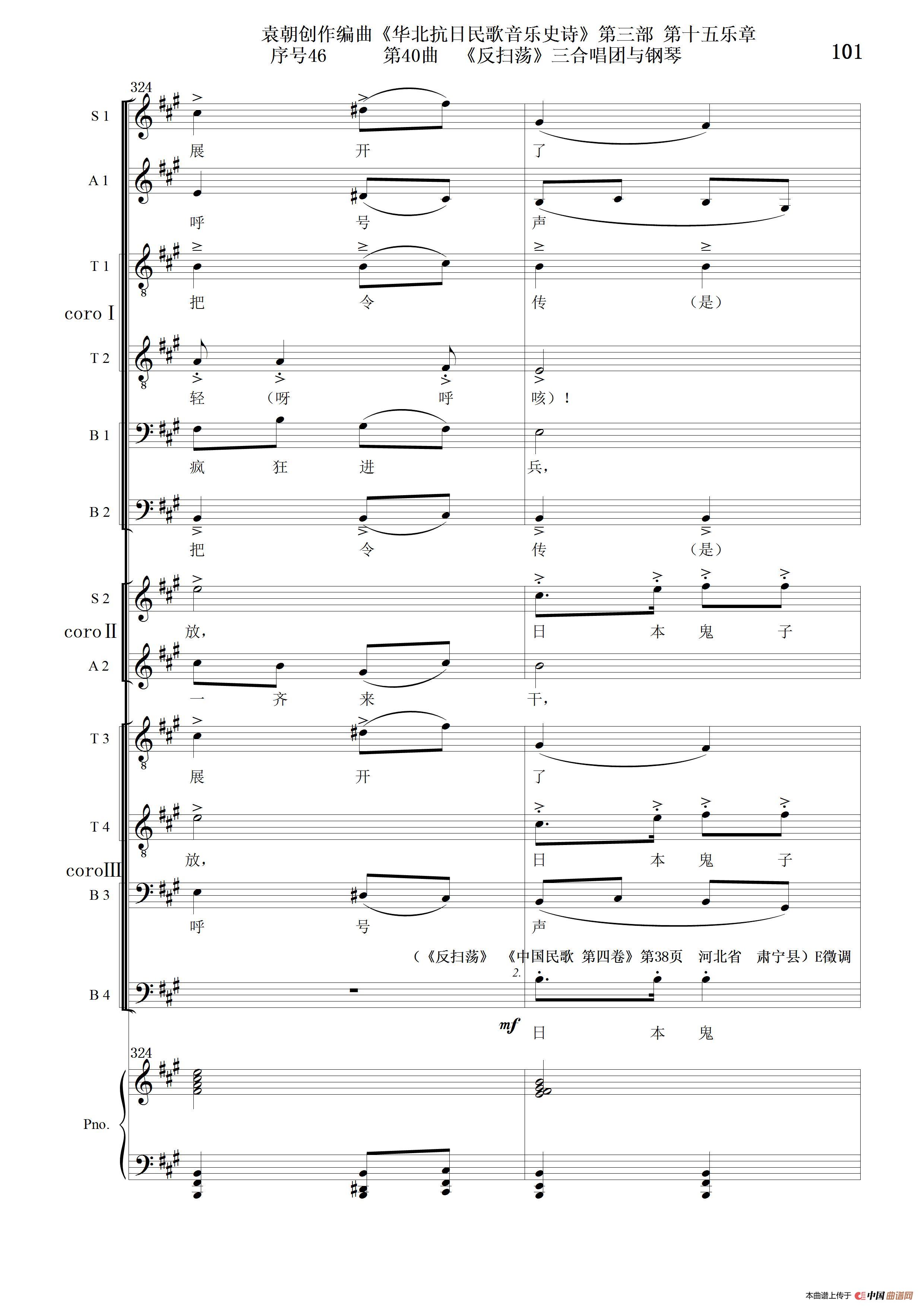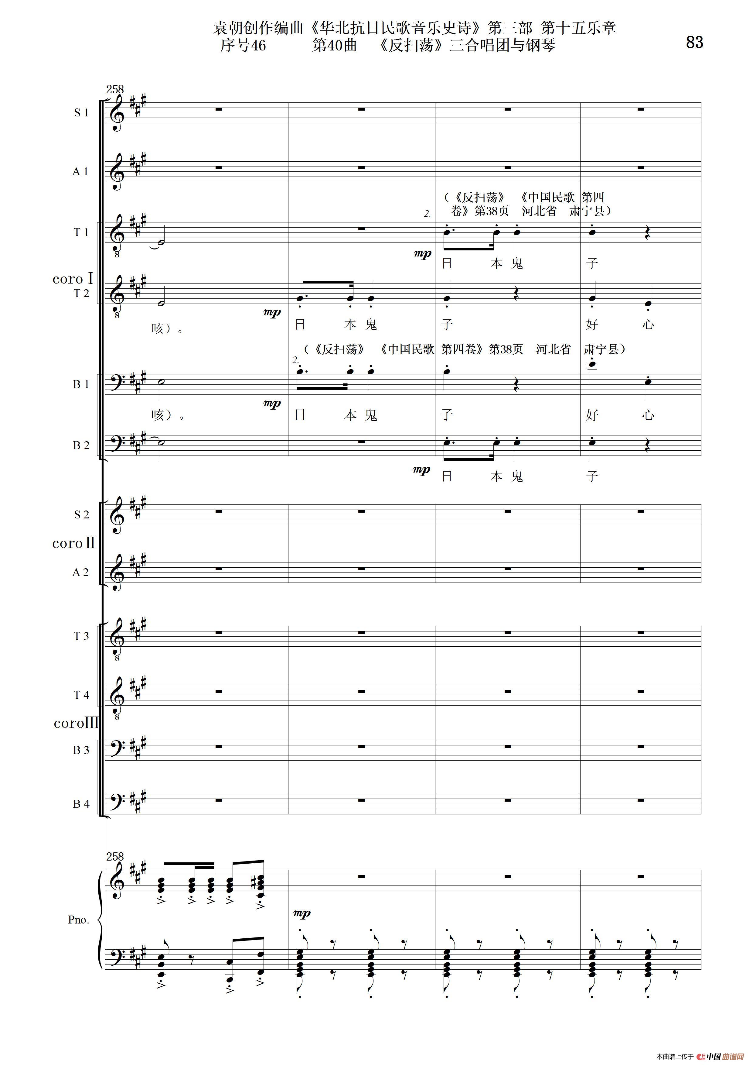 关于《序号46第40曲《反扫荡》三合唱团与钢琴》曲谱的评论