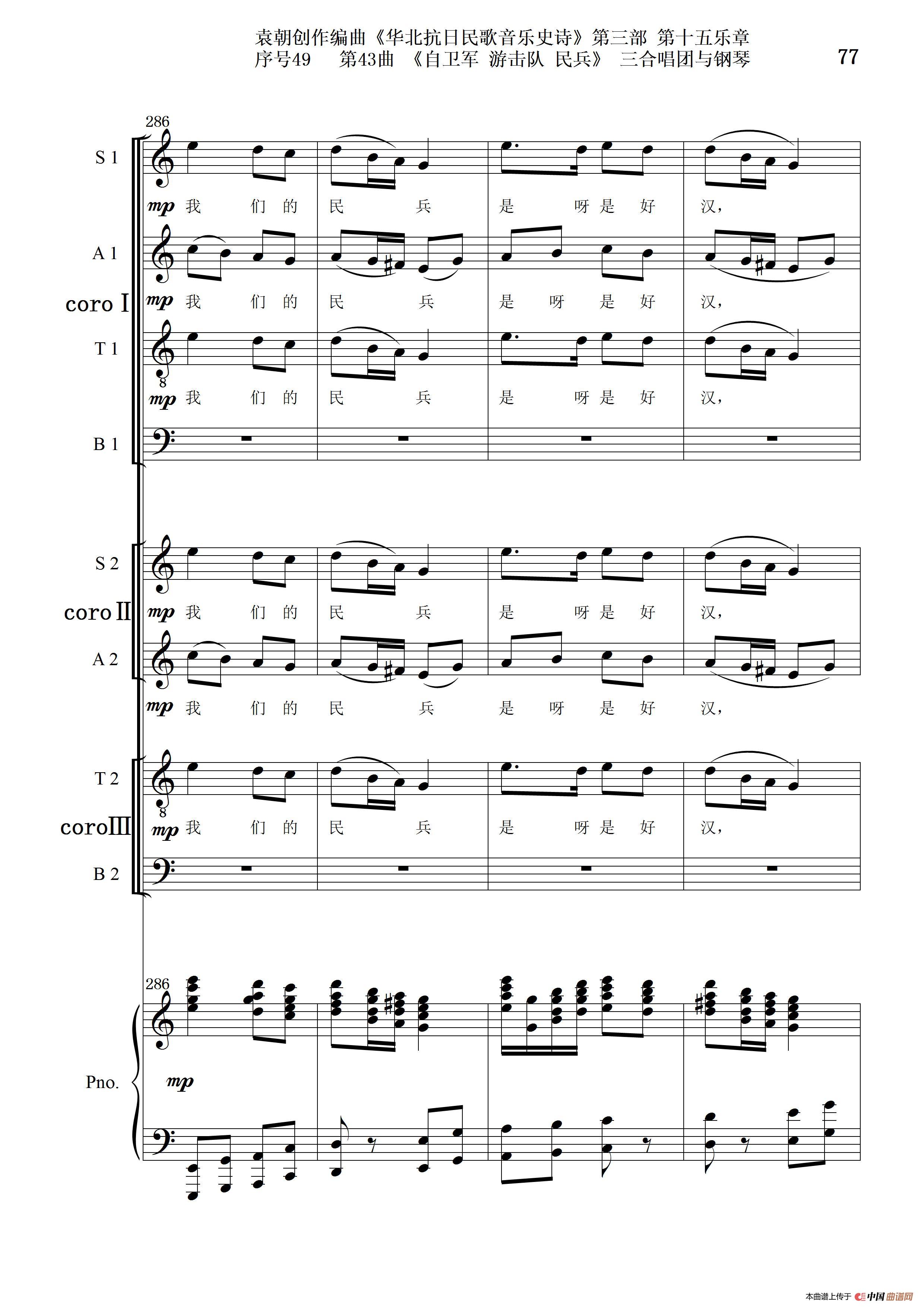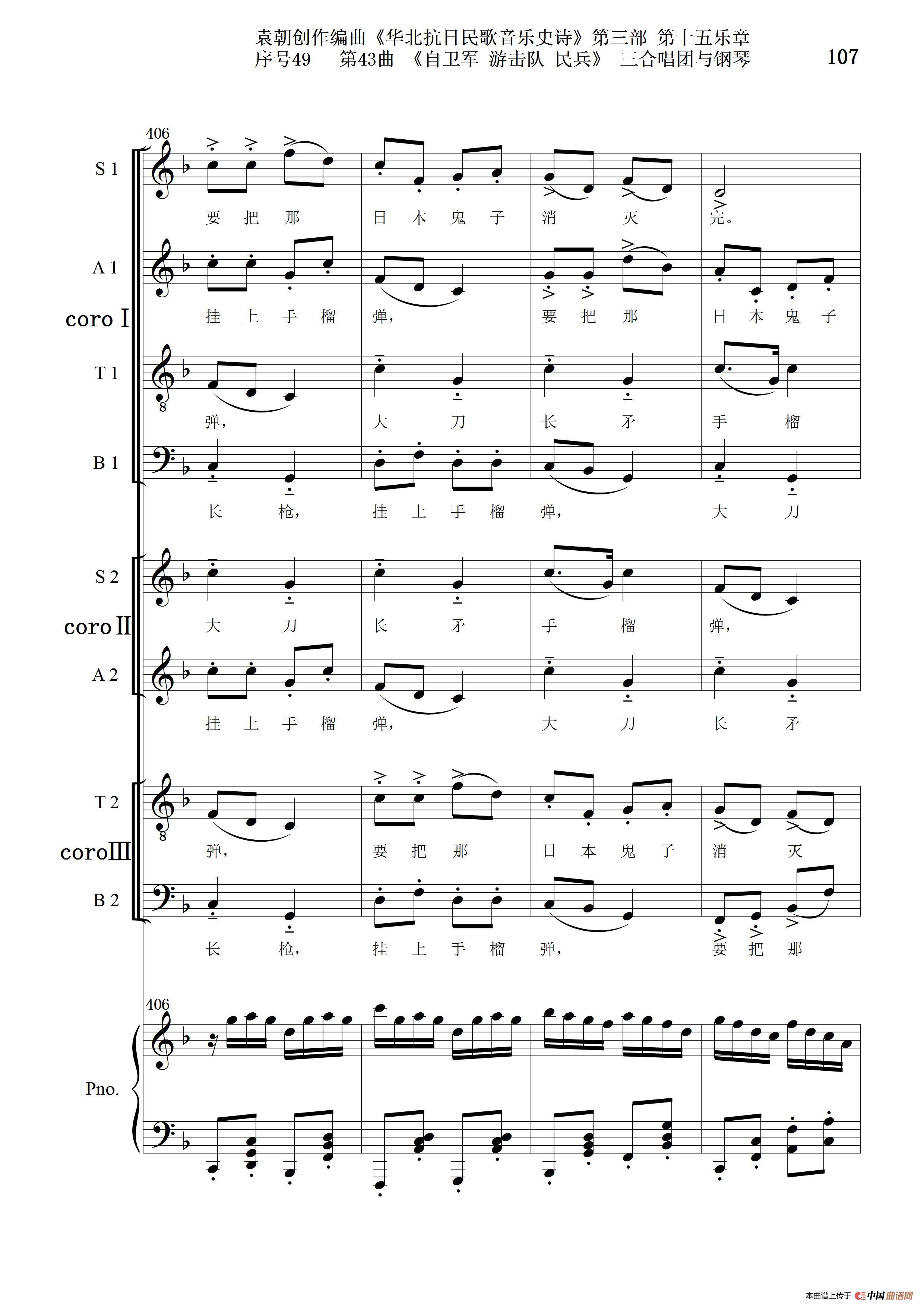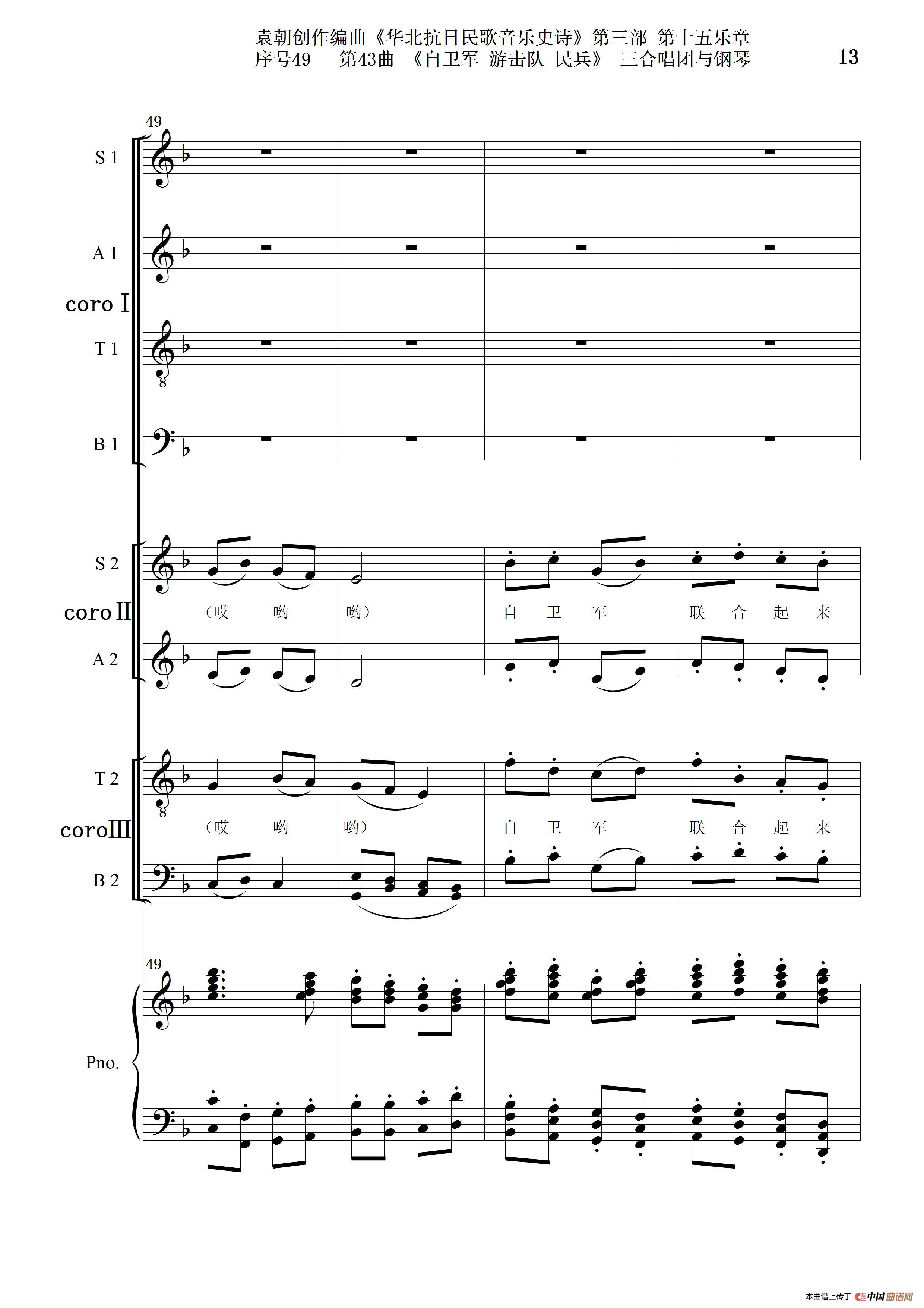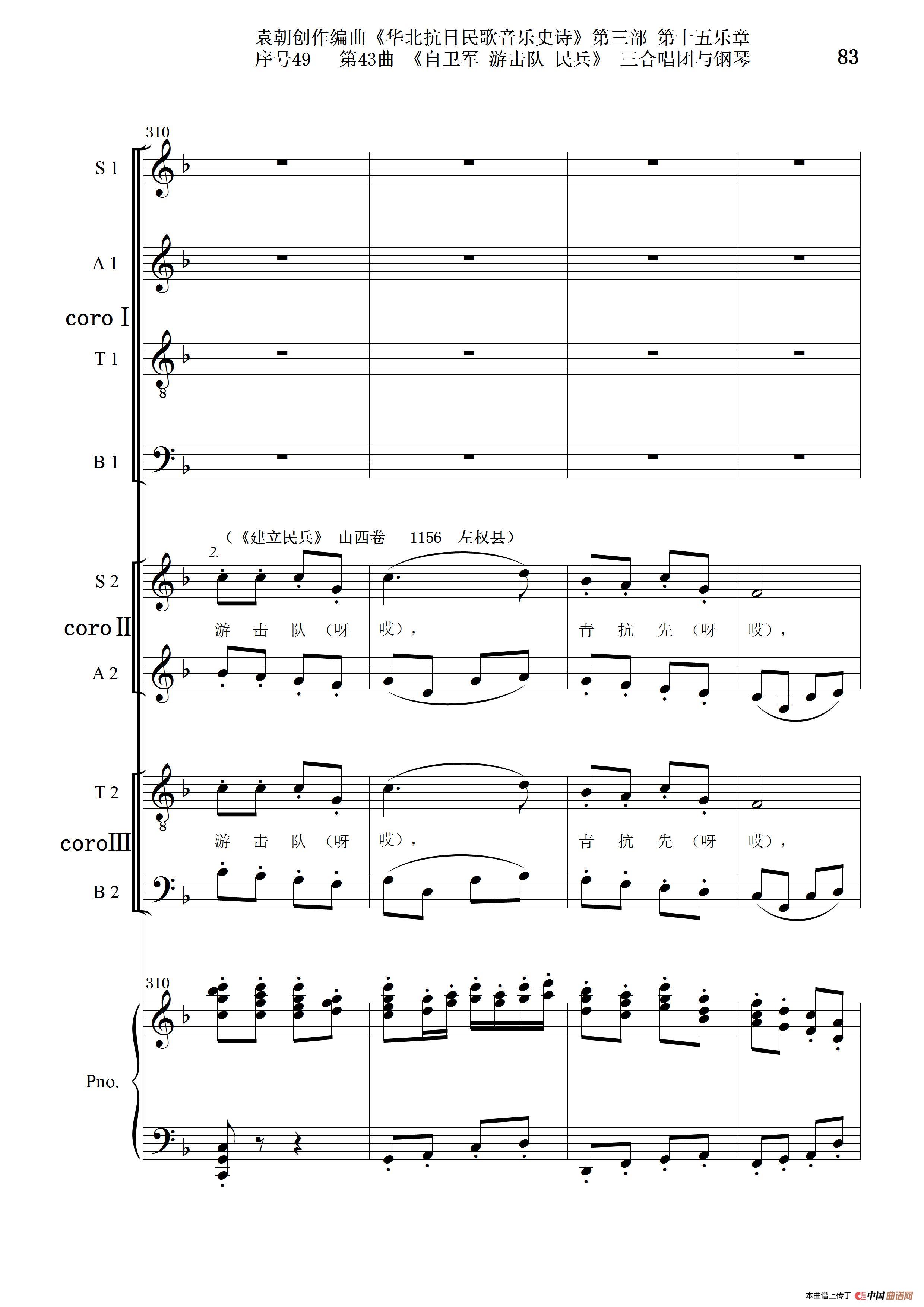 序号49第43曲《自卫军 游击队 民兵》三合唱团与钢琴