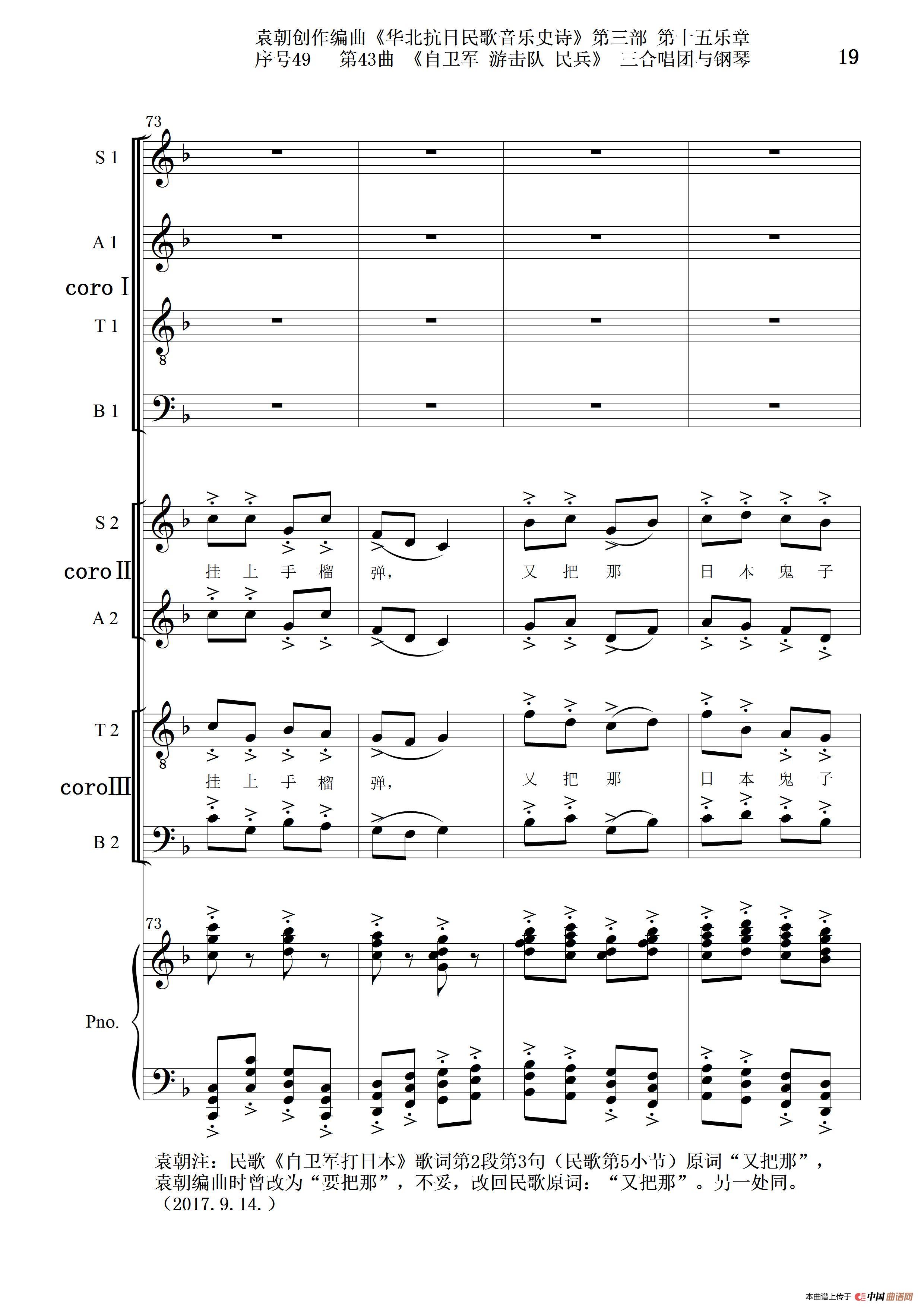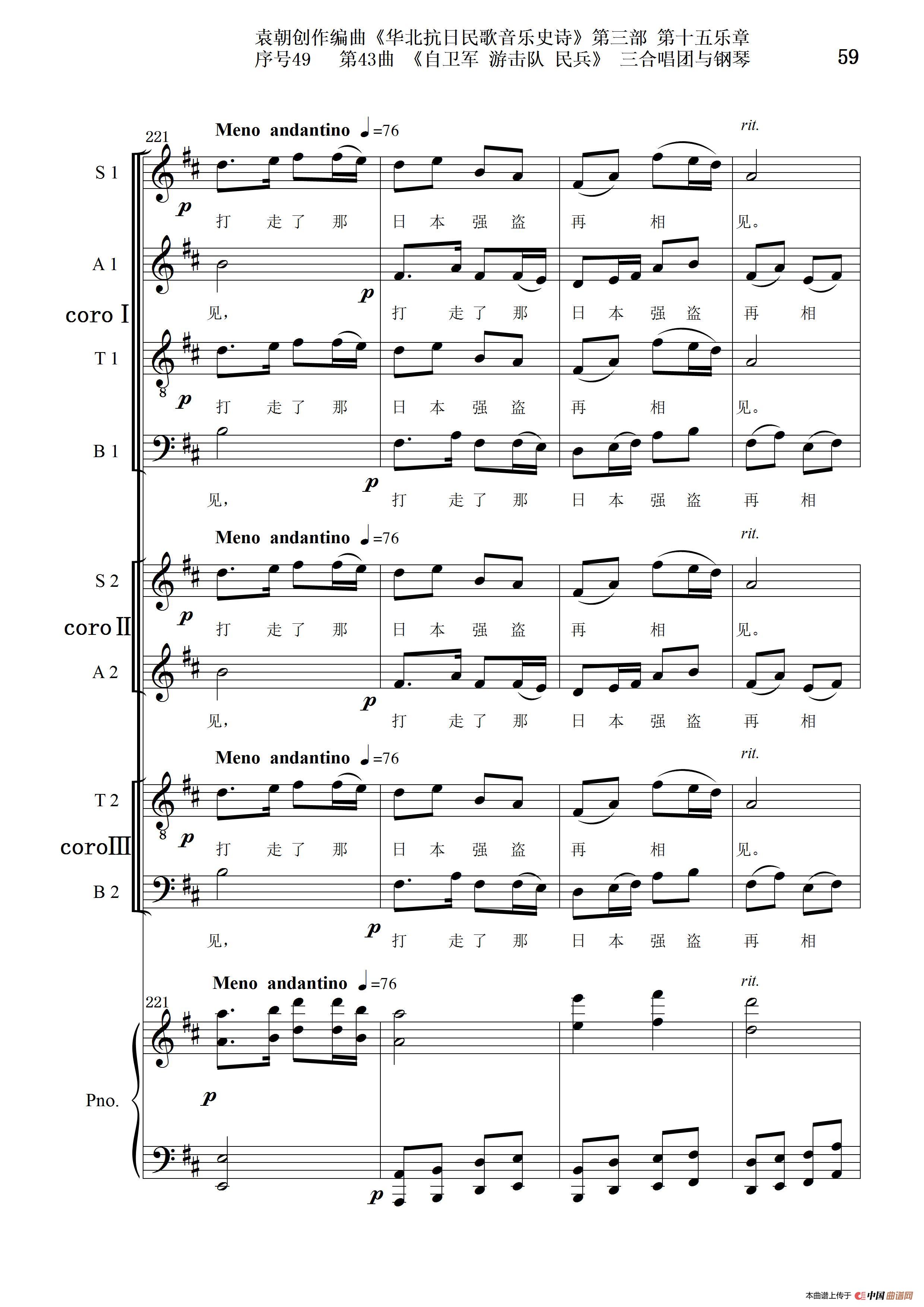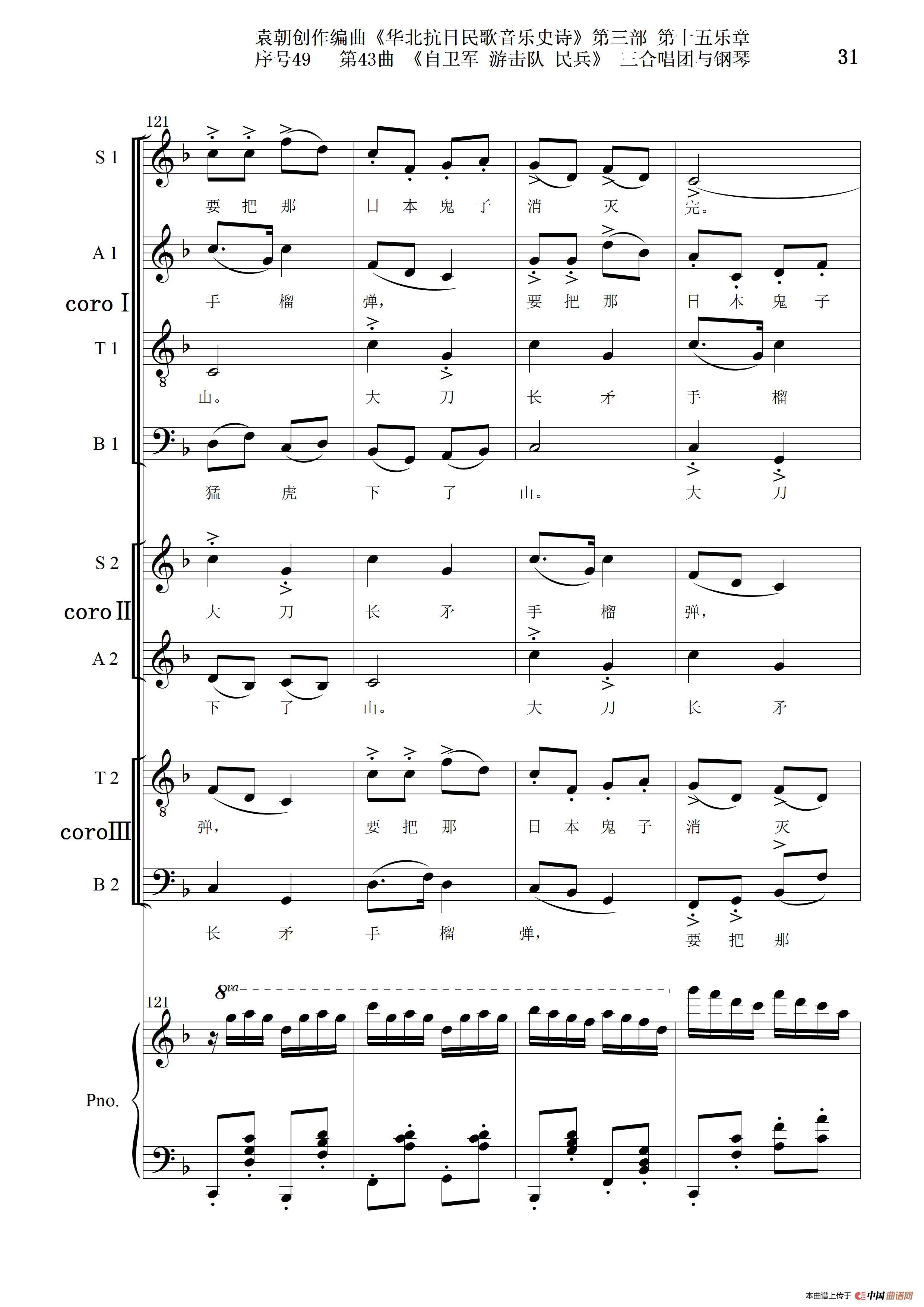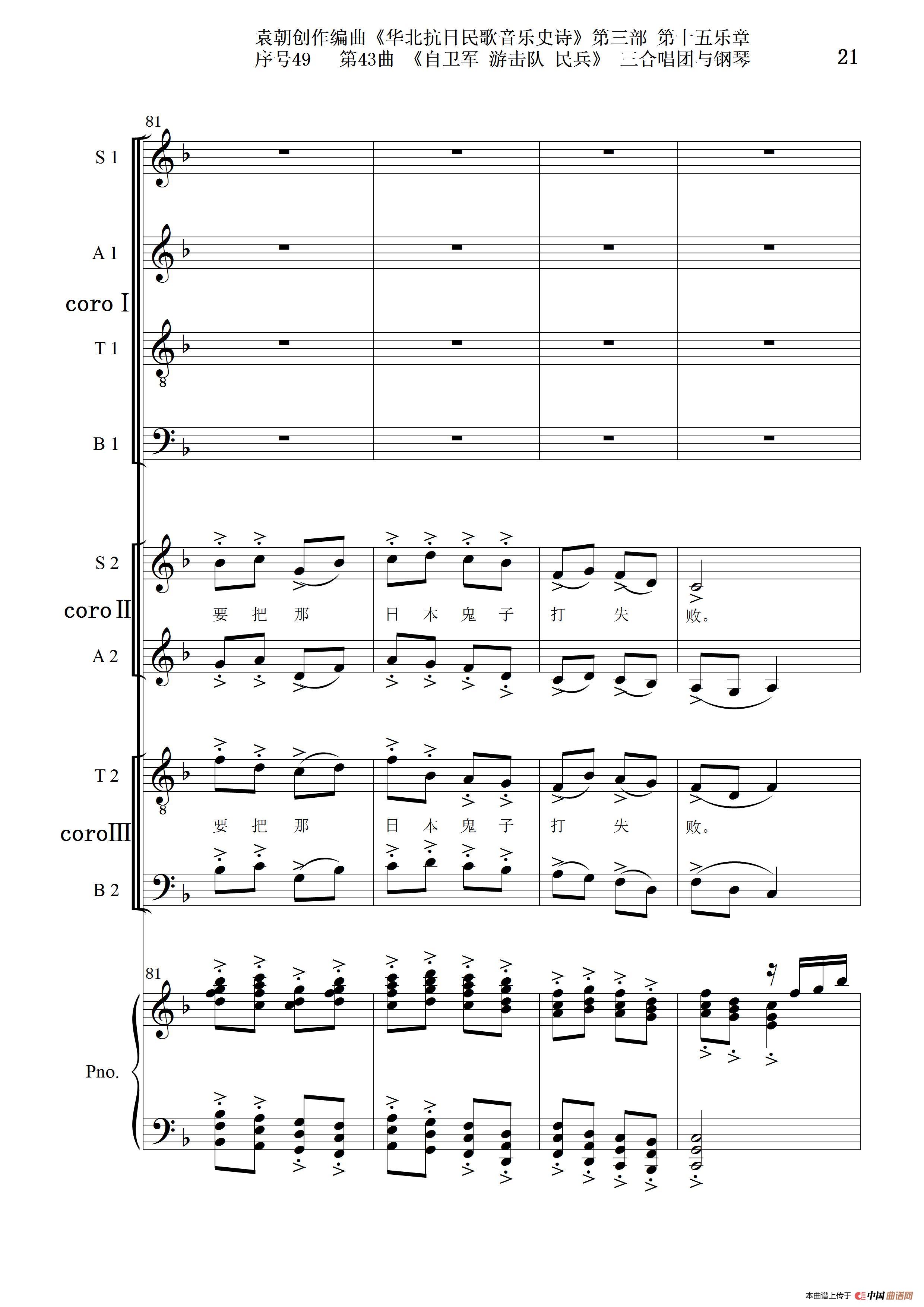 序号49第43曲《自卫军 游击队 民兵》三合唱团与钢琴