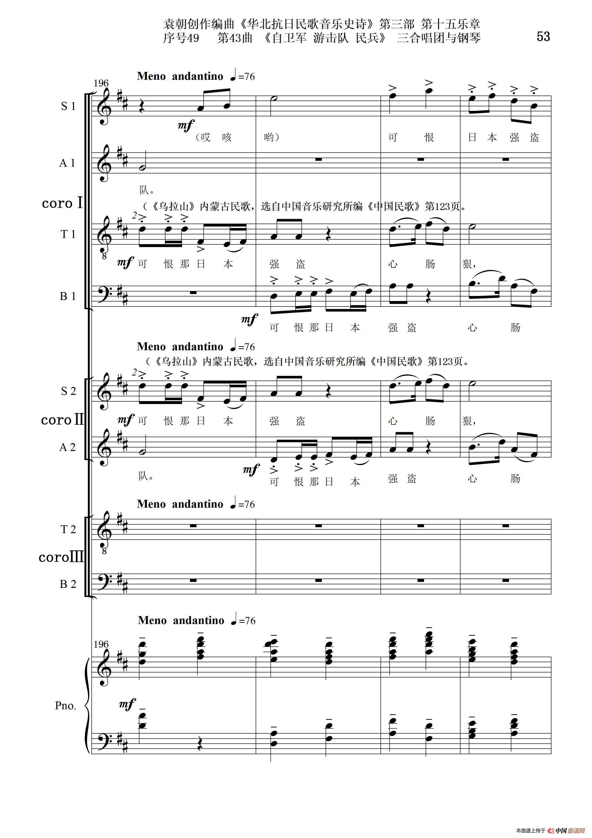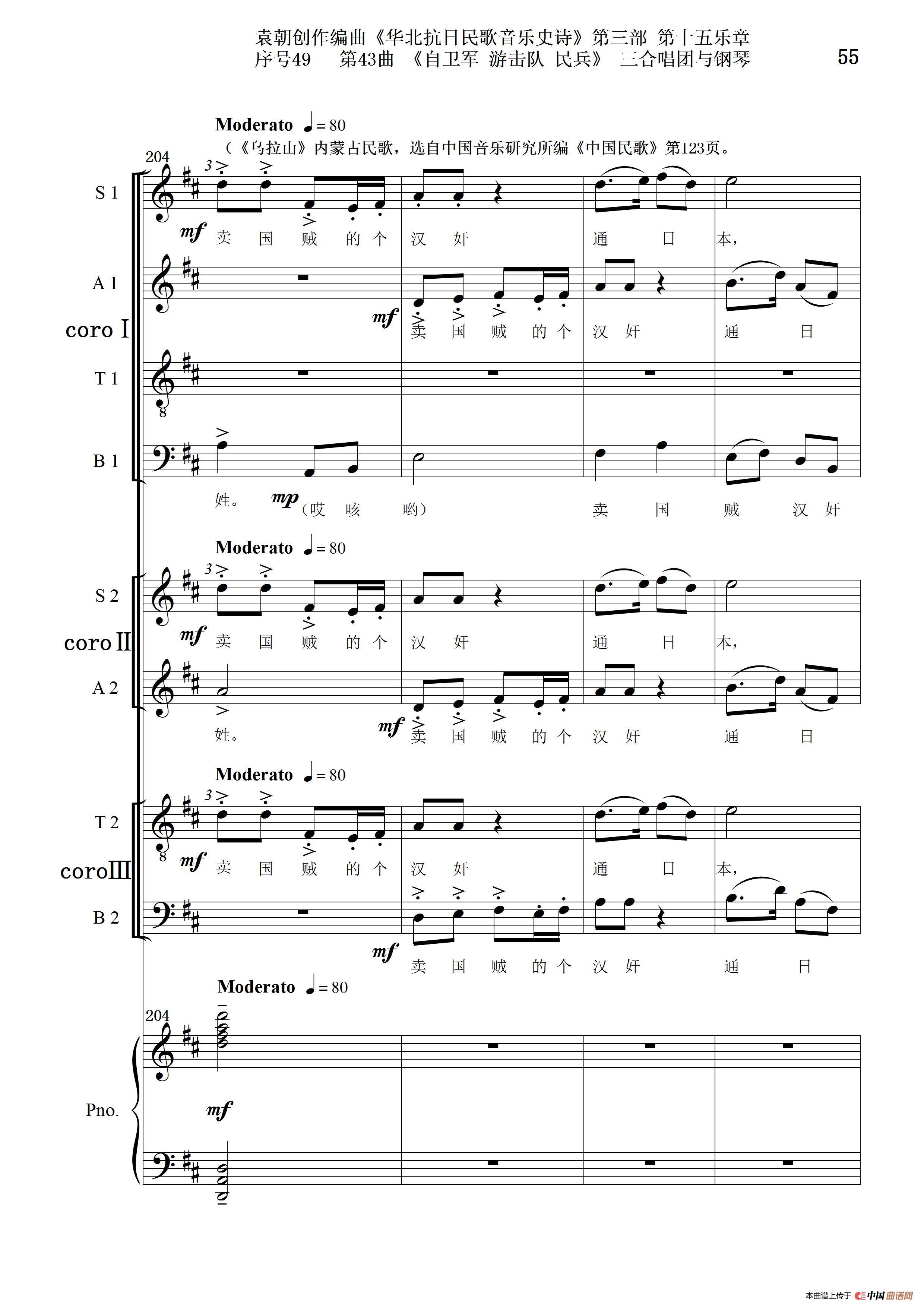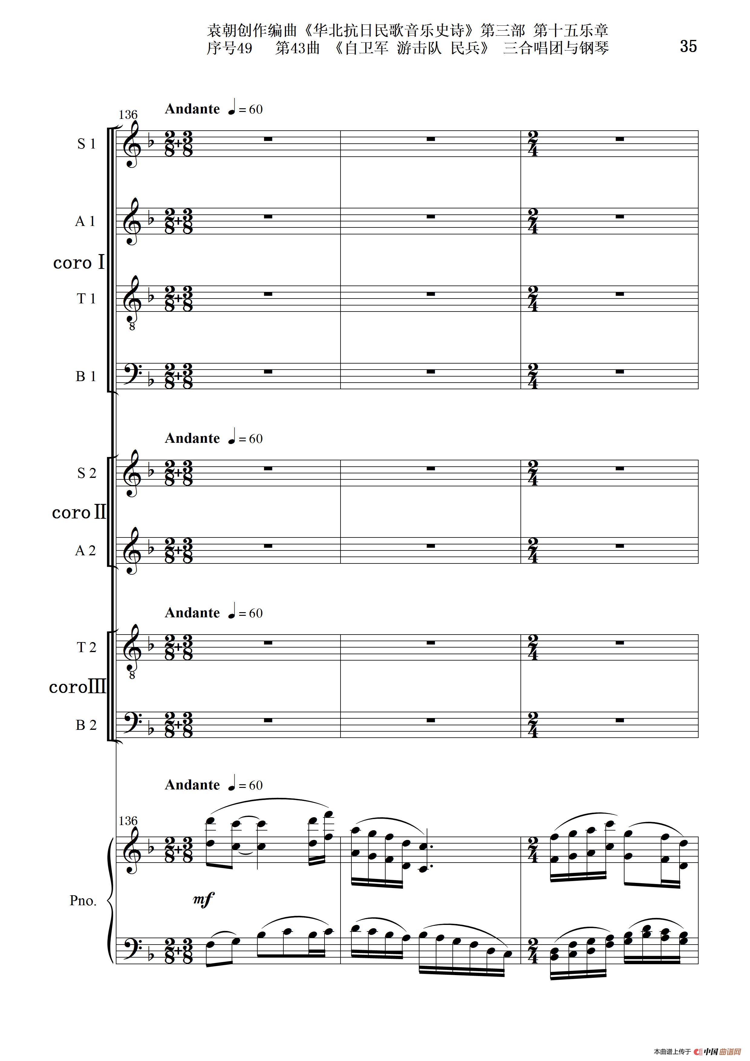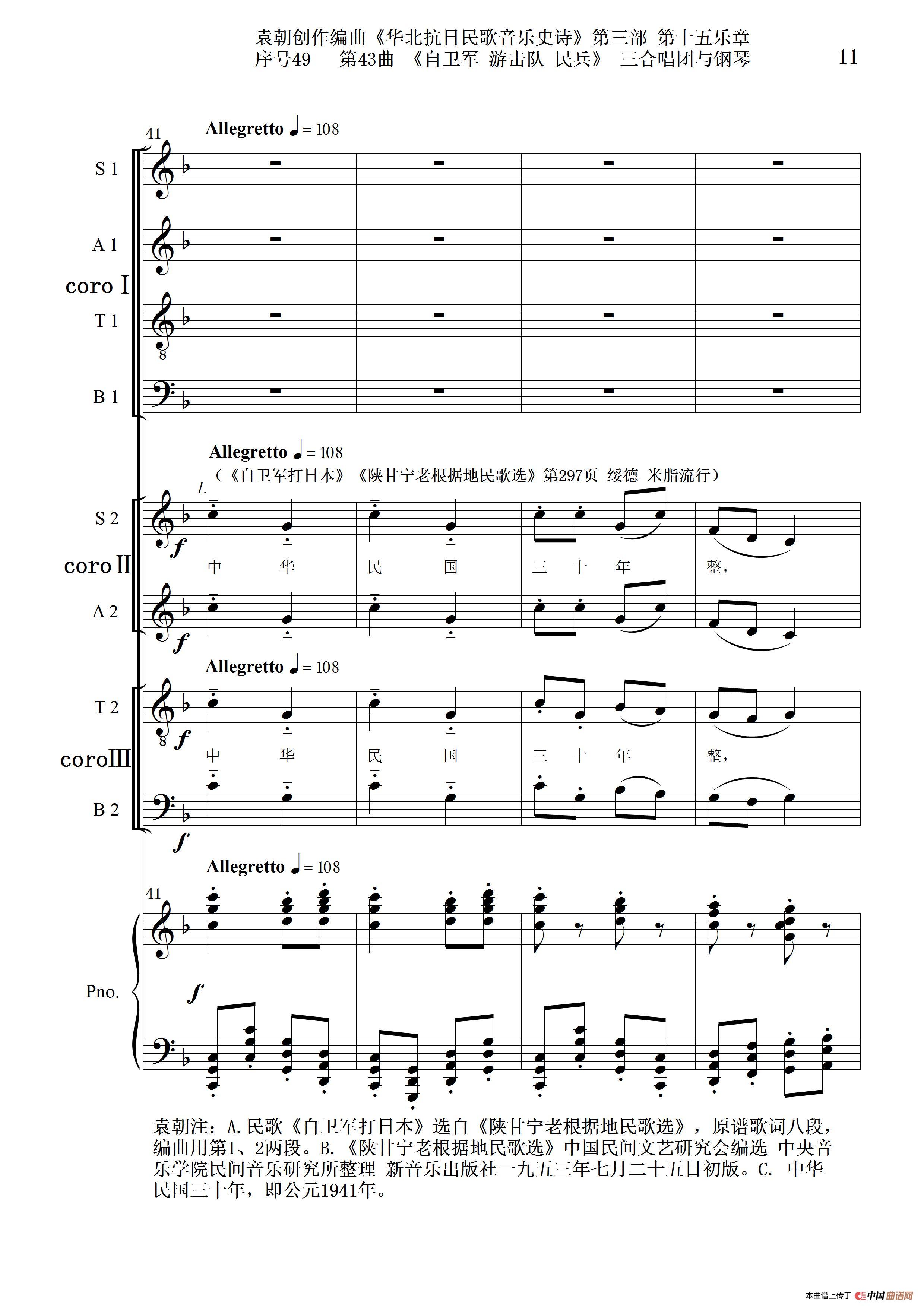 序号49第43曲《自卫军 游击队 民兵》三合唱团与钢琴