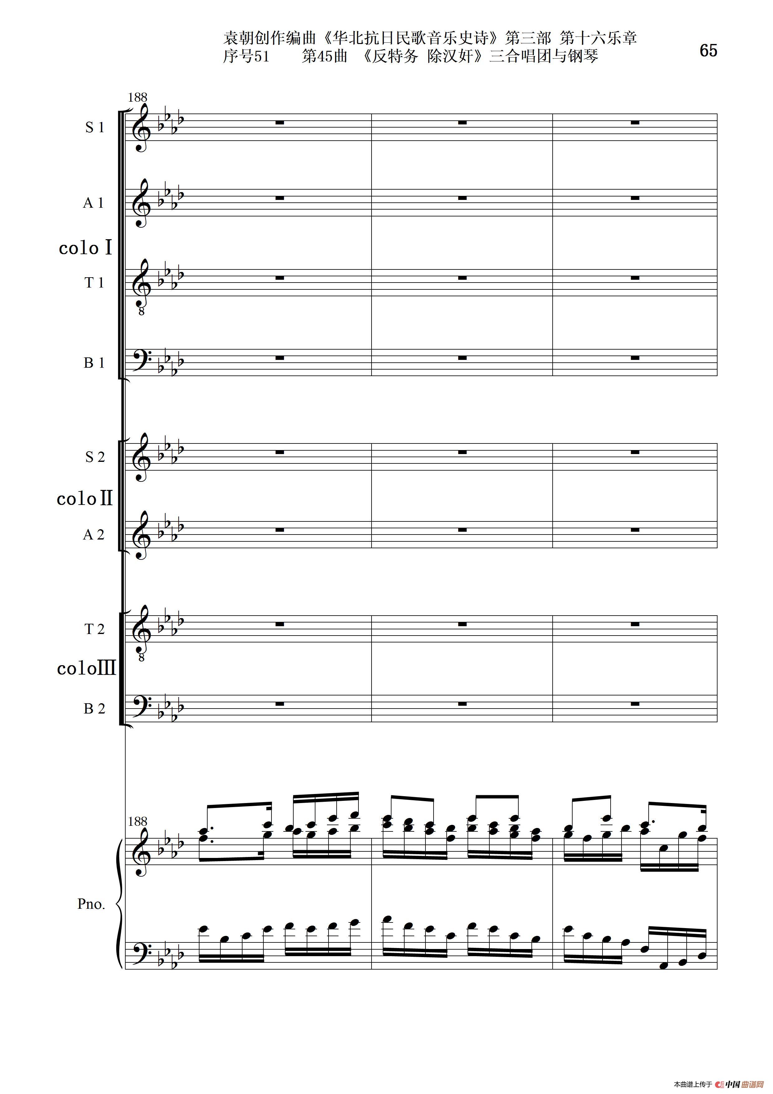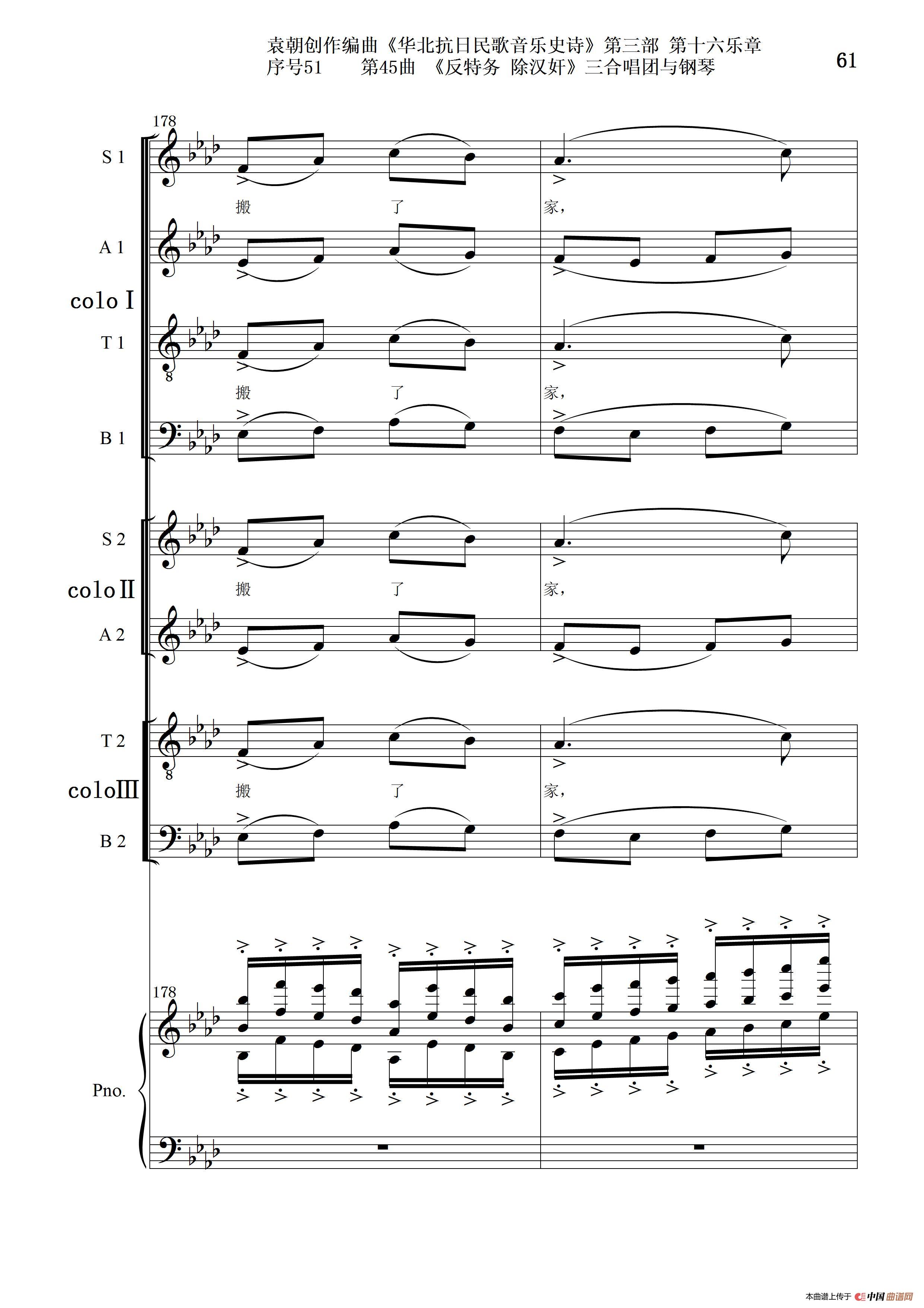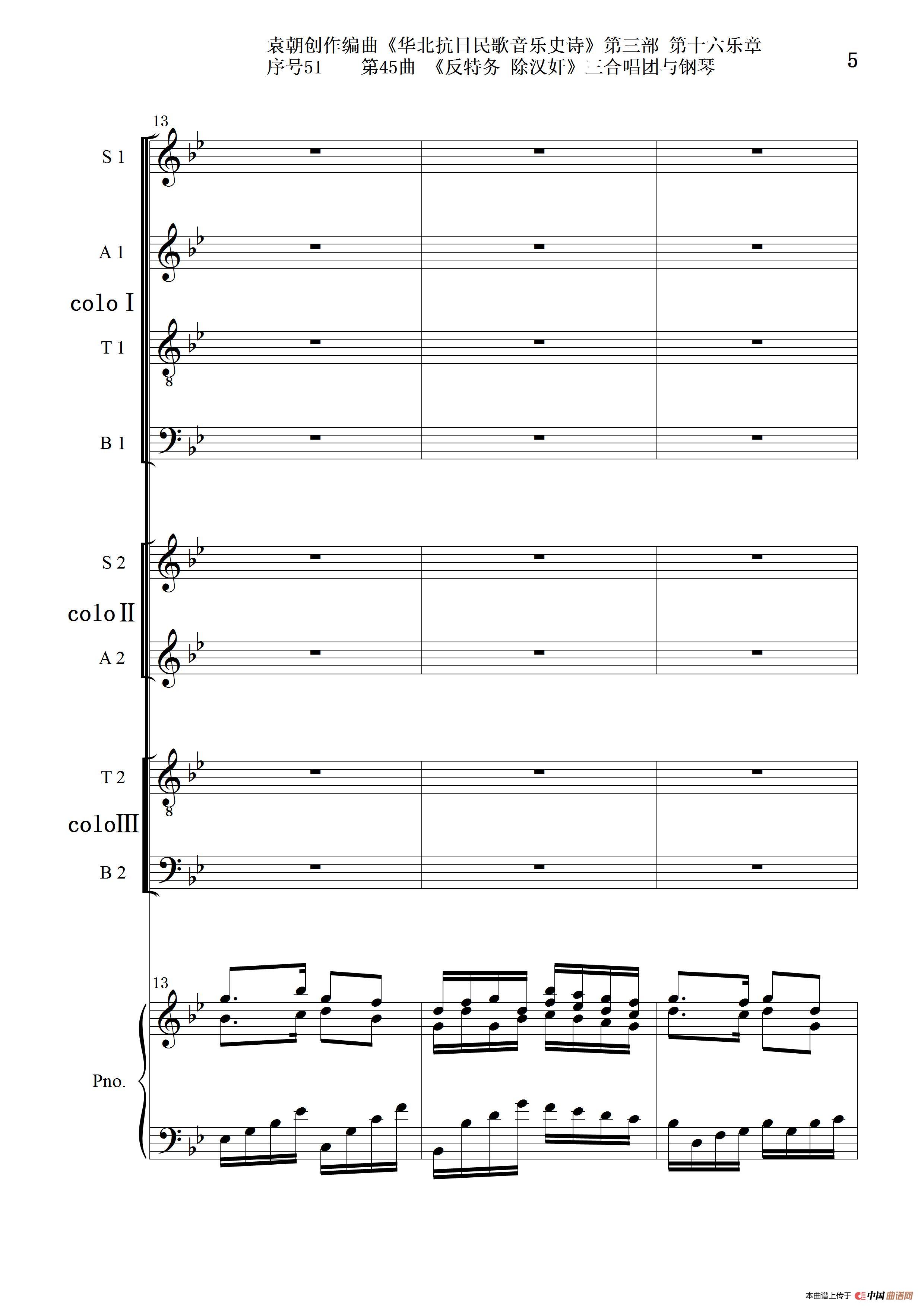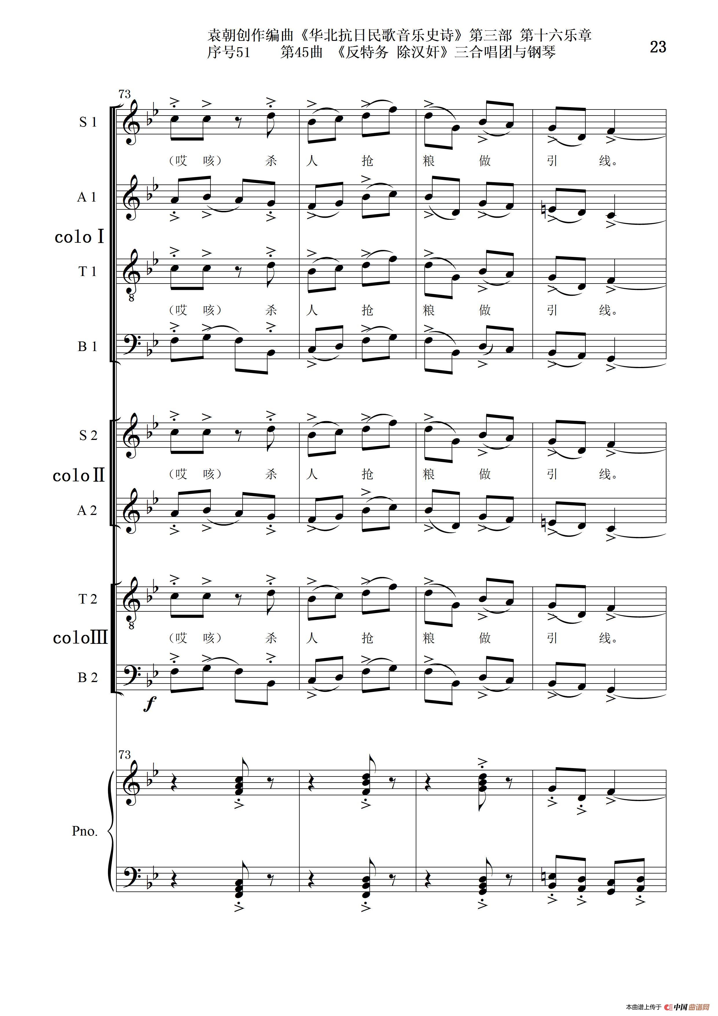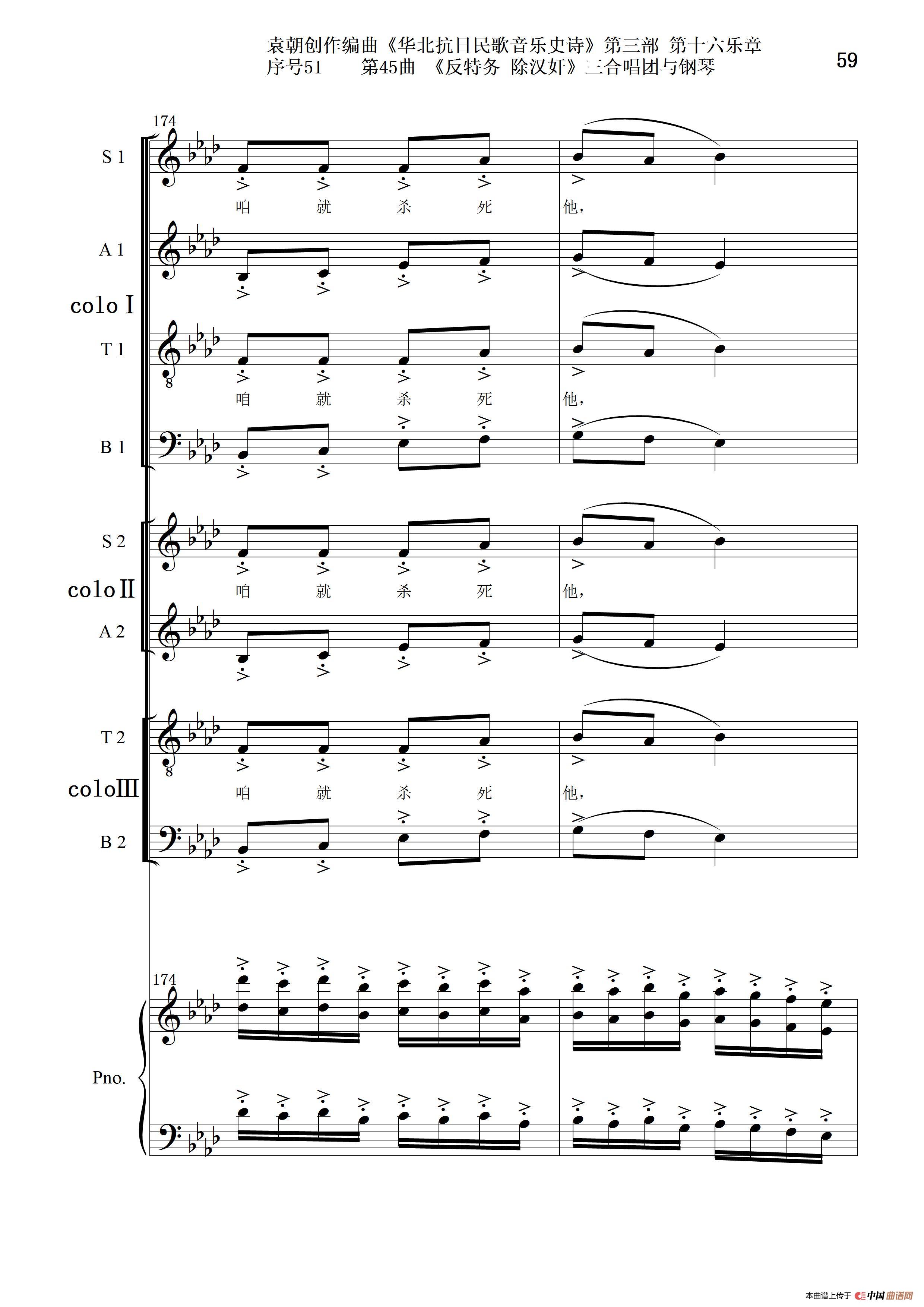 关于《序号51第45曲《反特务 除汉奸》三合唱团与钢琴》曲谱的评论