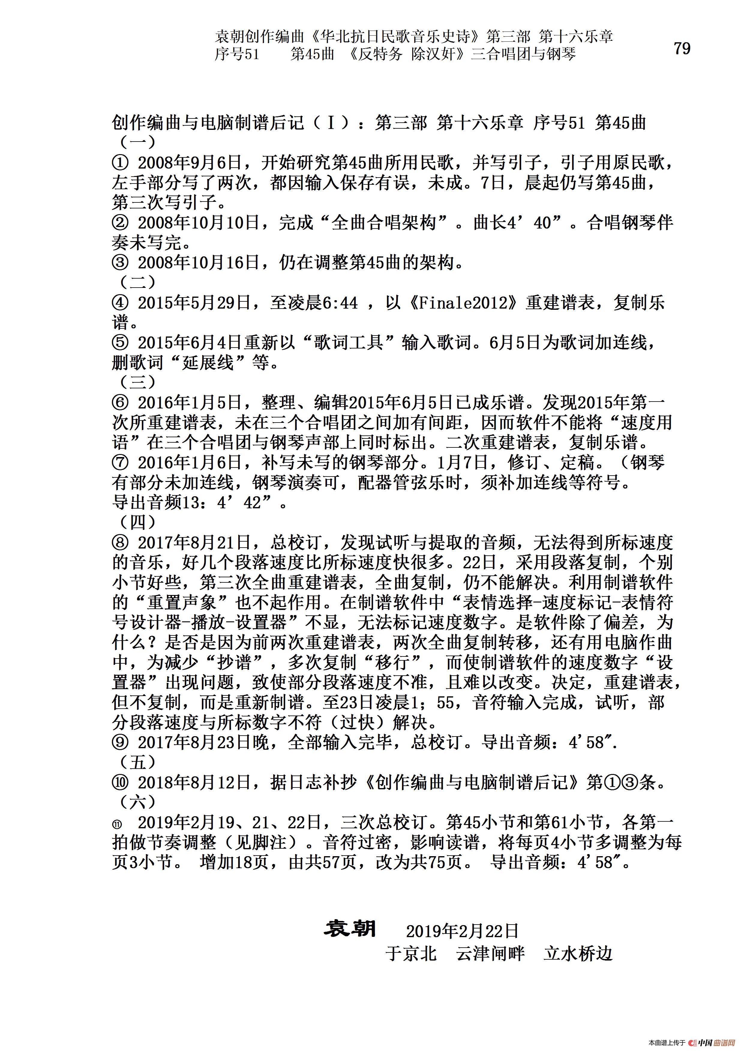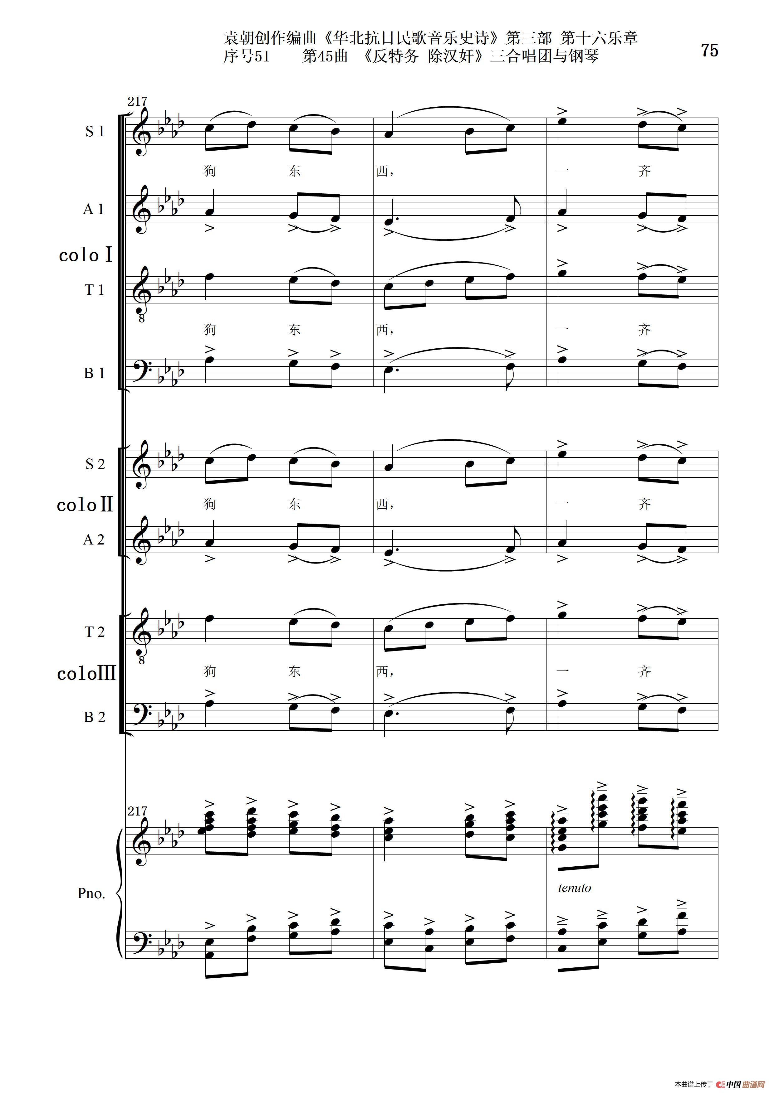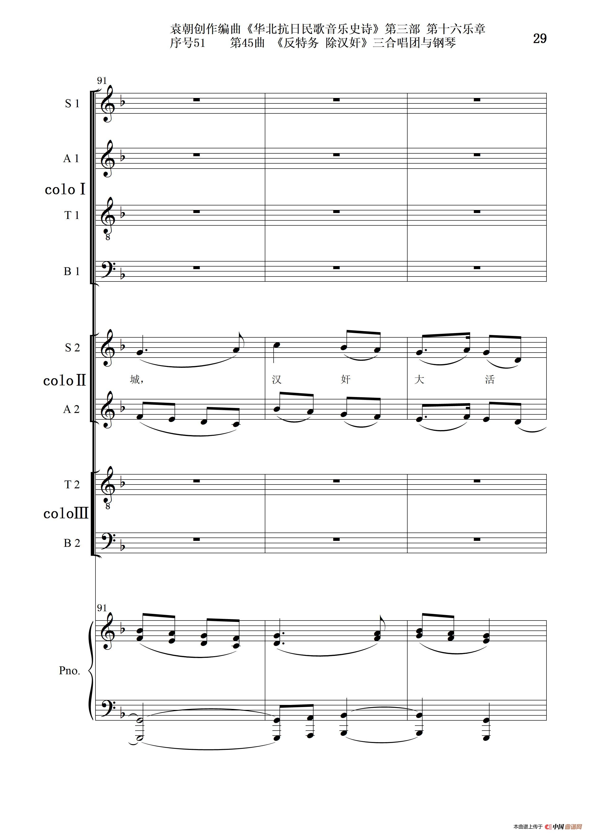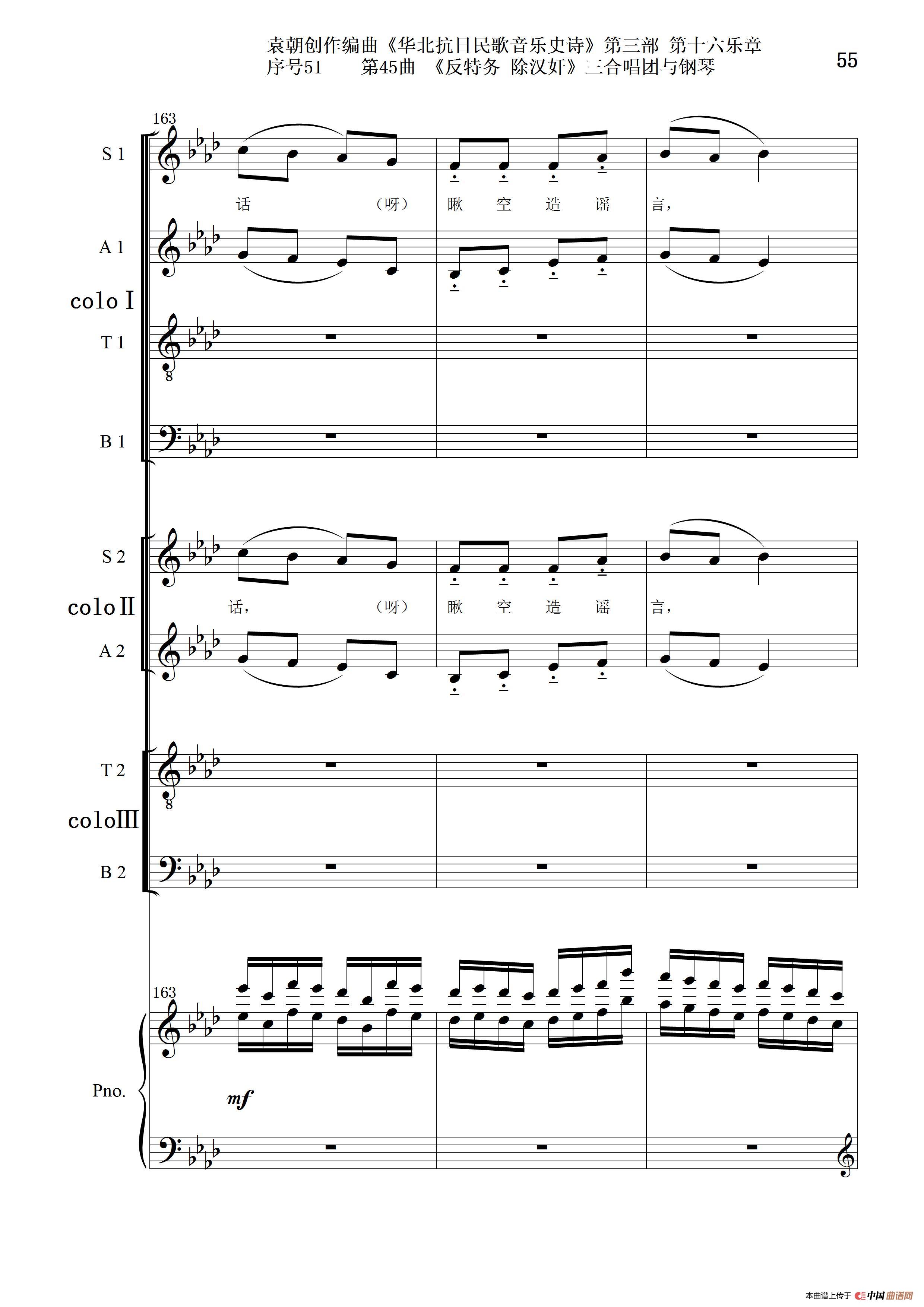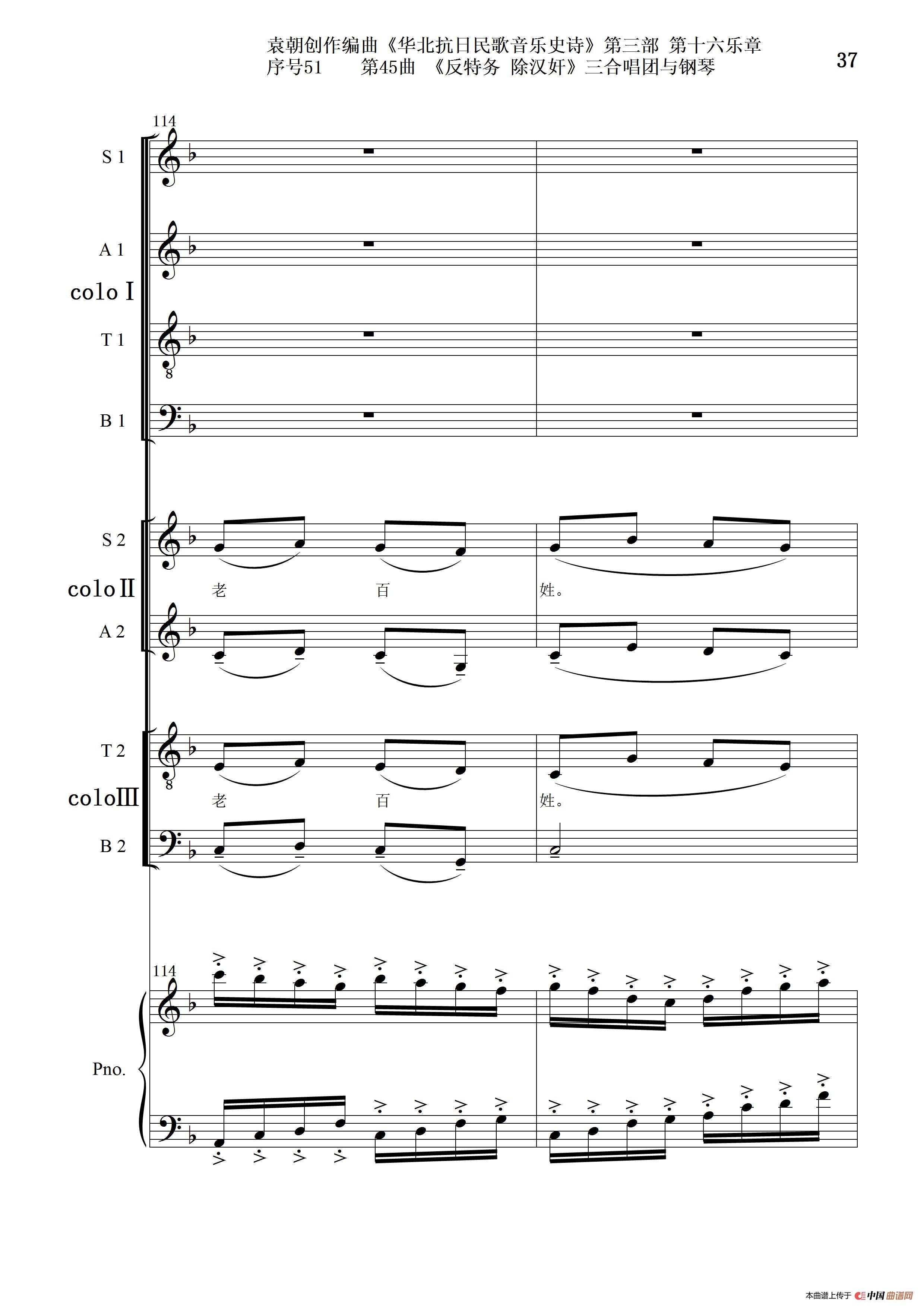 关于《序号51第45曲《反特务 除汉奸》三合唱团与钢琴》曲谱的评论
