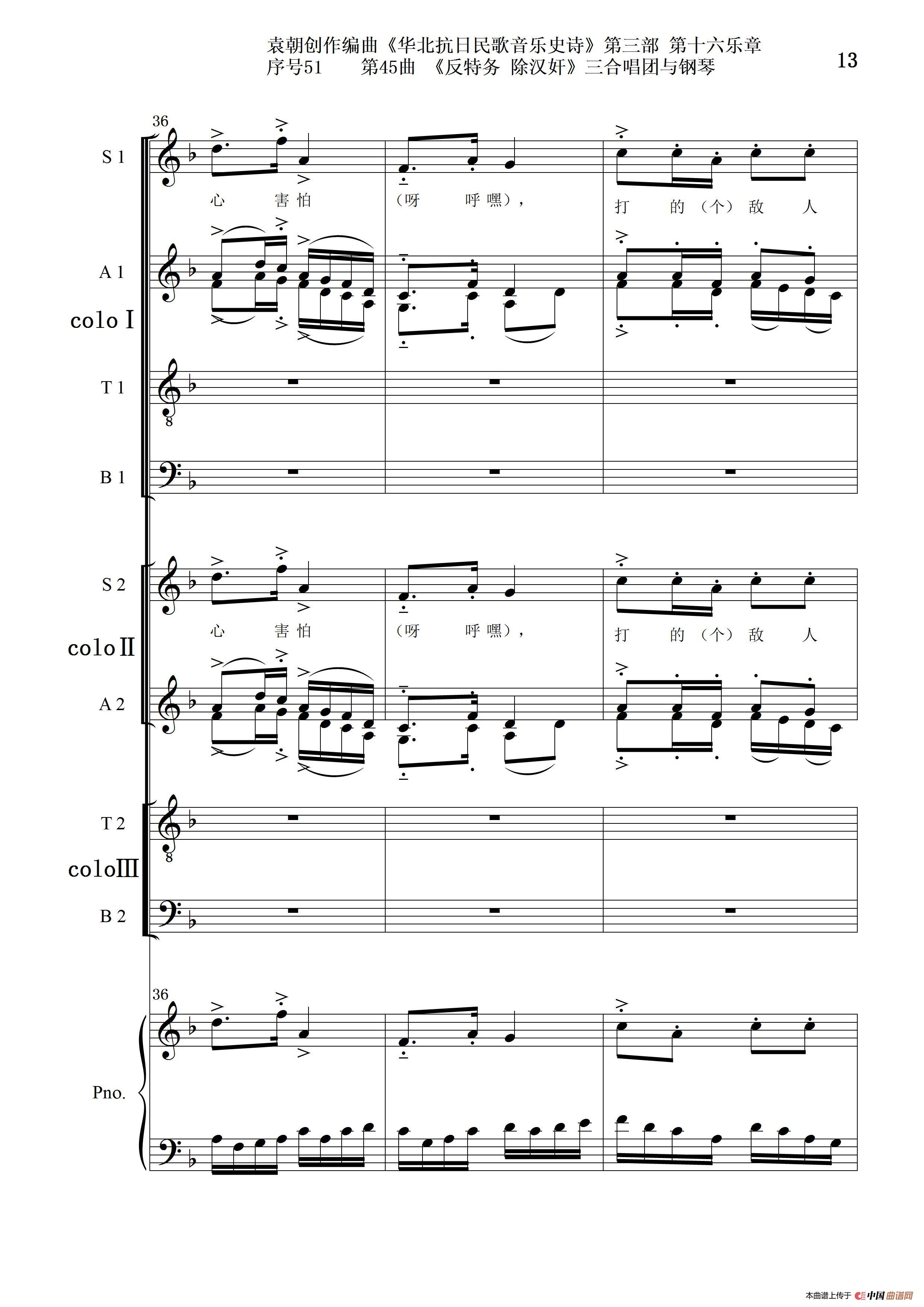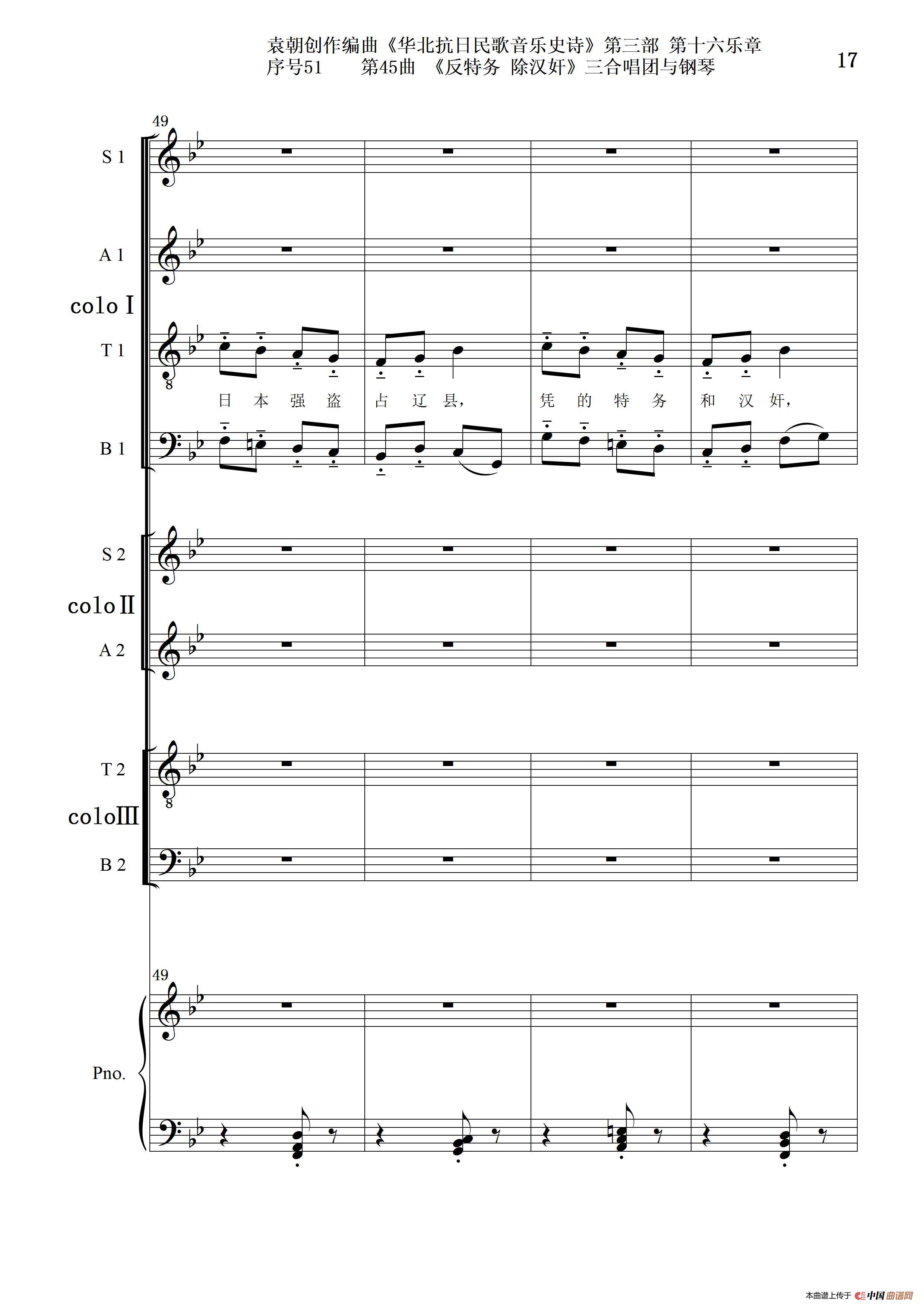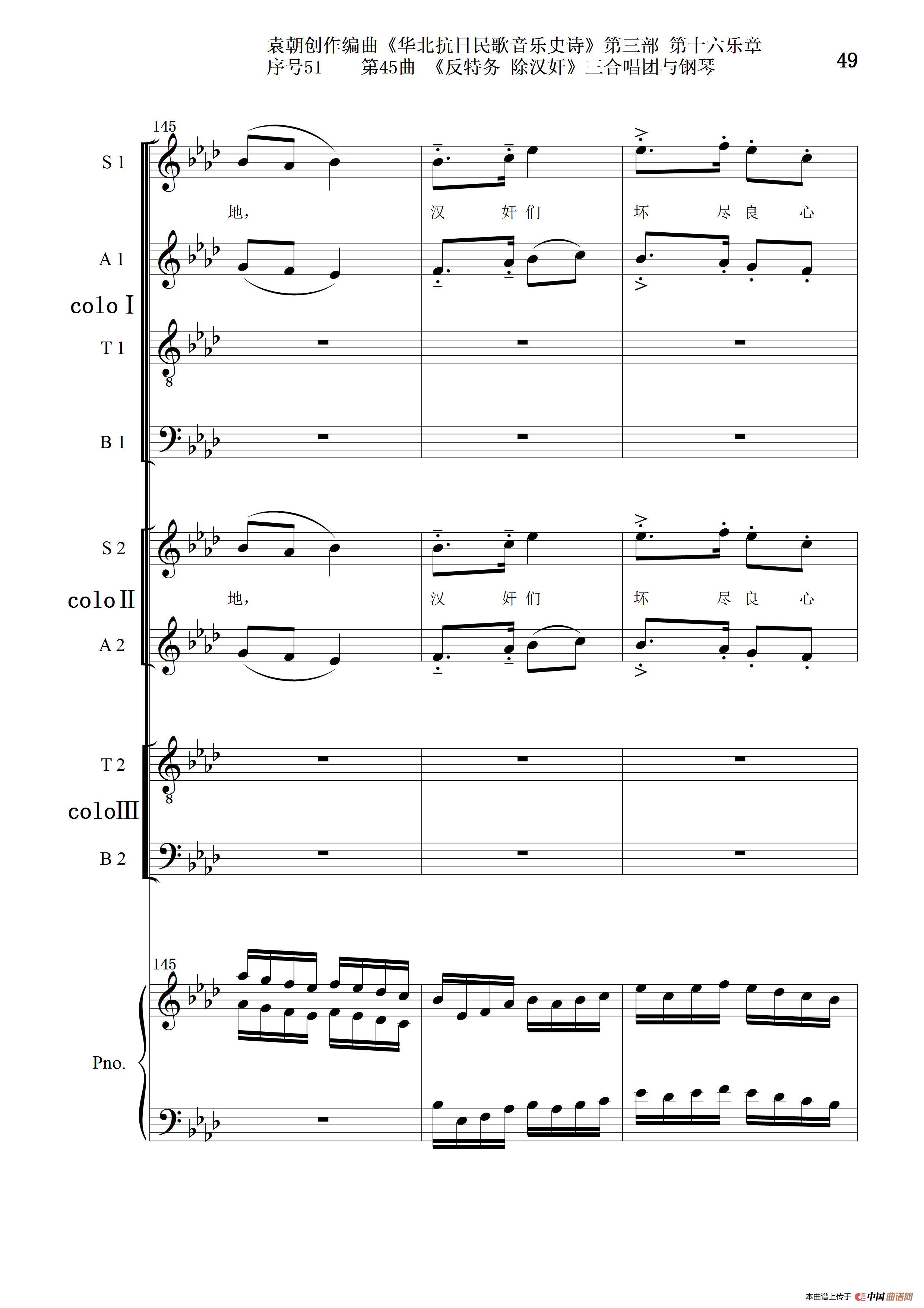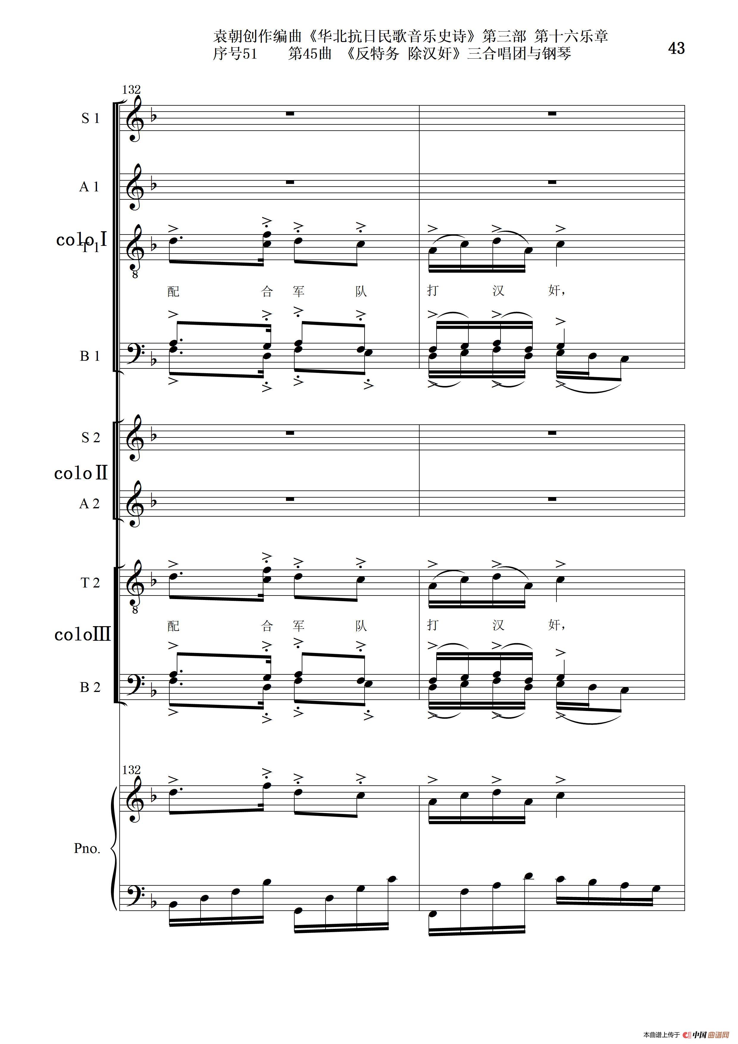 序号51第45曲《反特务 除汉奸》三合唱团与钢琴