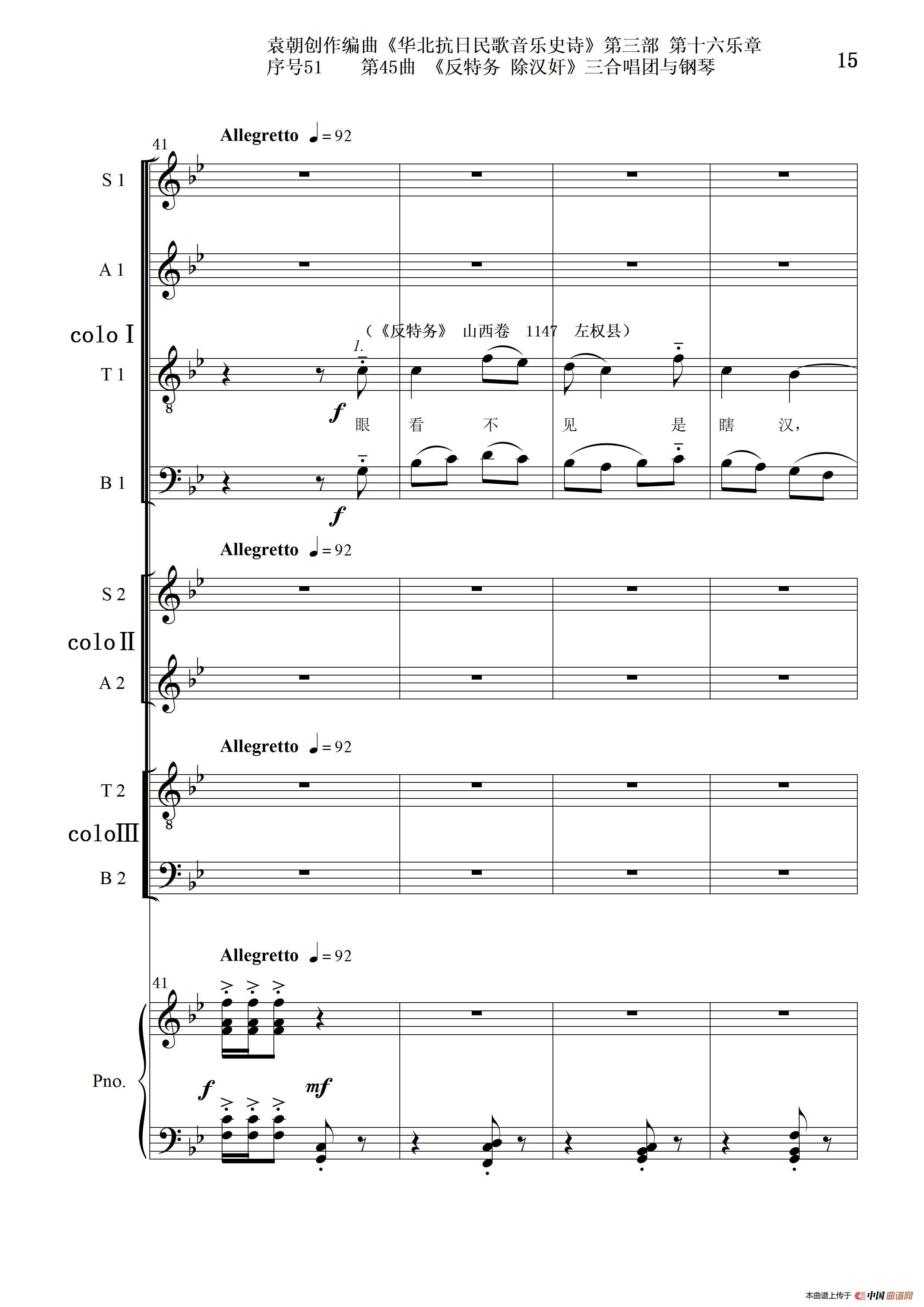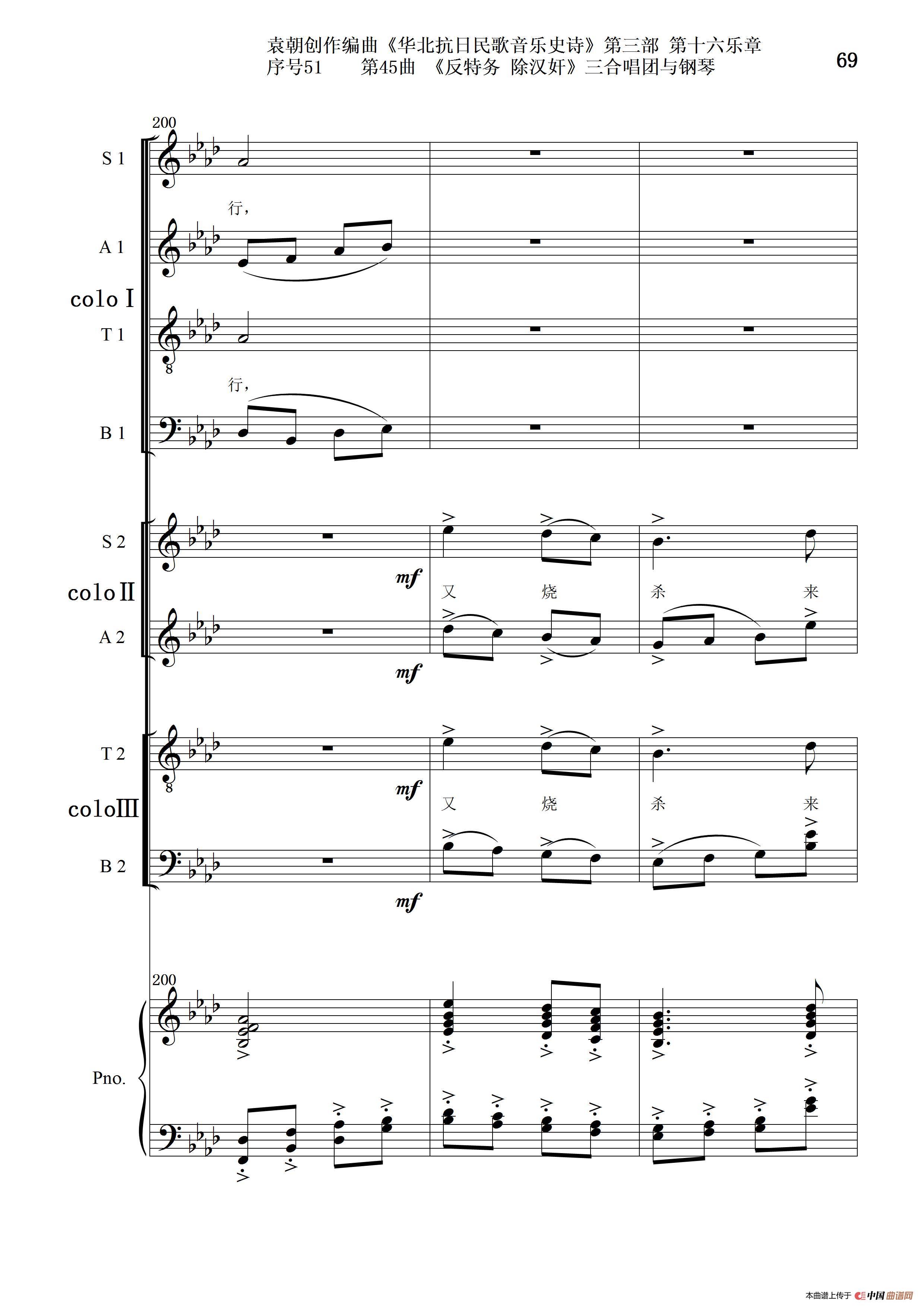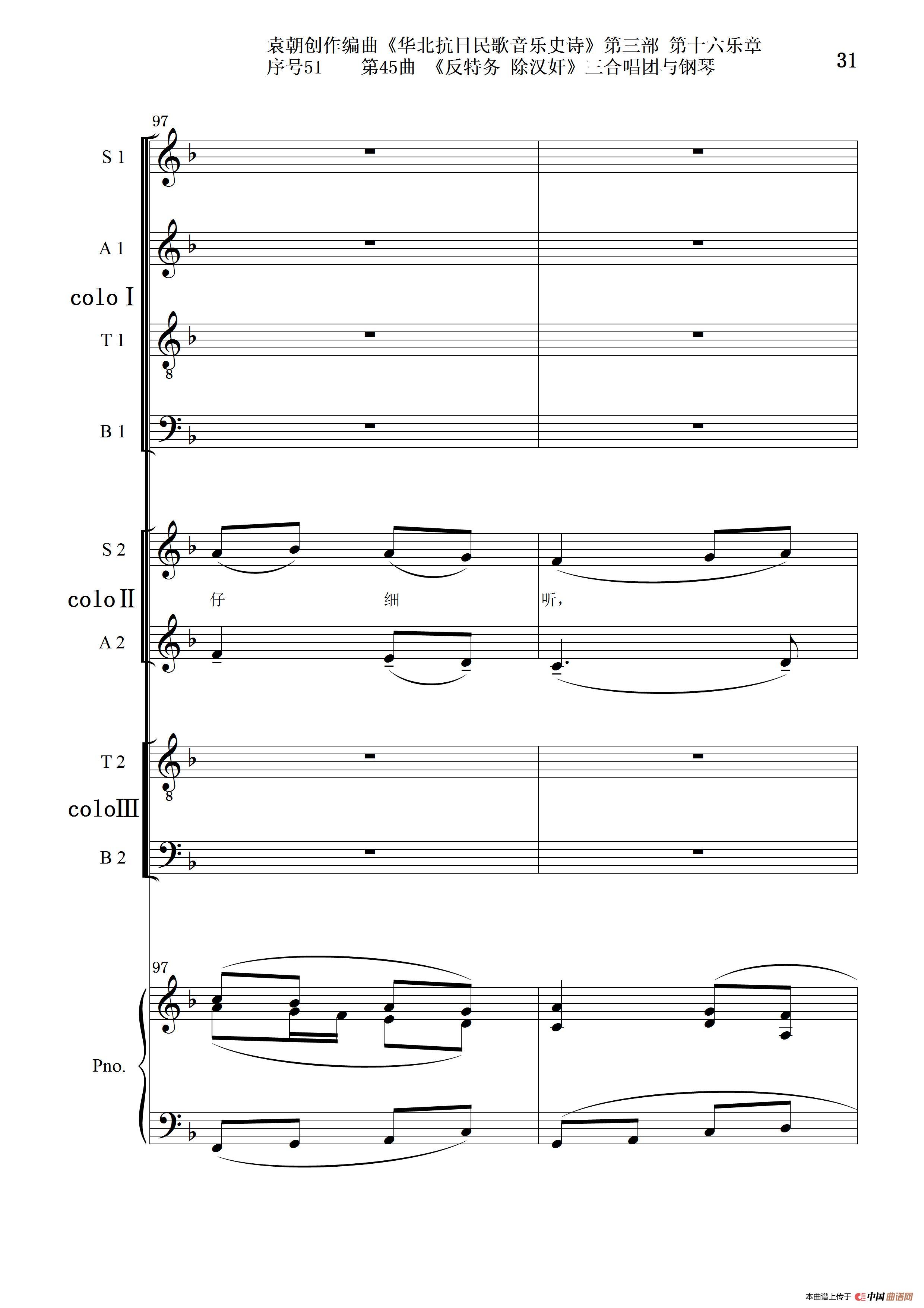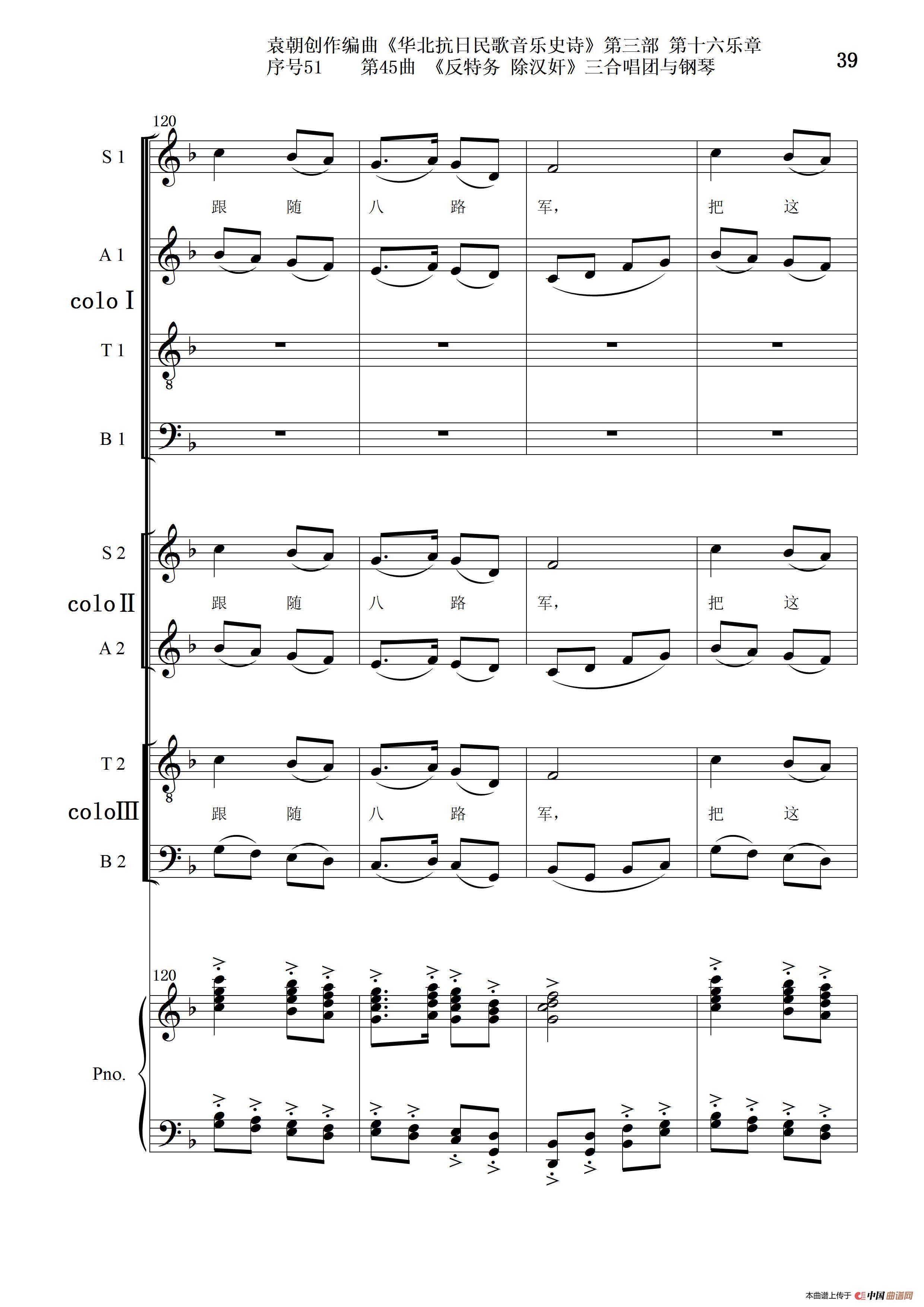序号51第45曲《反特务 除汉奸》三合唱团与钢琴