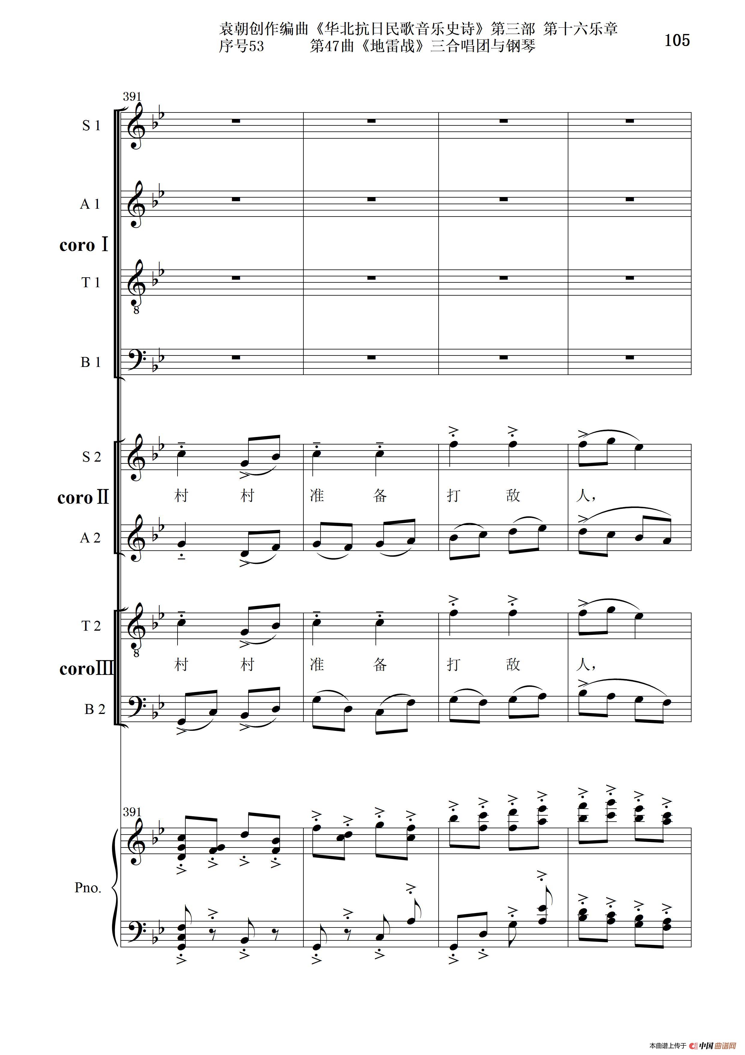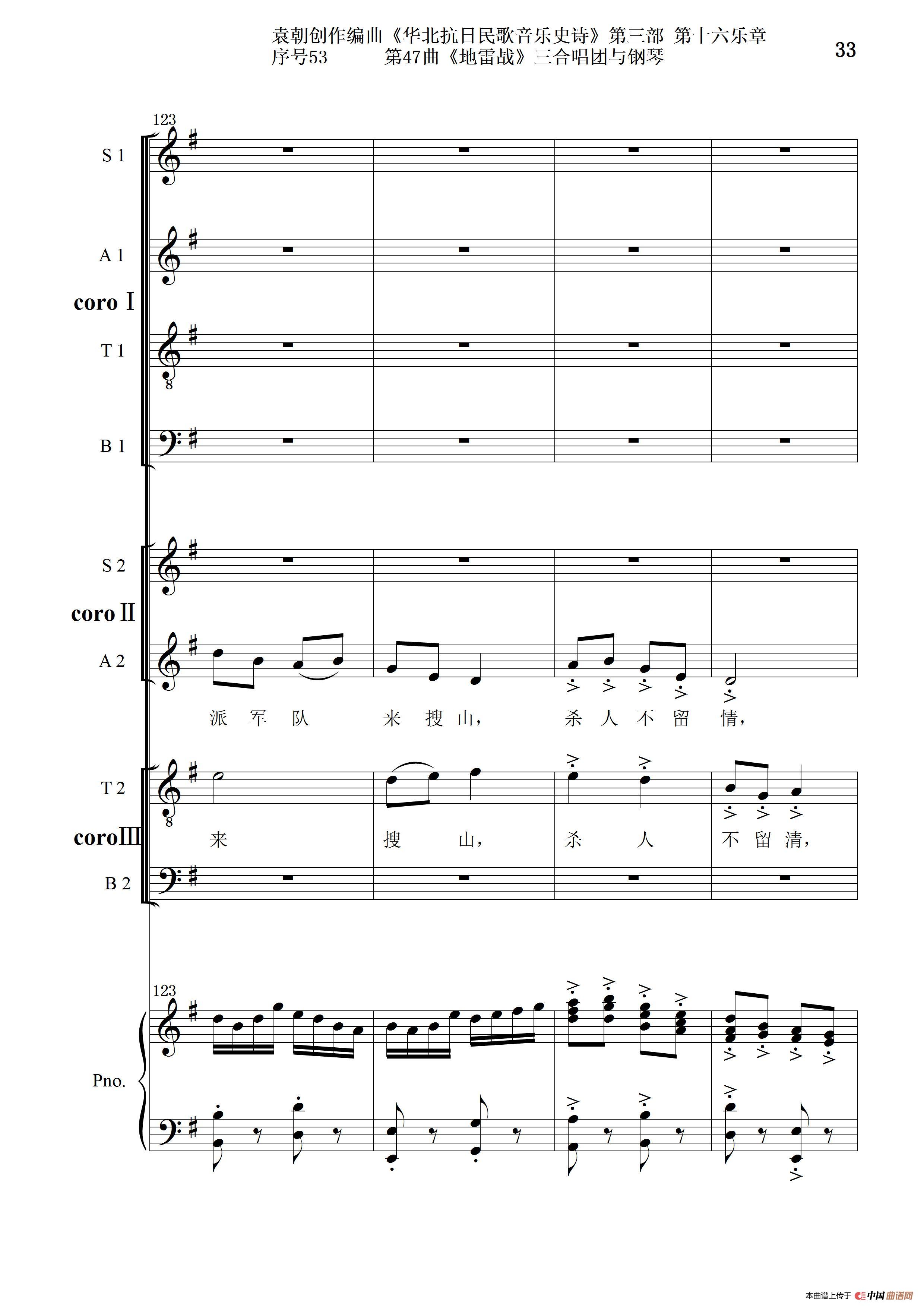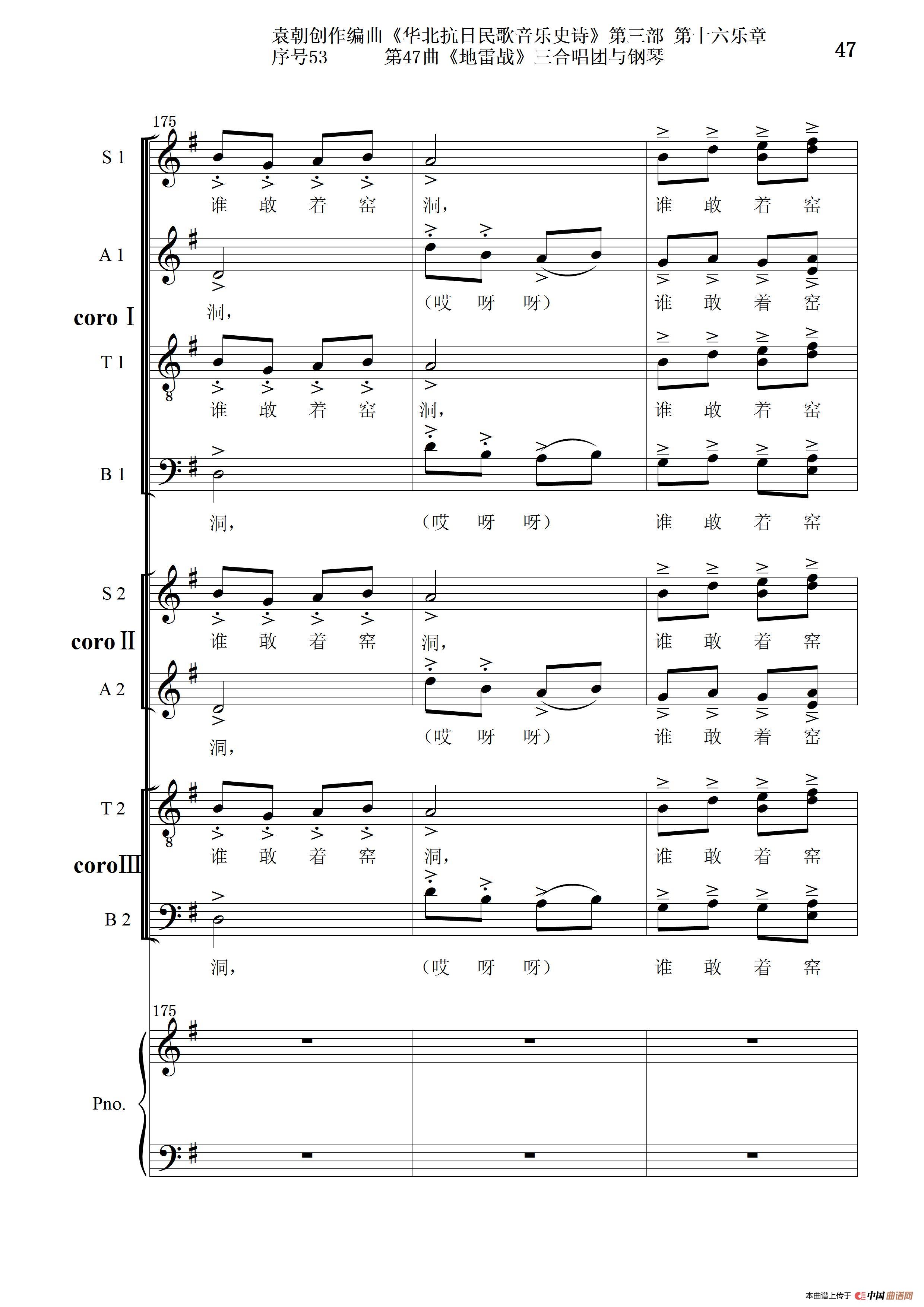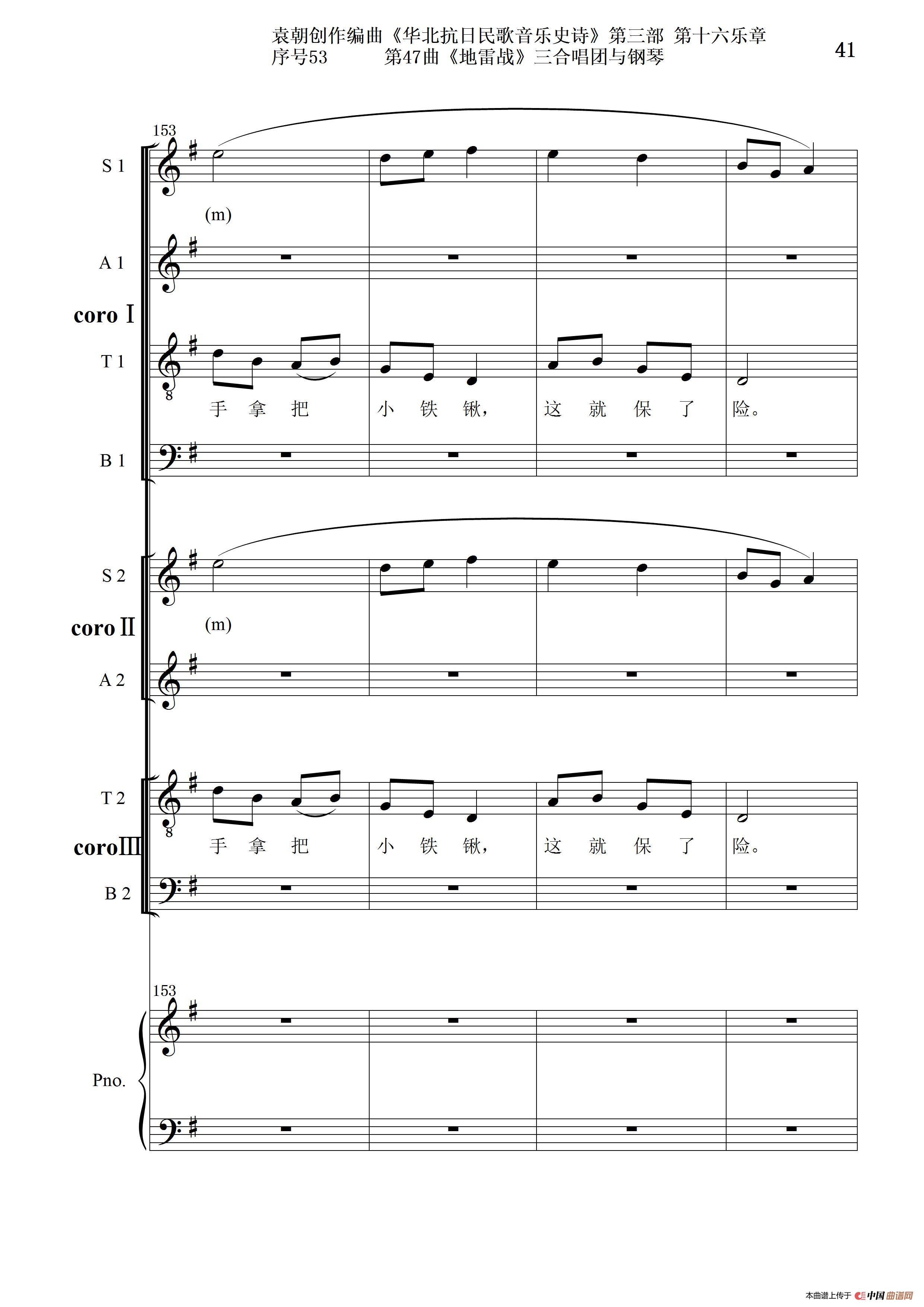 序号53第47曲《地雷战》三合唱团与钢琴