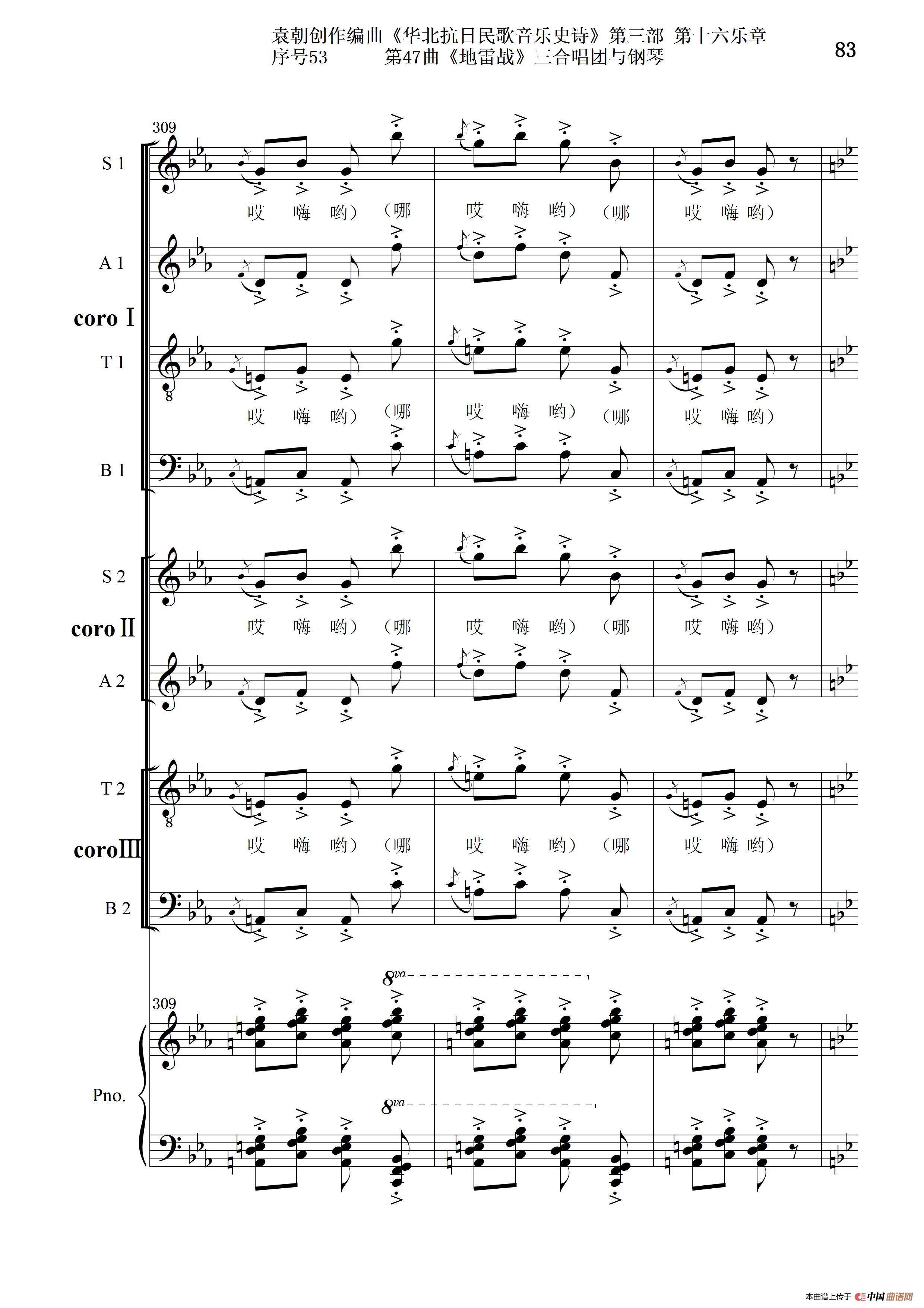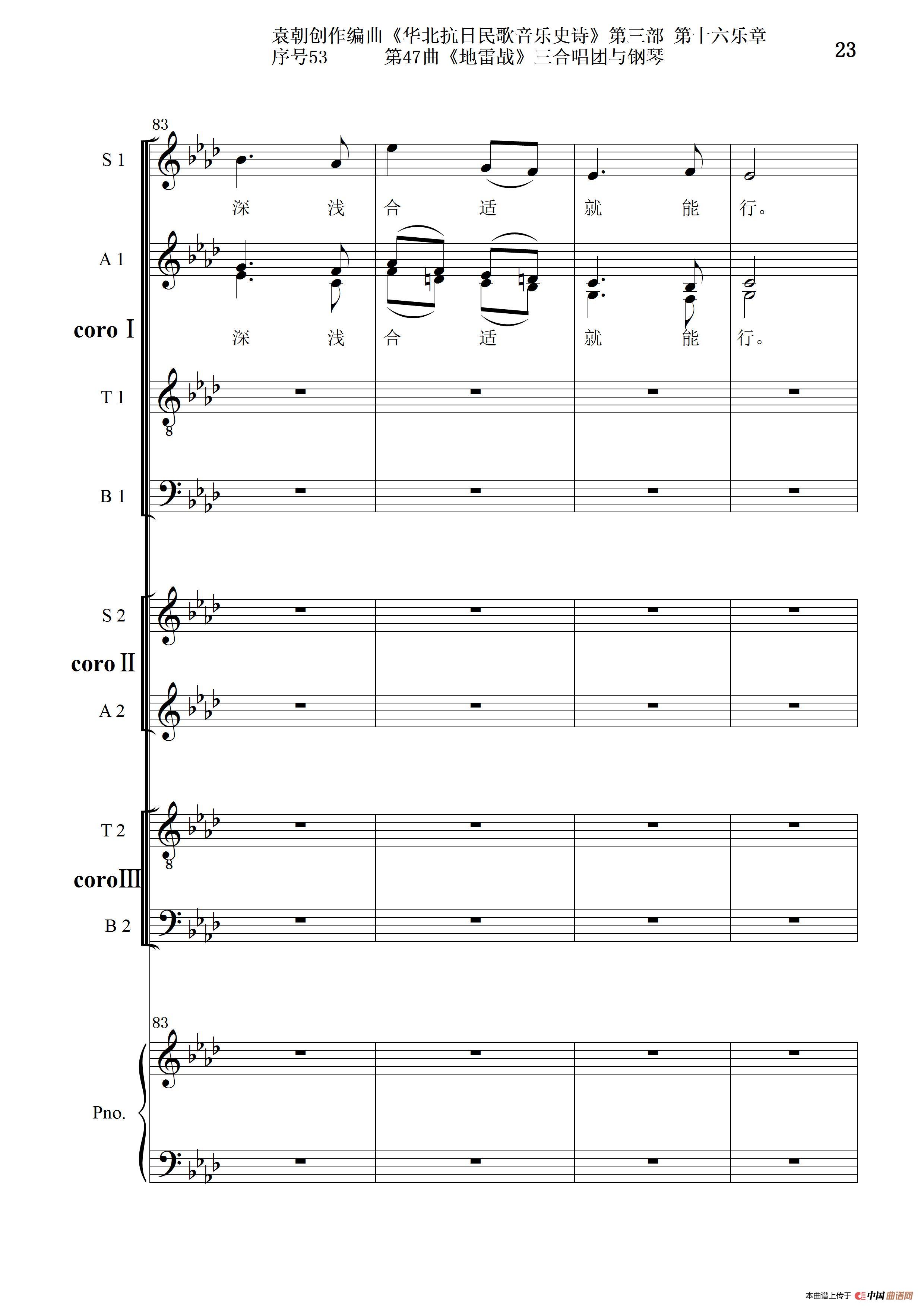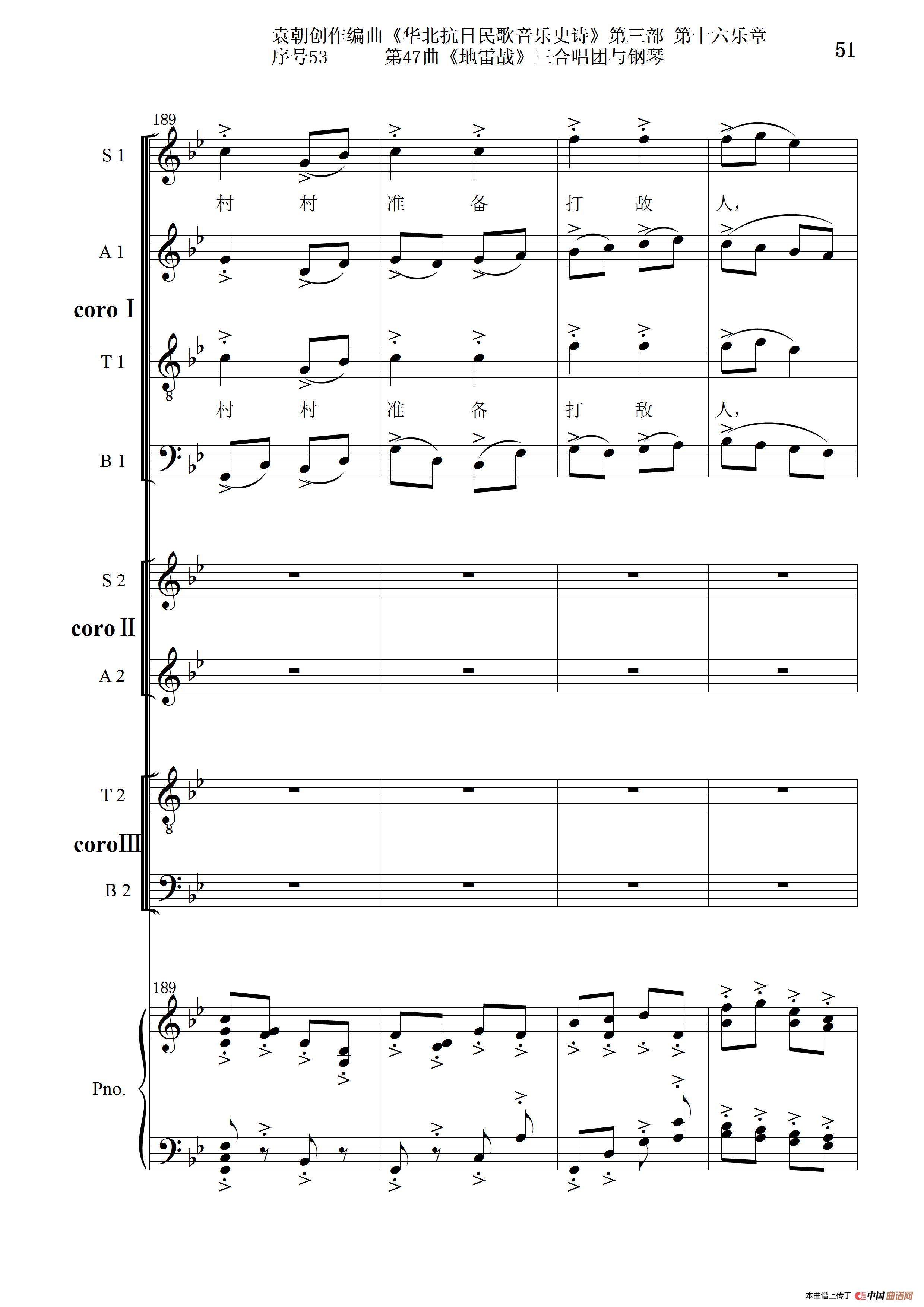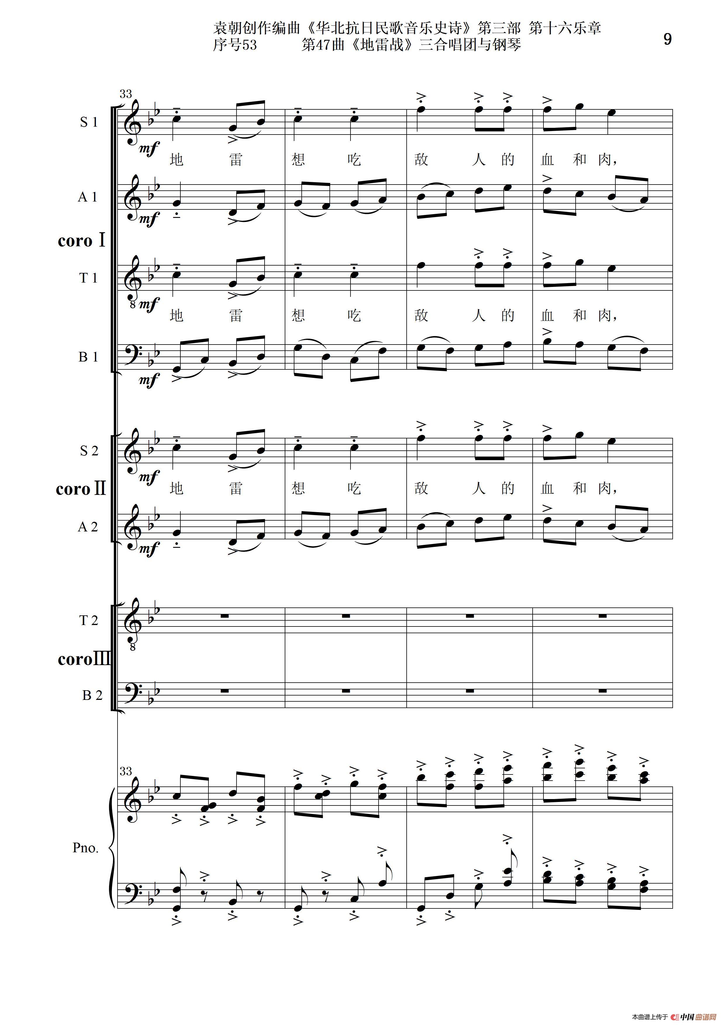 序号53第47曲《地雷战》三合唱团与钢琴