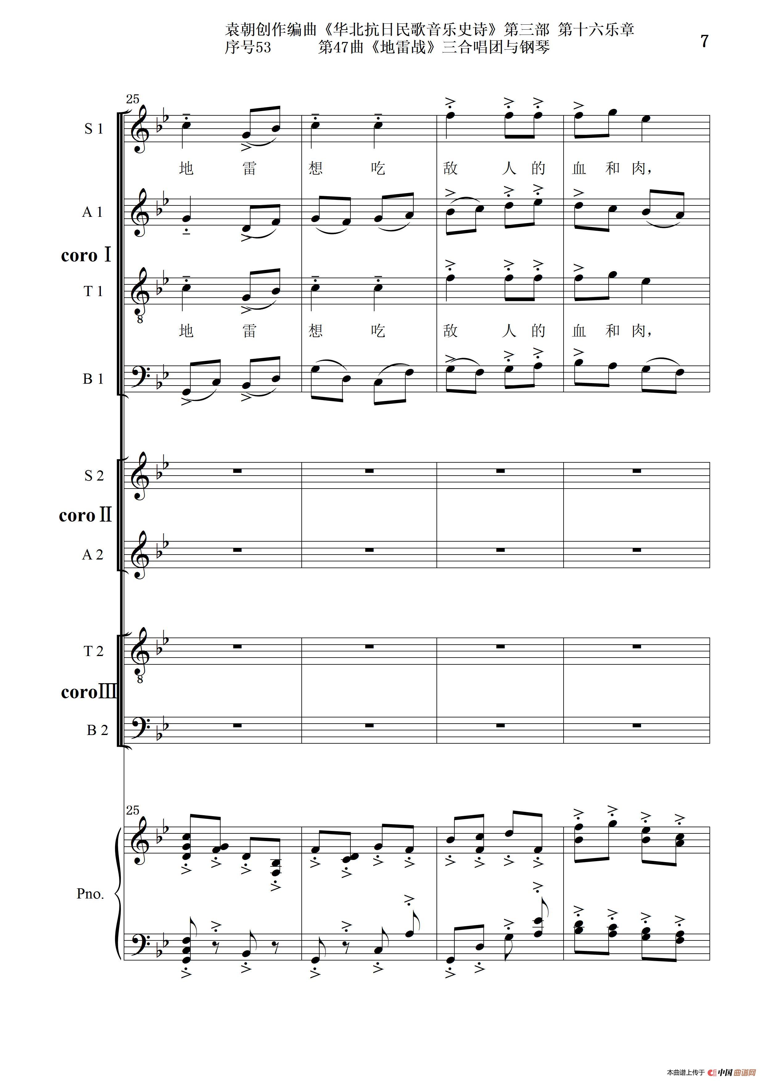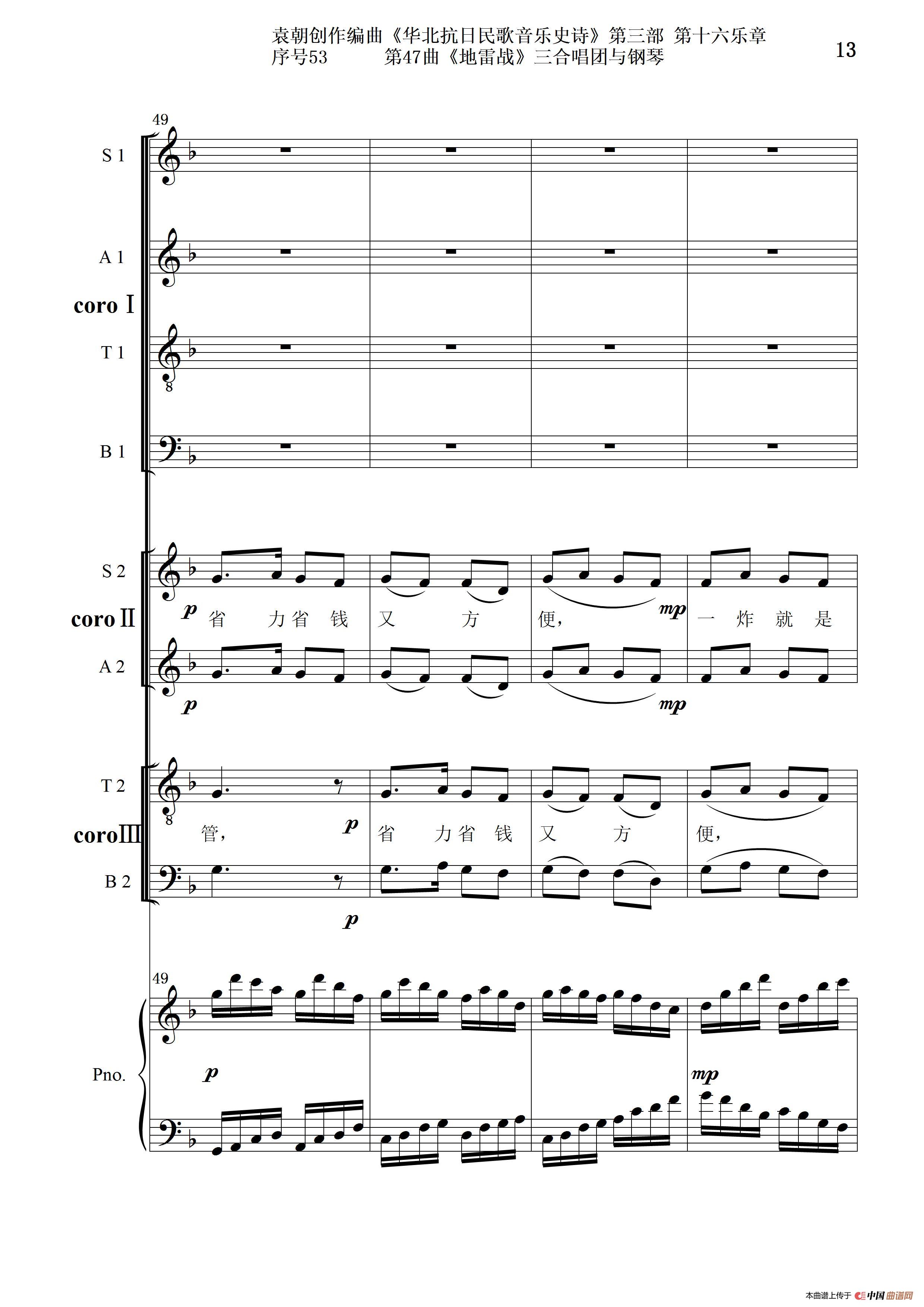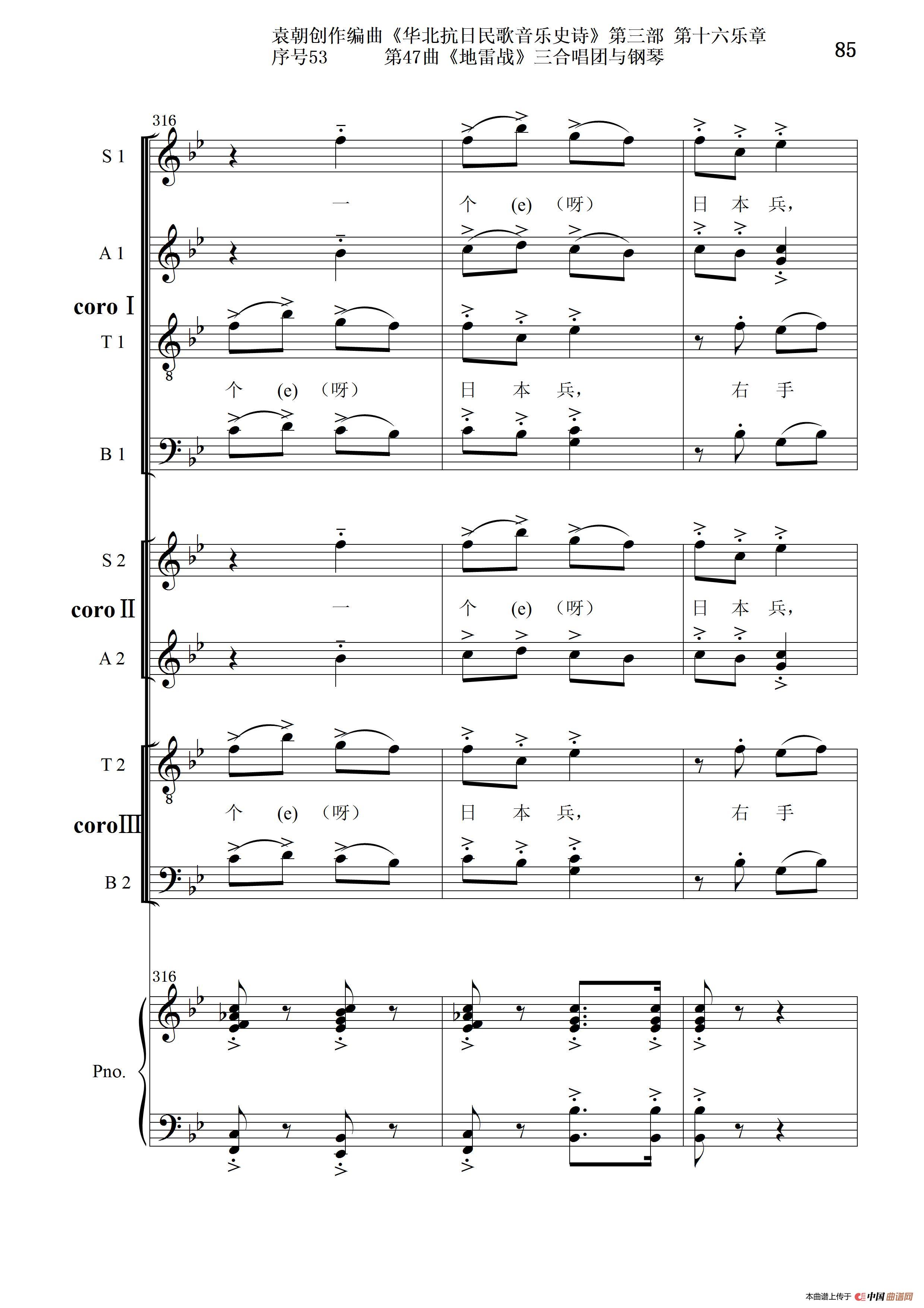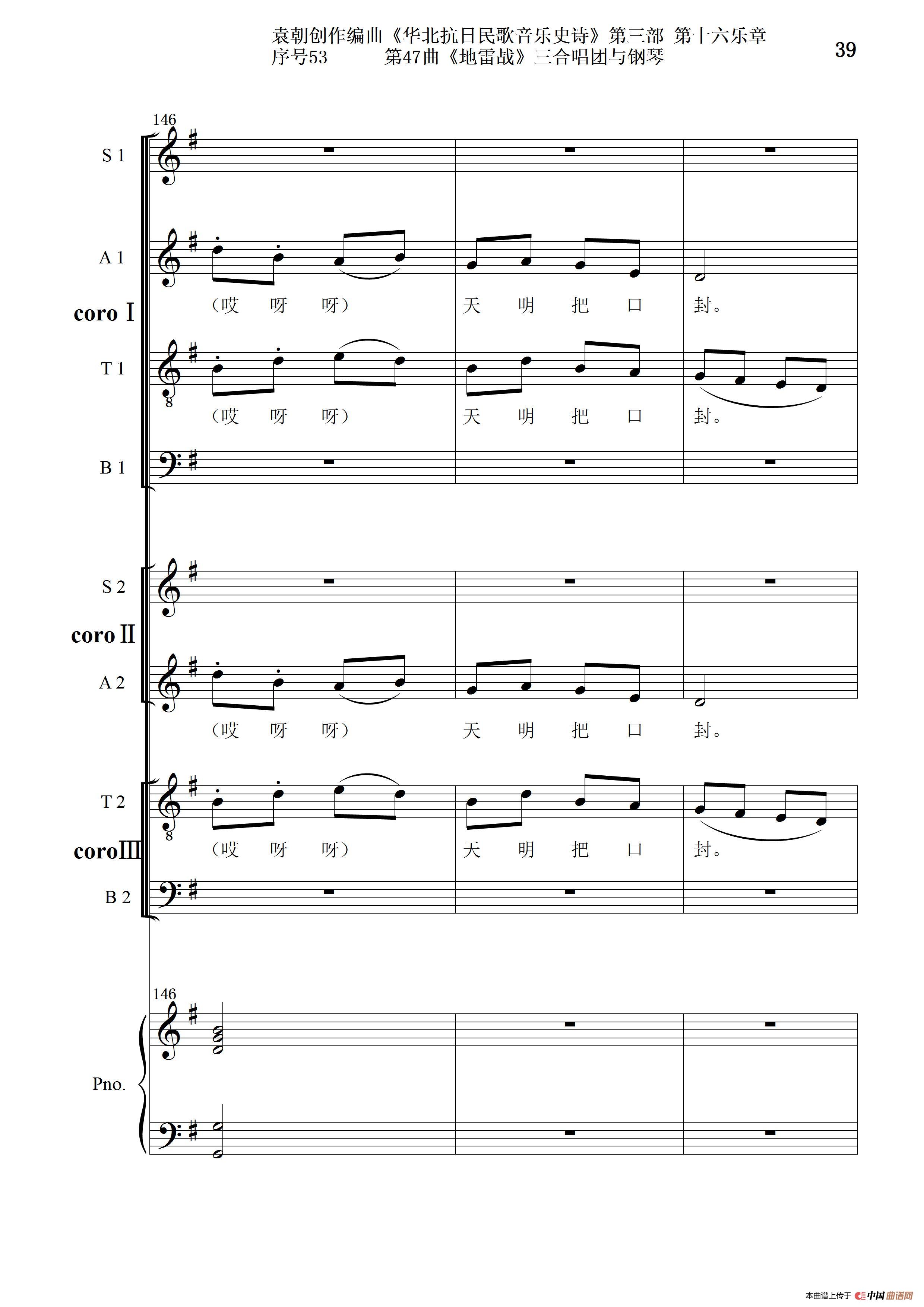 序号53第47曲《地雷战》三合唱团与钢琴