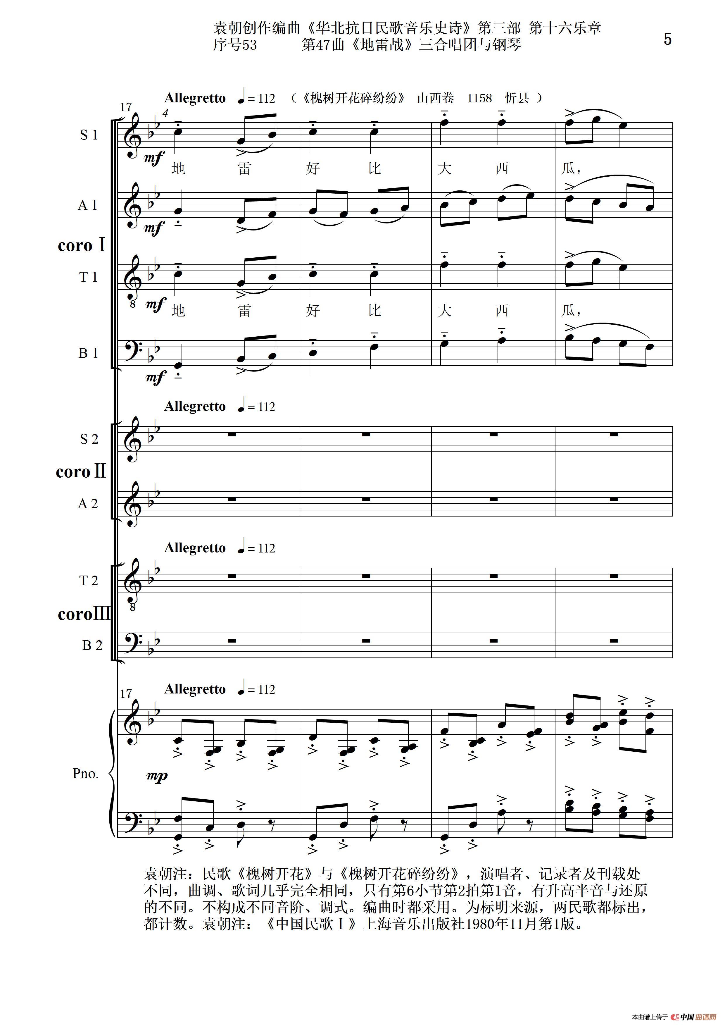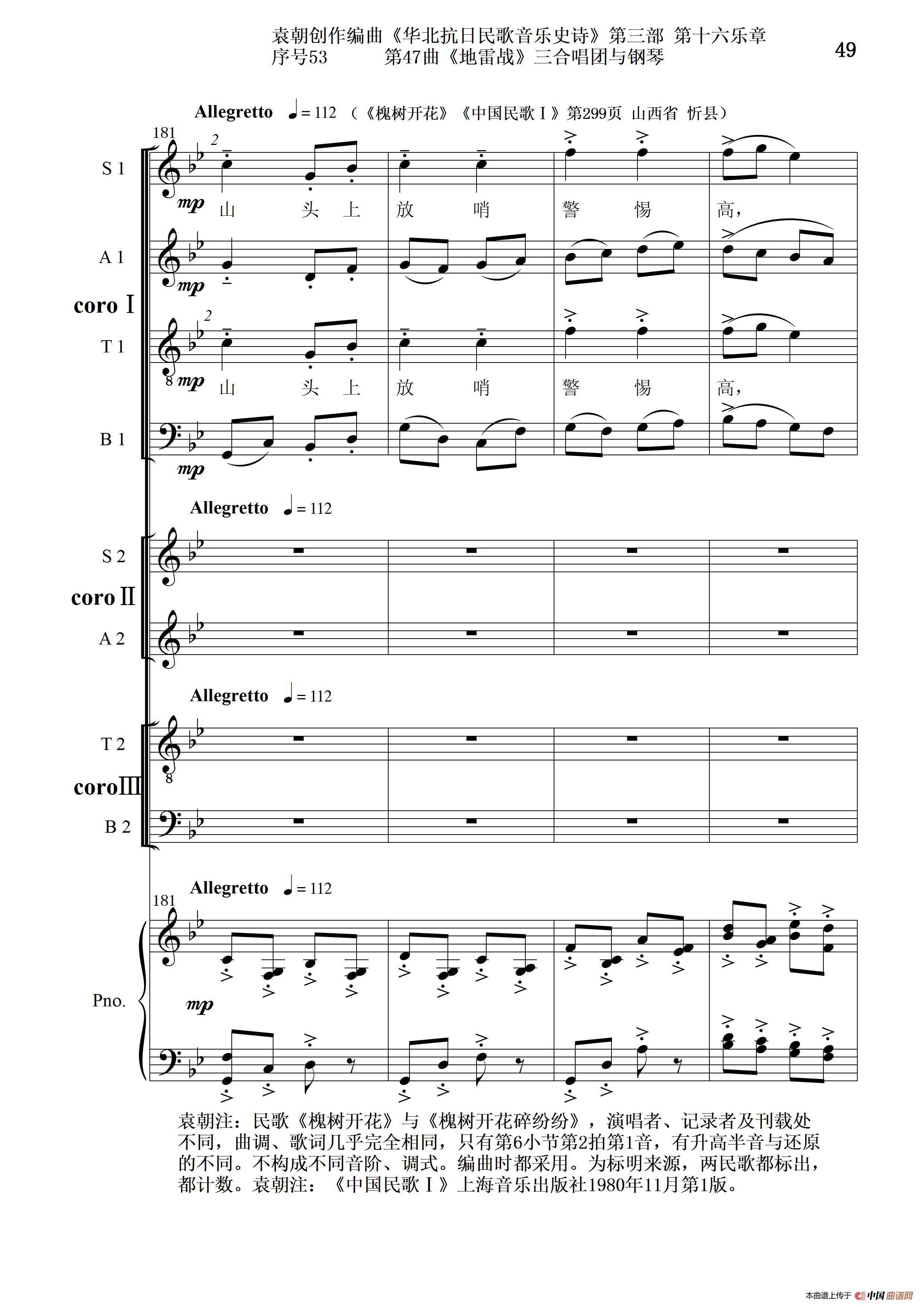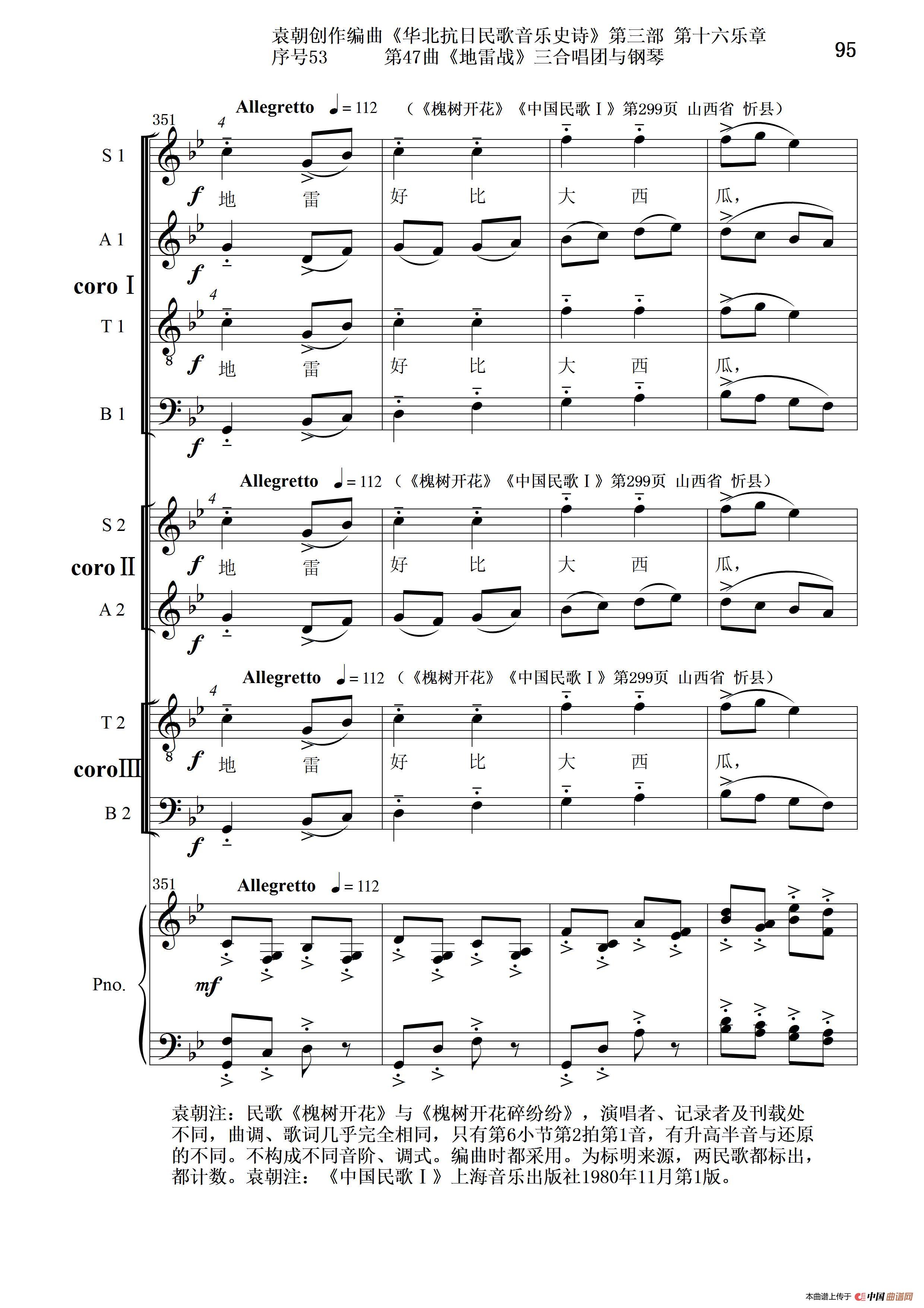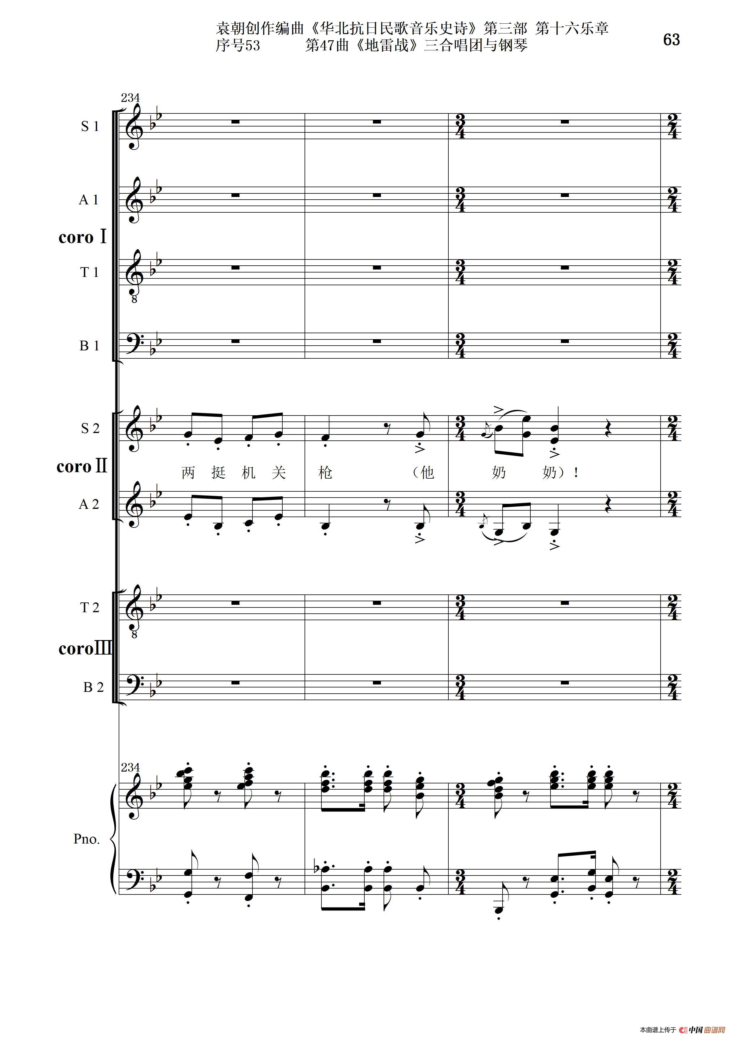 序号53第47曲《地雷战》三合唱团与钢琴