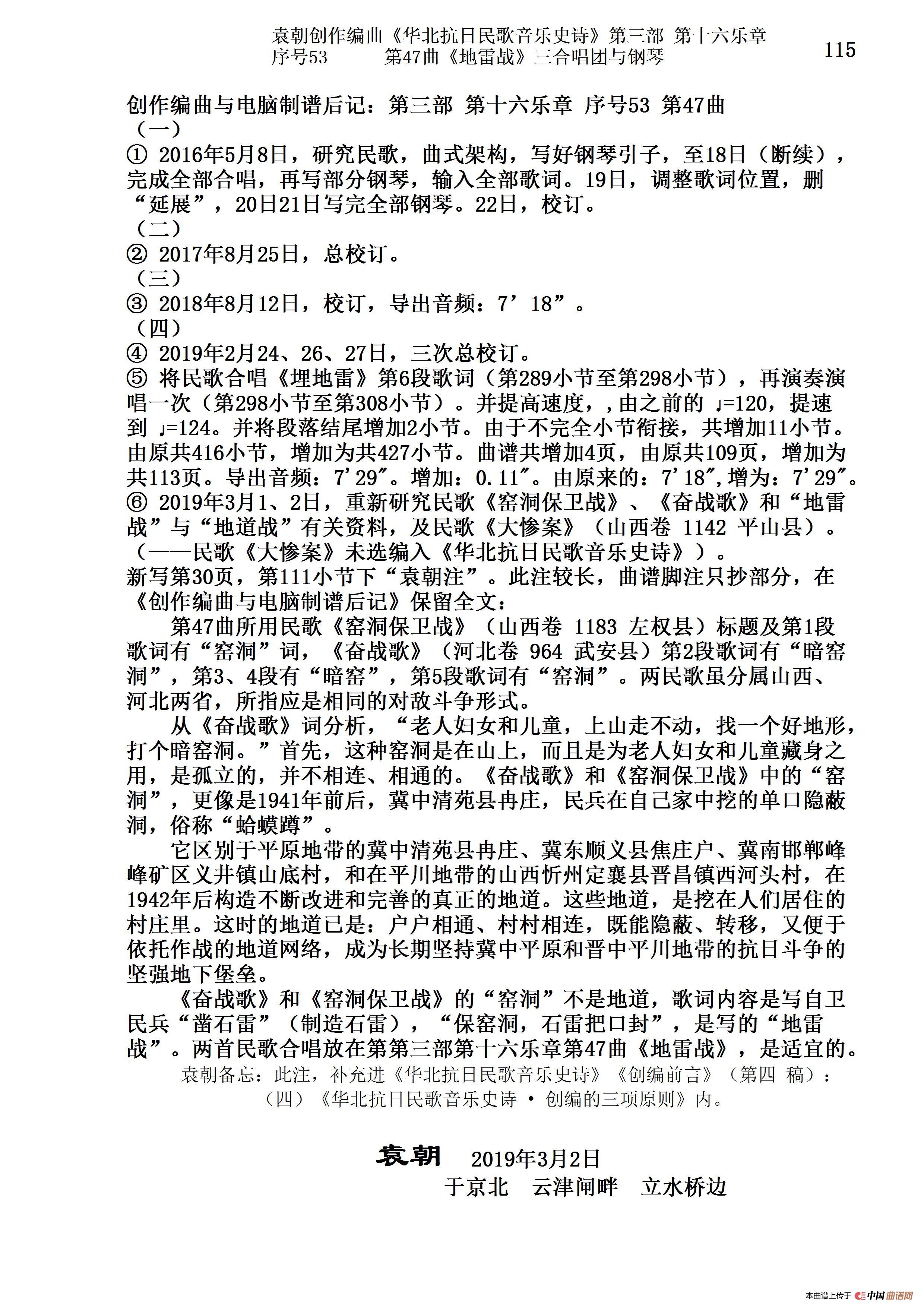 关于《序号53第47曲《地雷战》三合唱团与钢琴》曲谱的评论