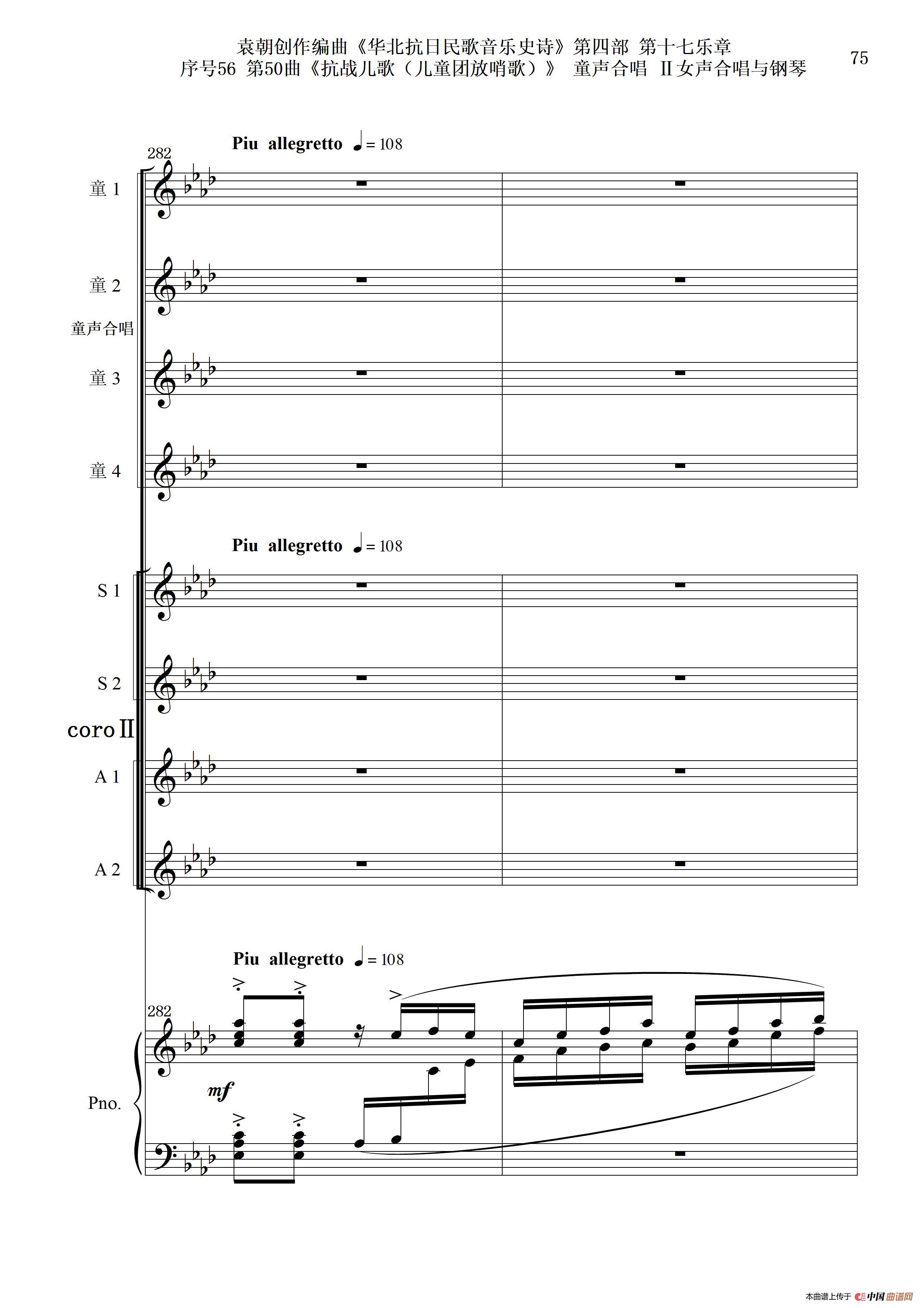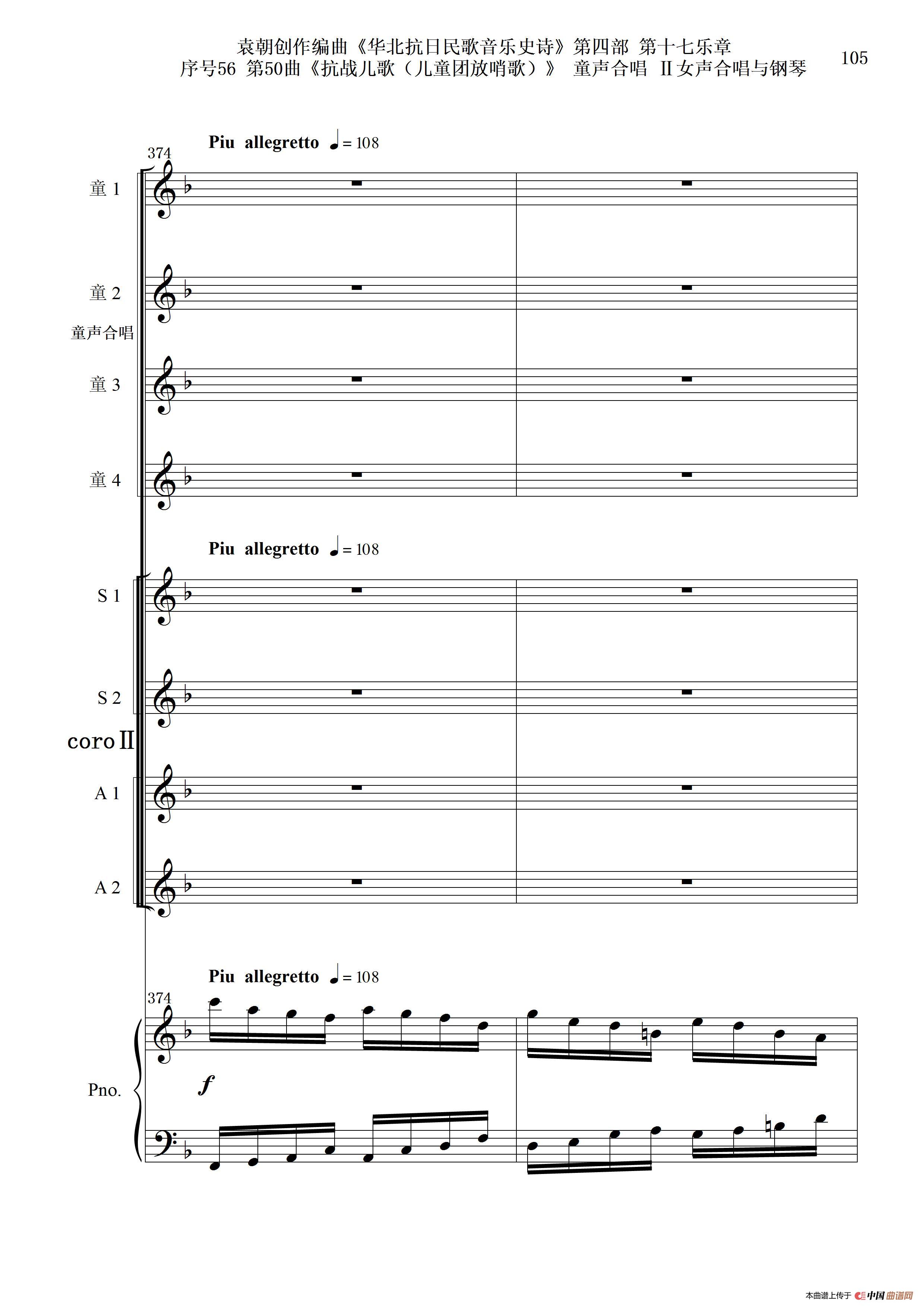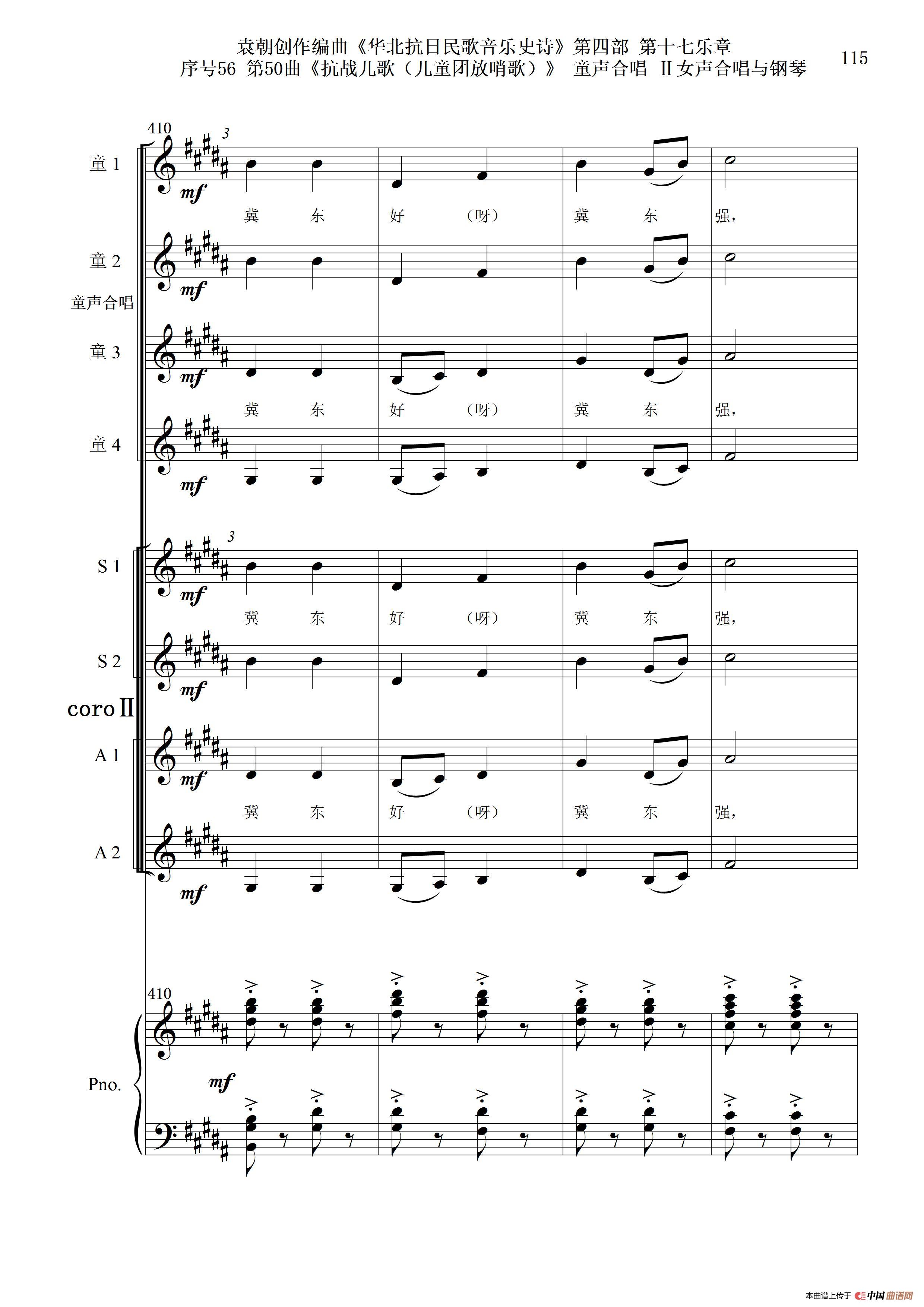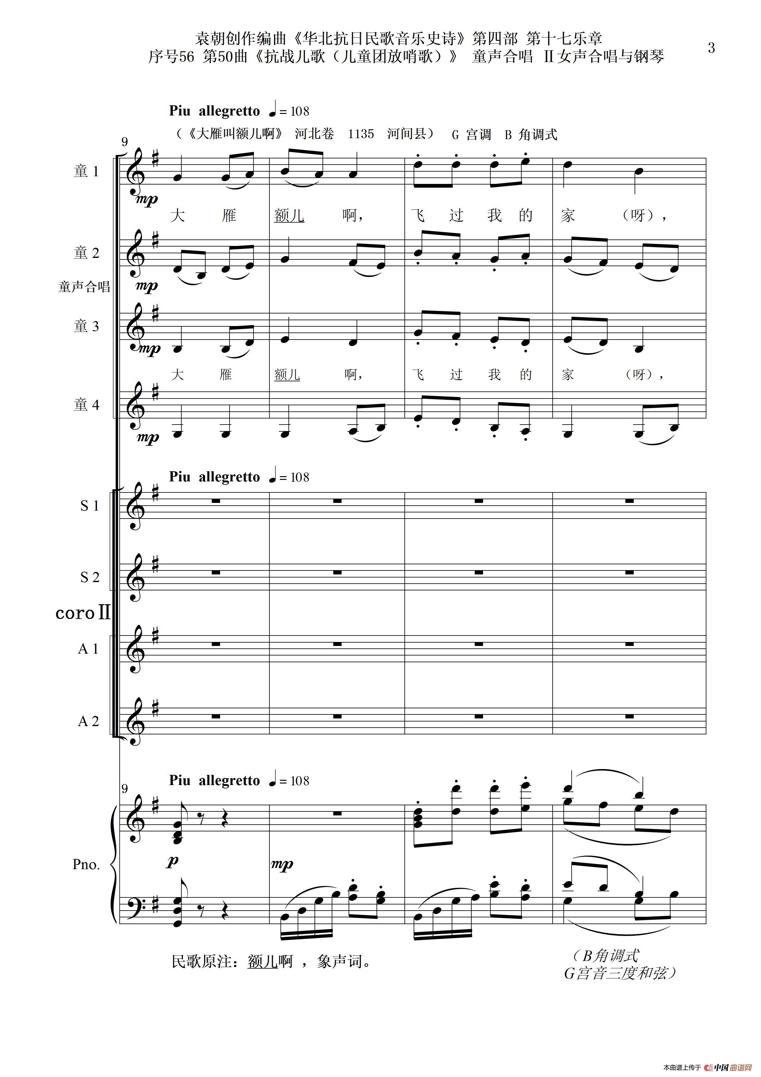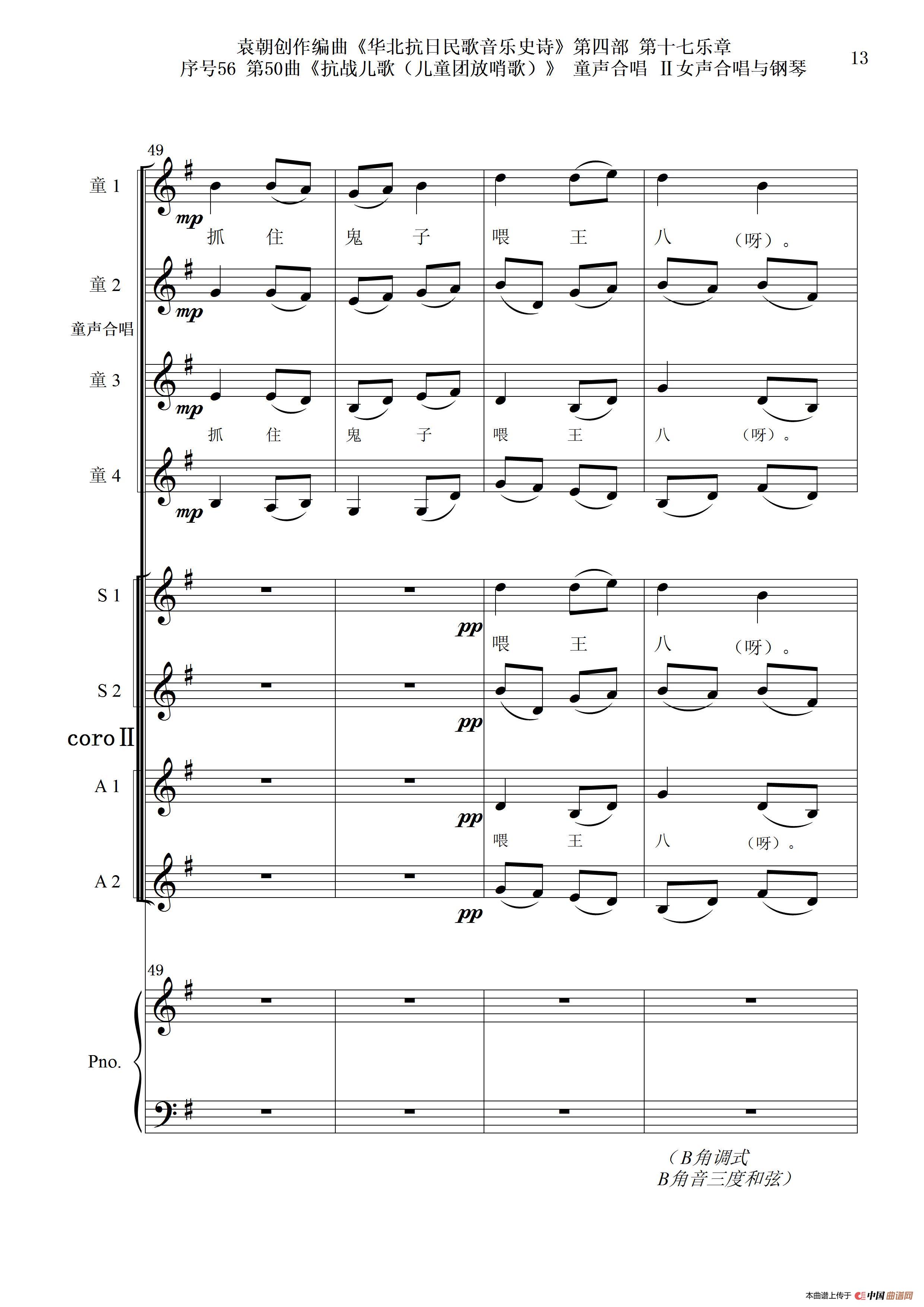 序号56第50曲《抗日儿歌(儿童团放哨歌)》童声合唱(或Ⅰ女声合唱代替)Ⅱ女声合唱与钢琴