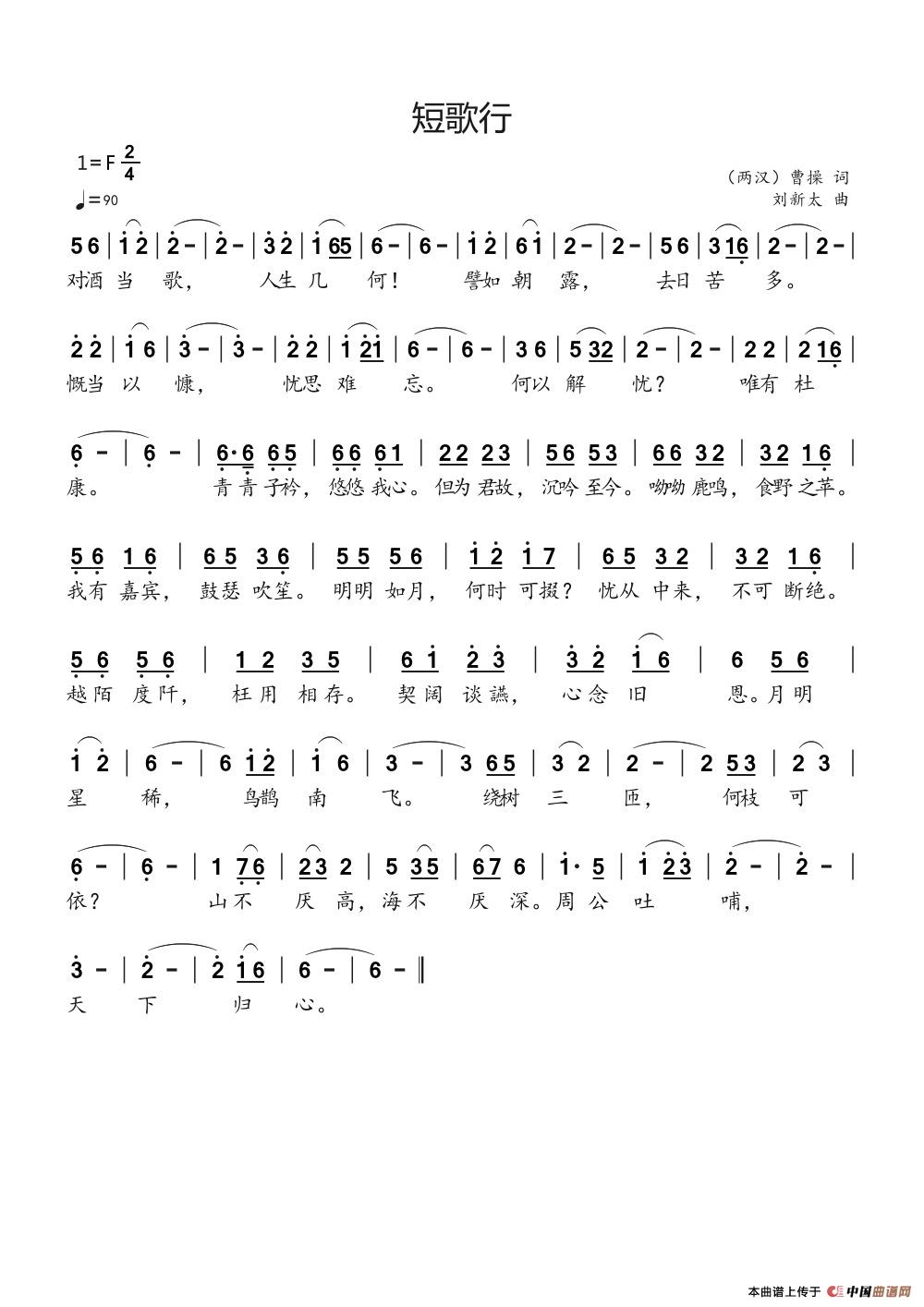 作词:(两汉)曹操   作曲:刘新太   来源:原创   上传:刘新太   日期:2021-09-23   浏览次数: