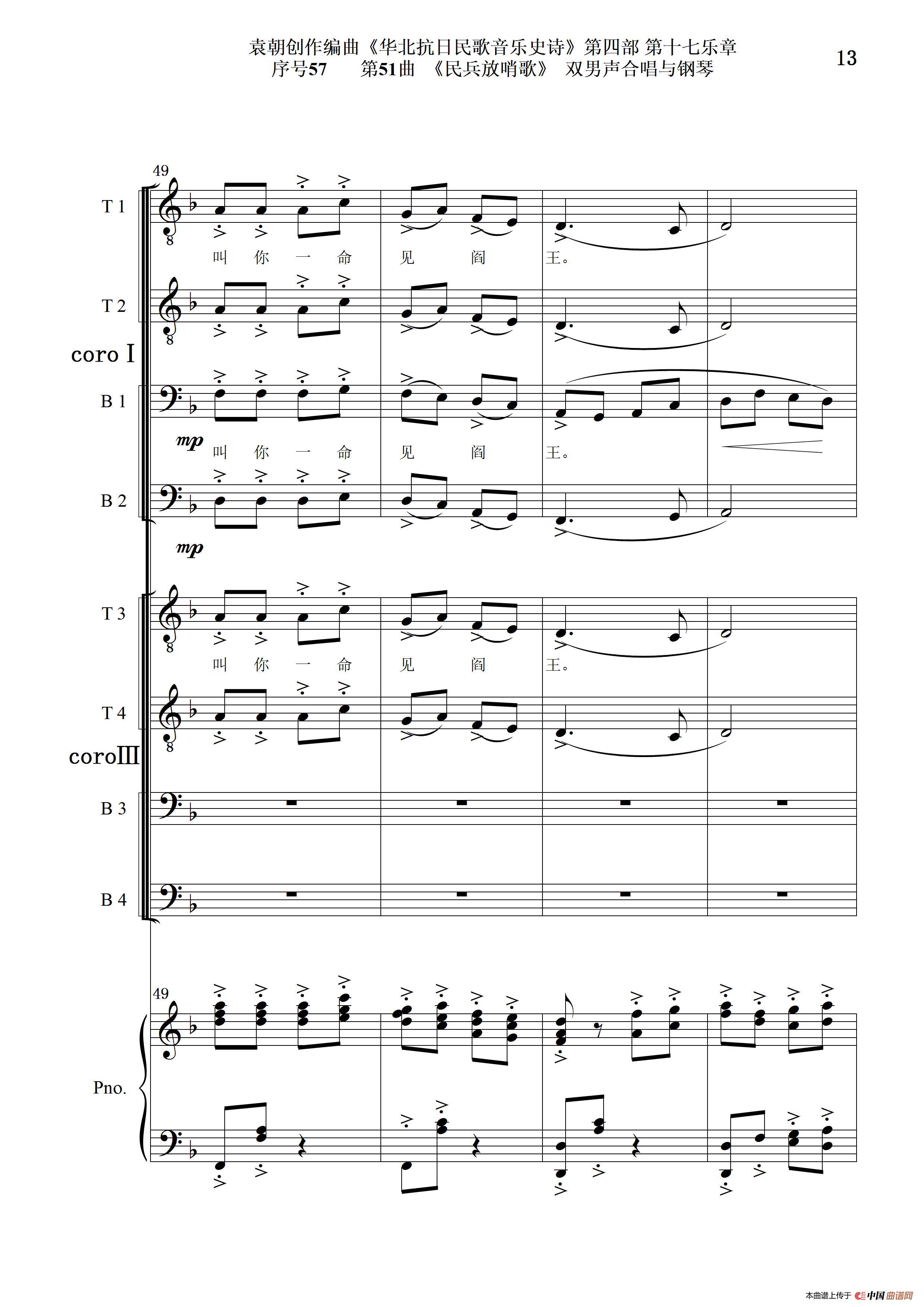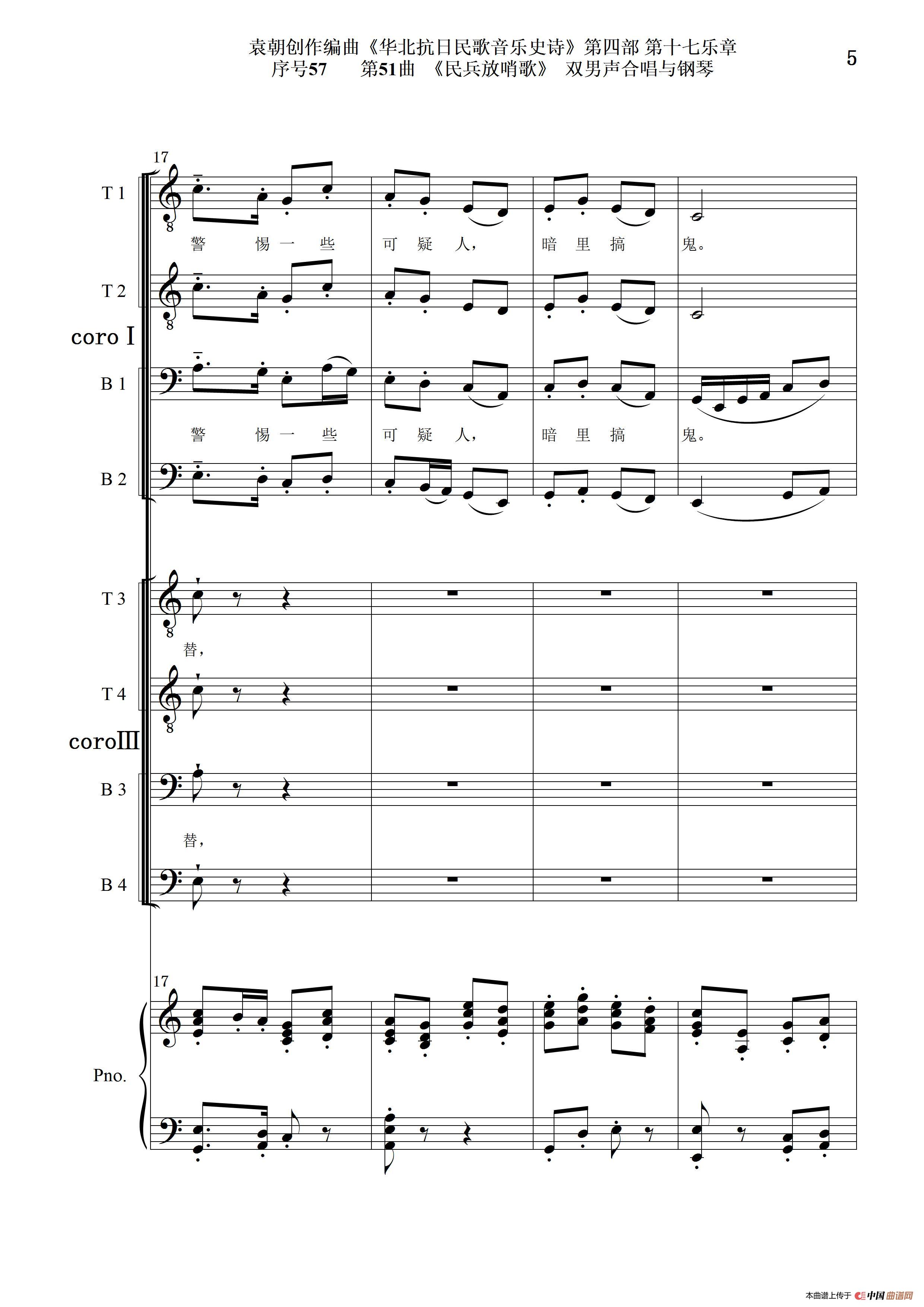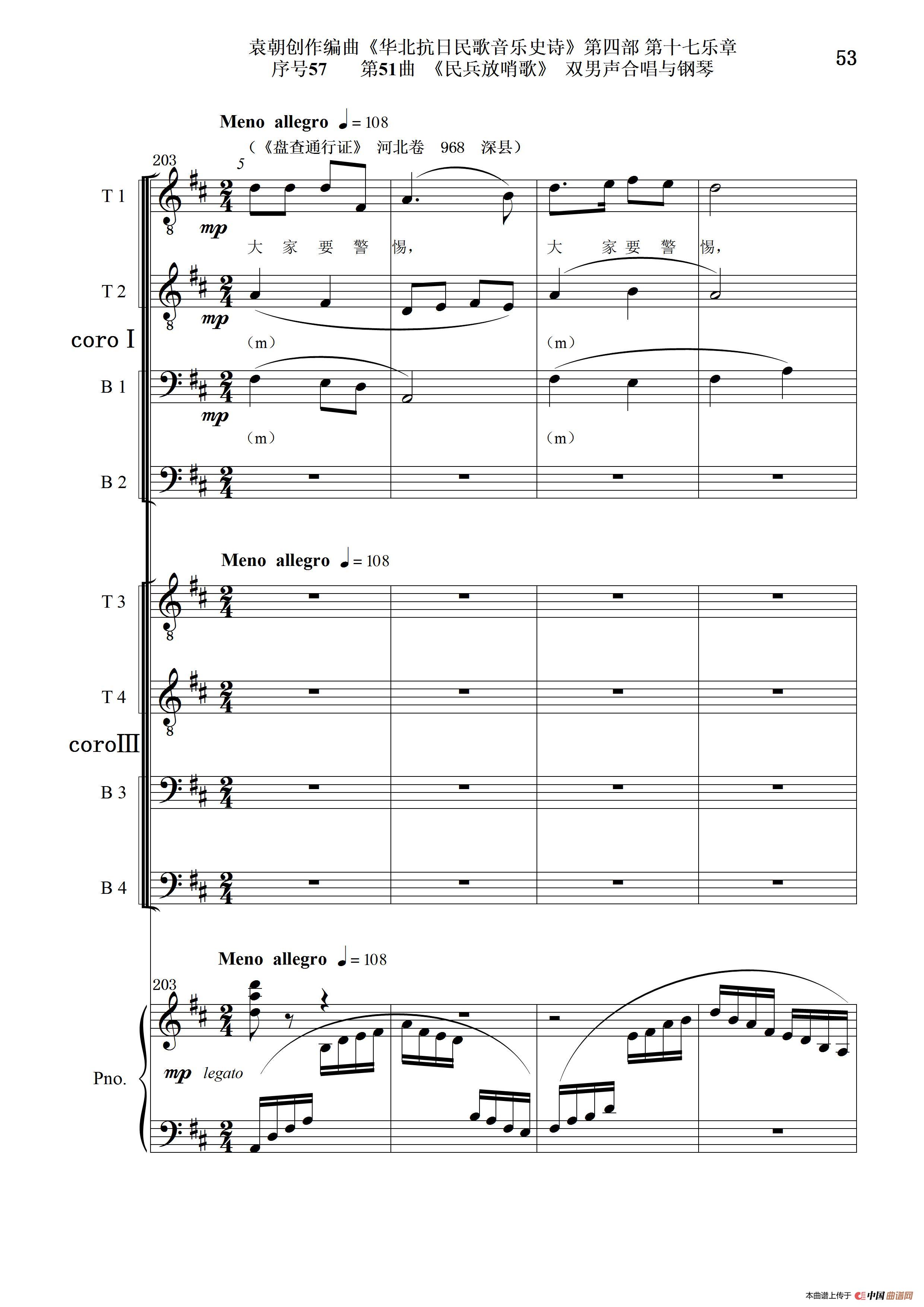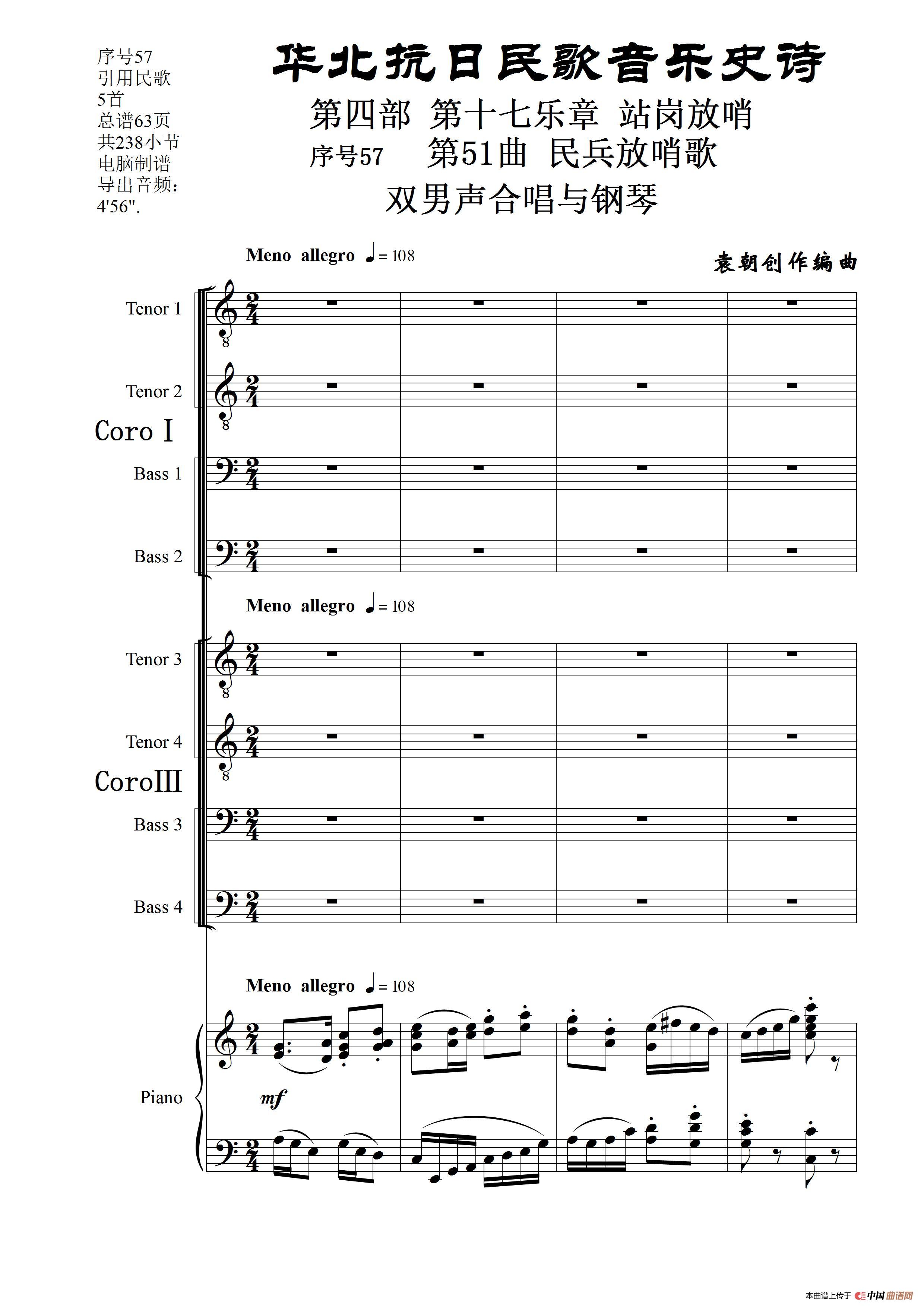 序号57第51曲《民兵放哨歌》双男声合唱与钢琴