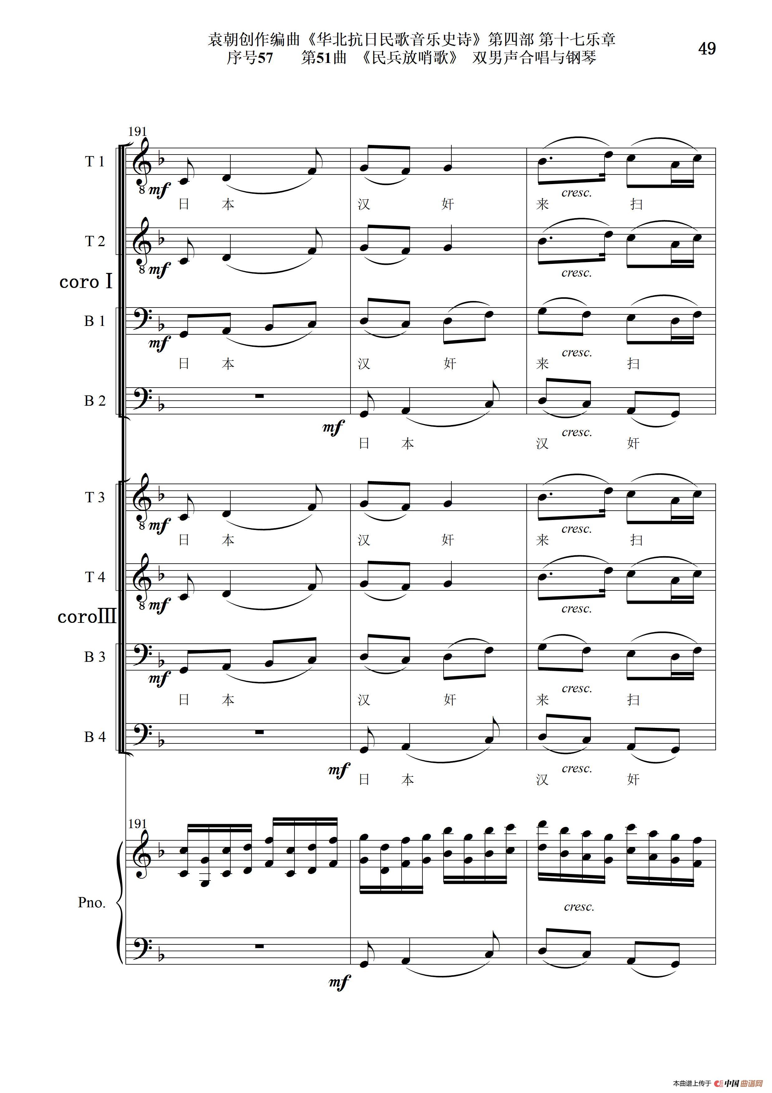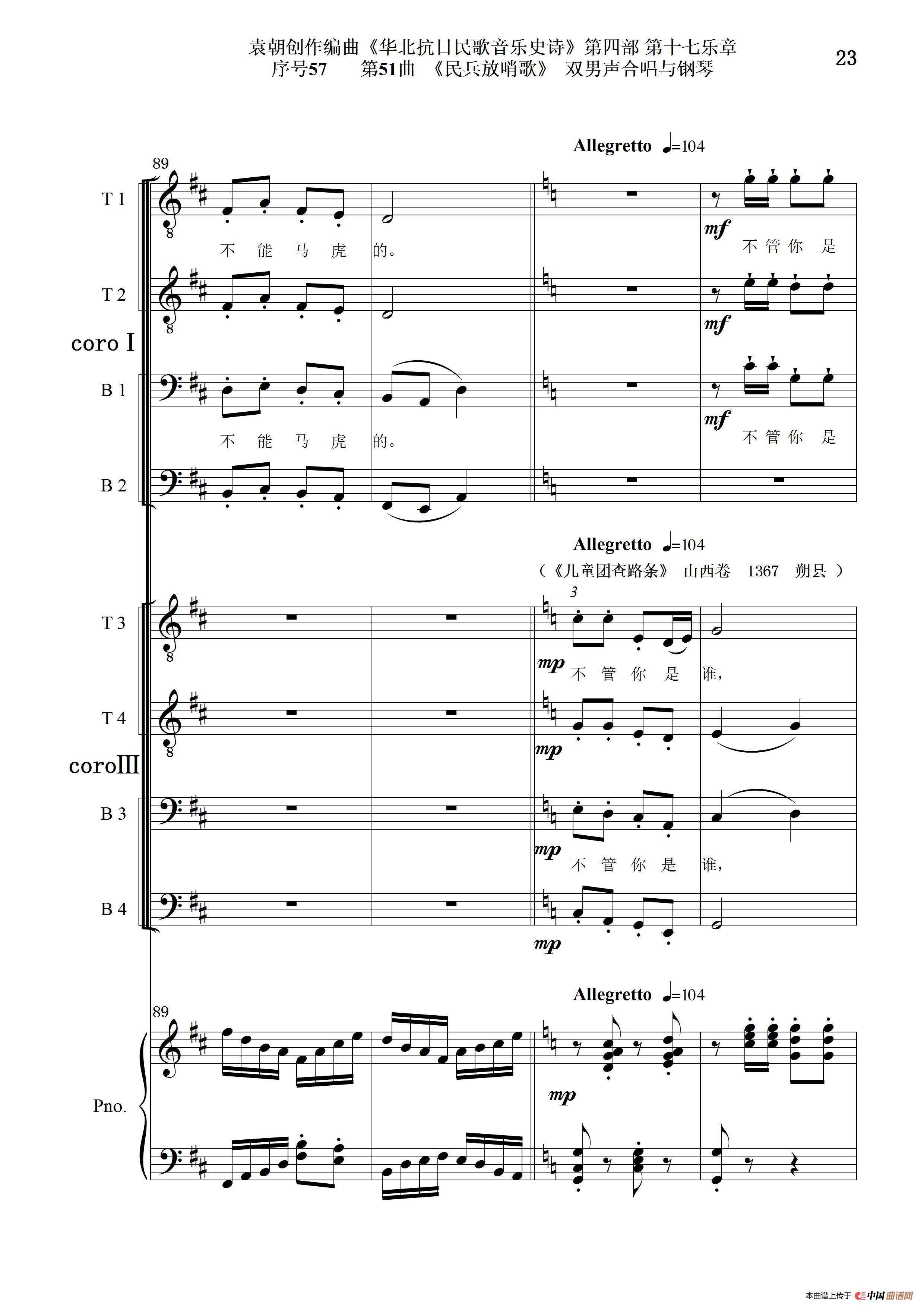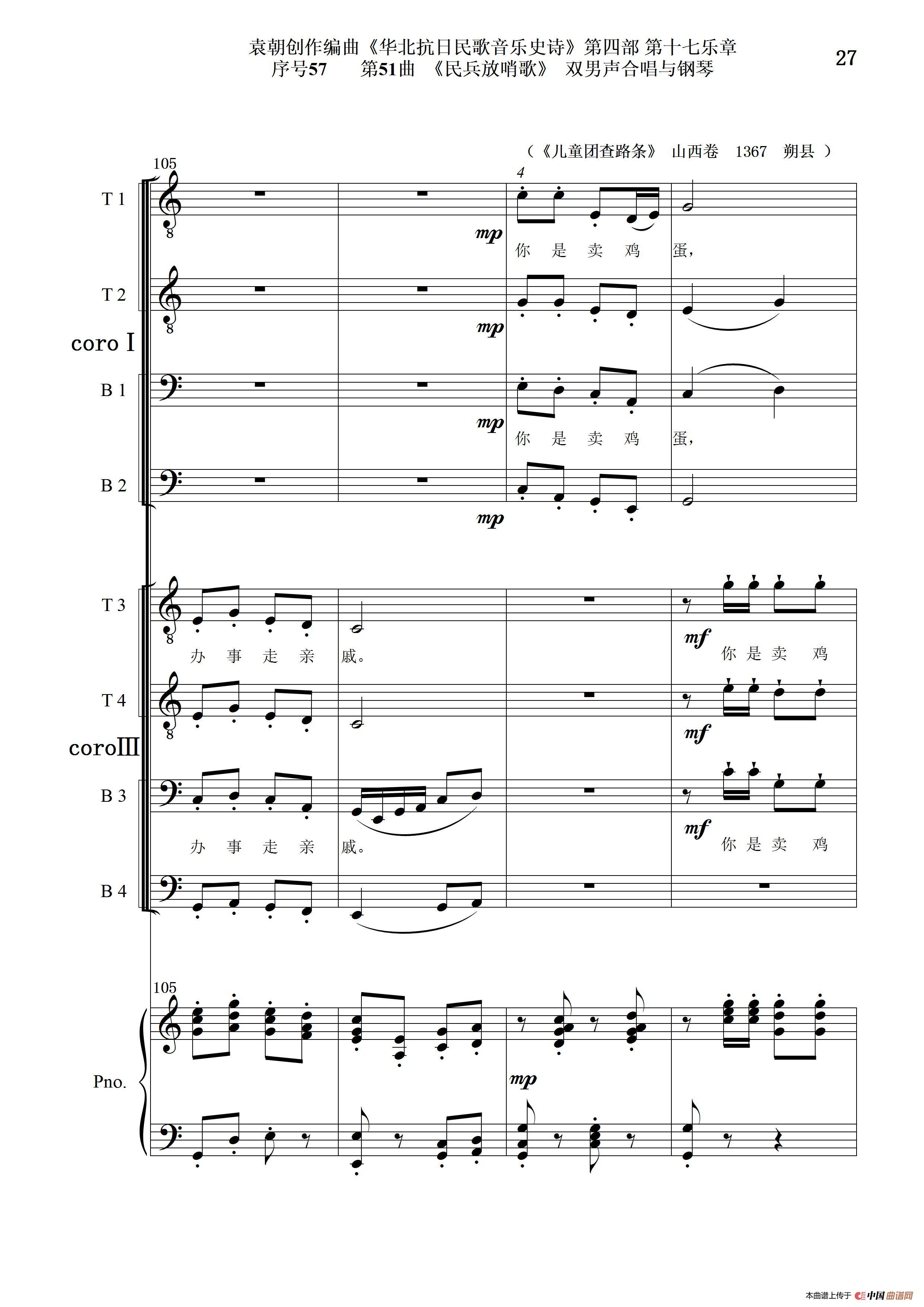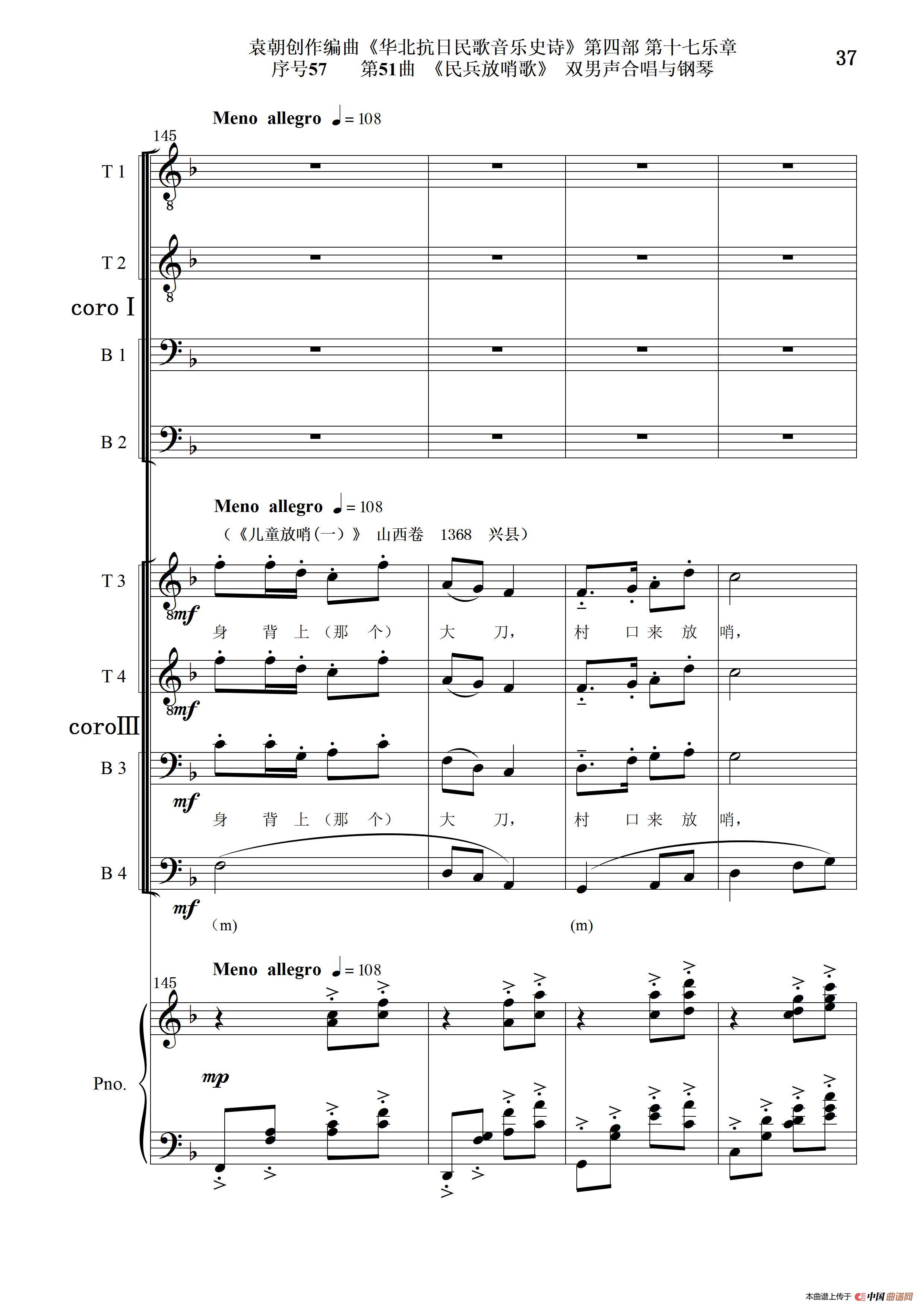 序号57第51曲《民兵放哨歌》双男声合唱与钢琴
