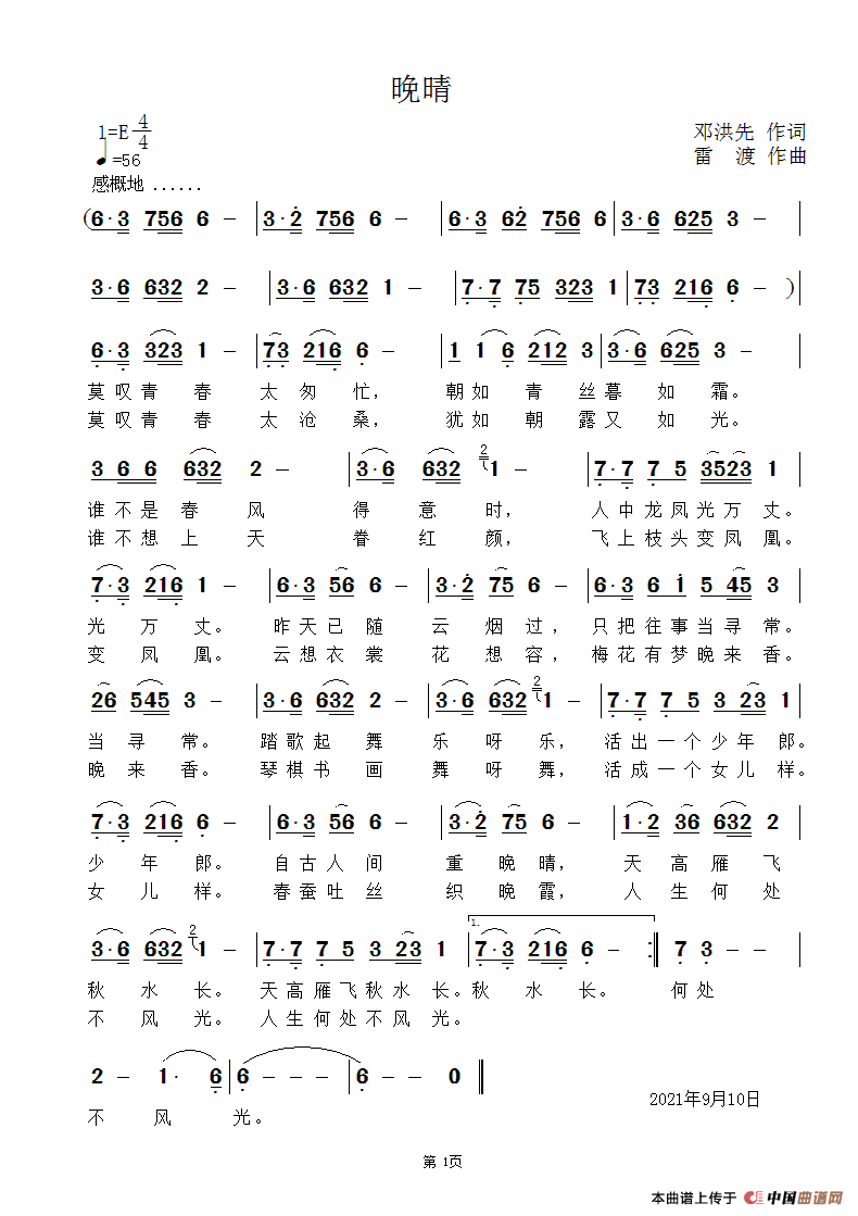 邓洪先词,雷渡曲,王莹演唱。