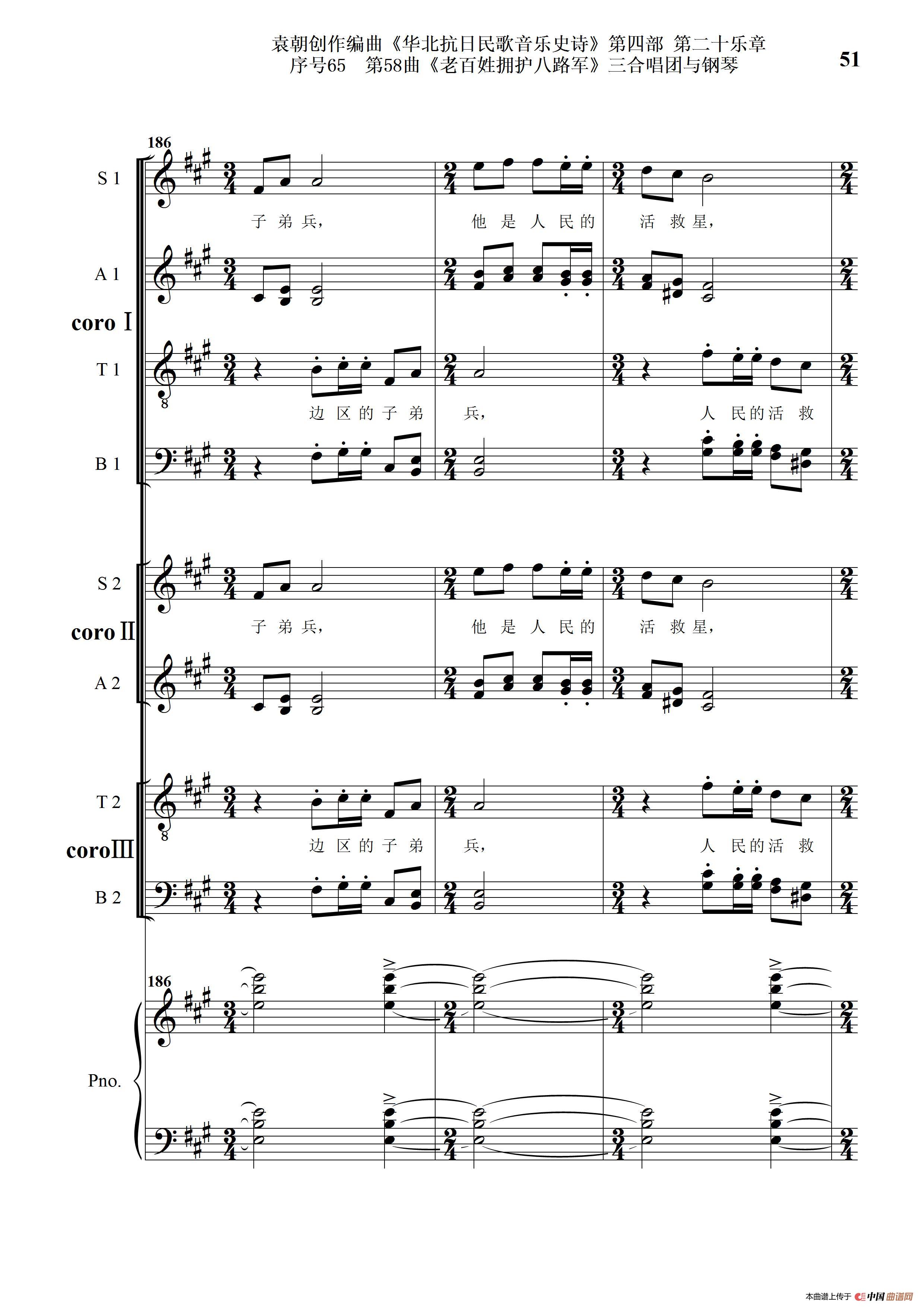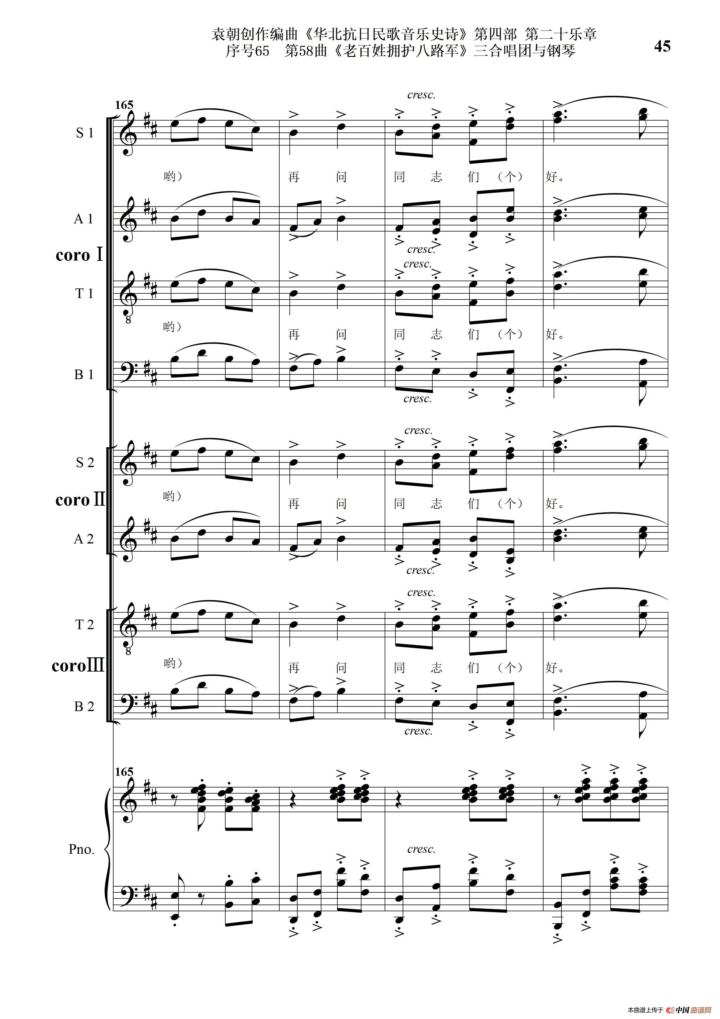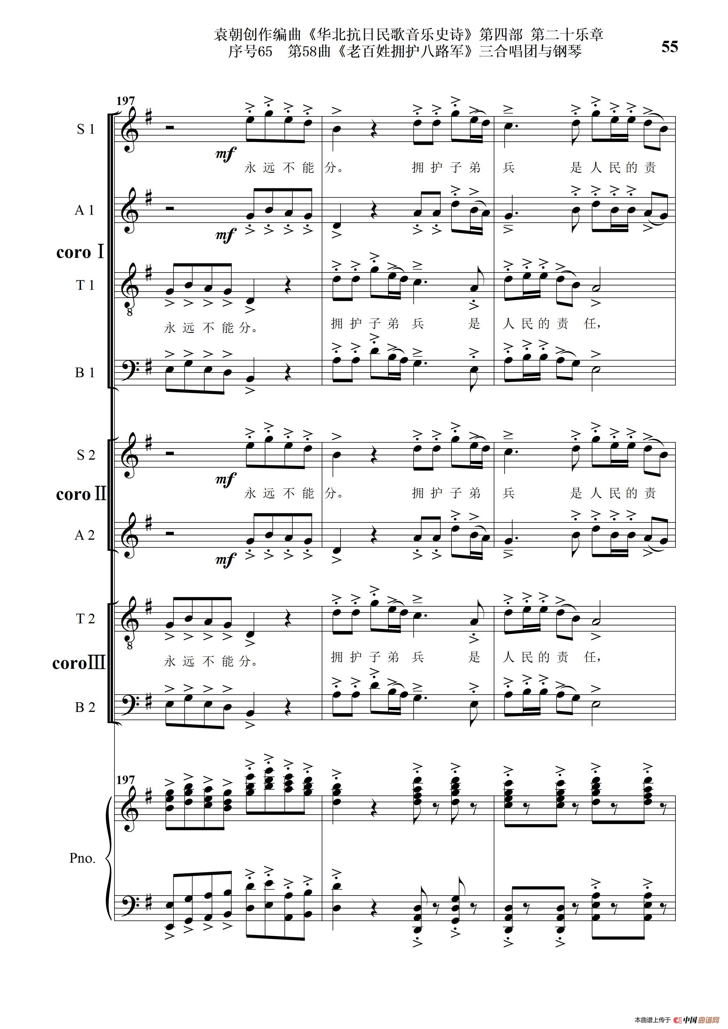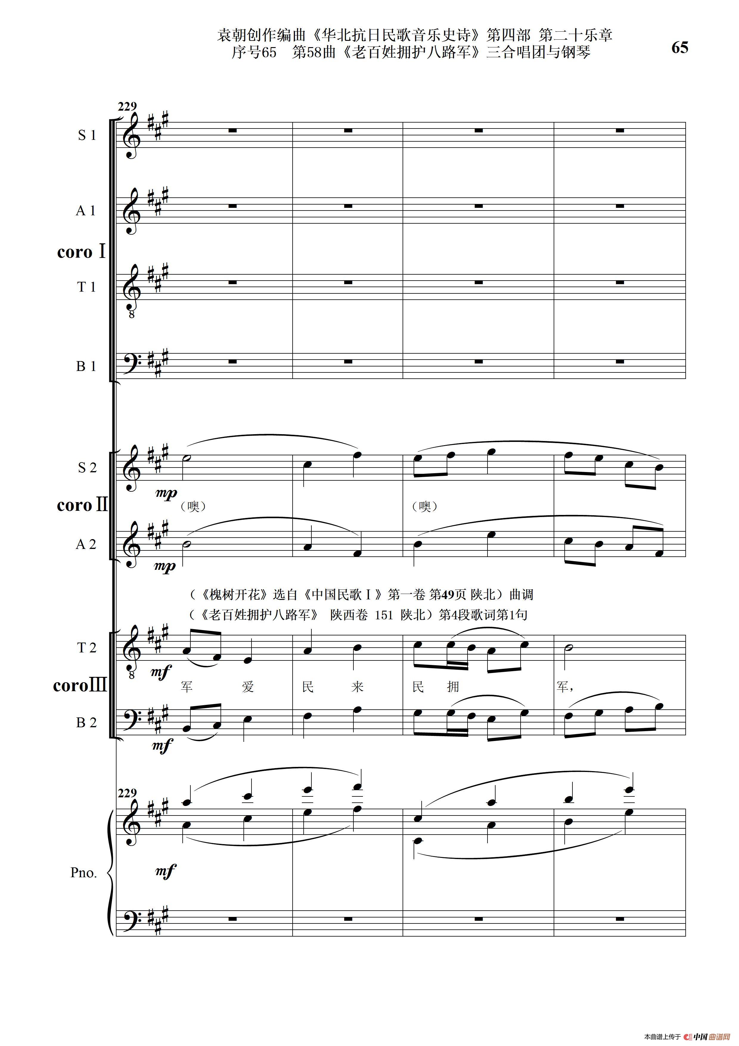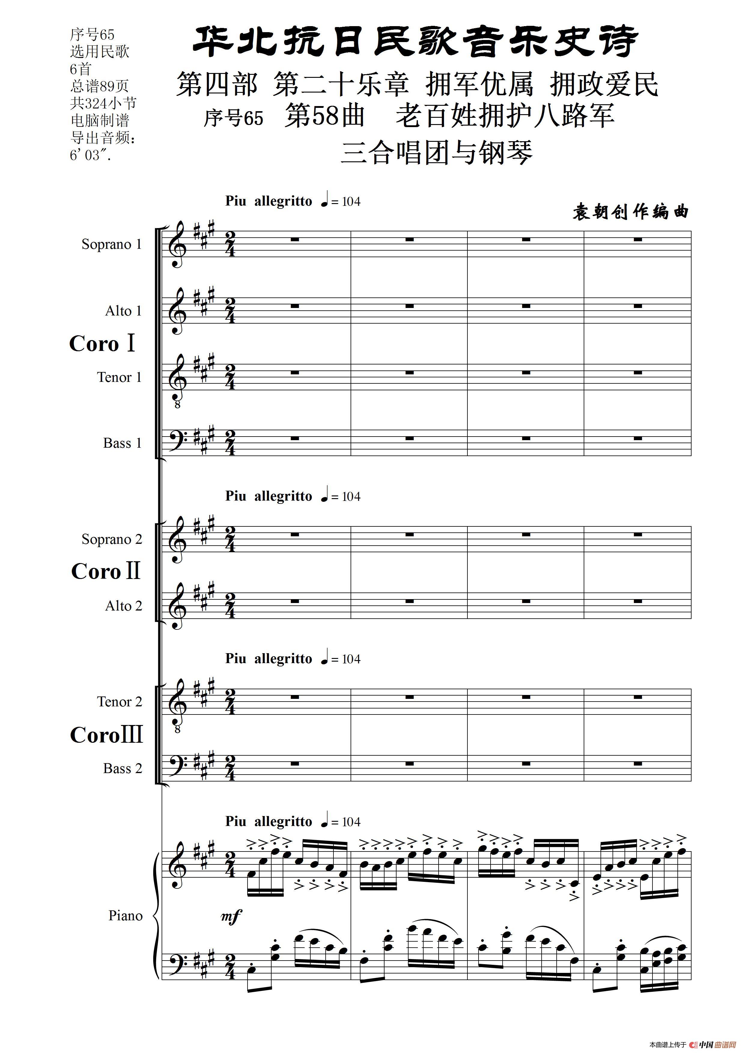 序号65第58曲《老百姓拥护八路军》三合唱团与钢琴