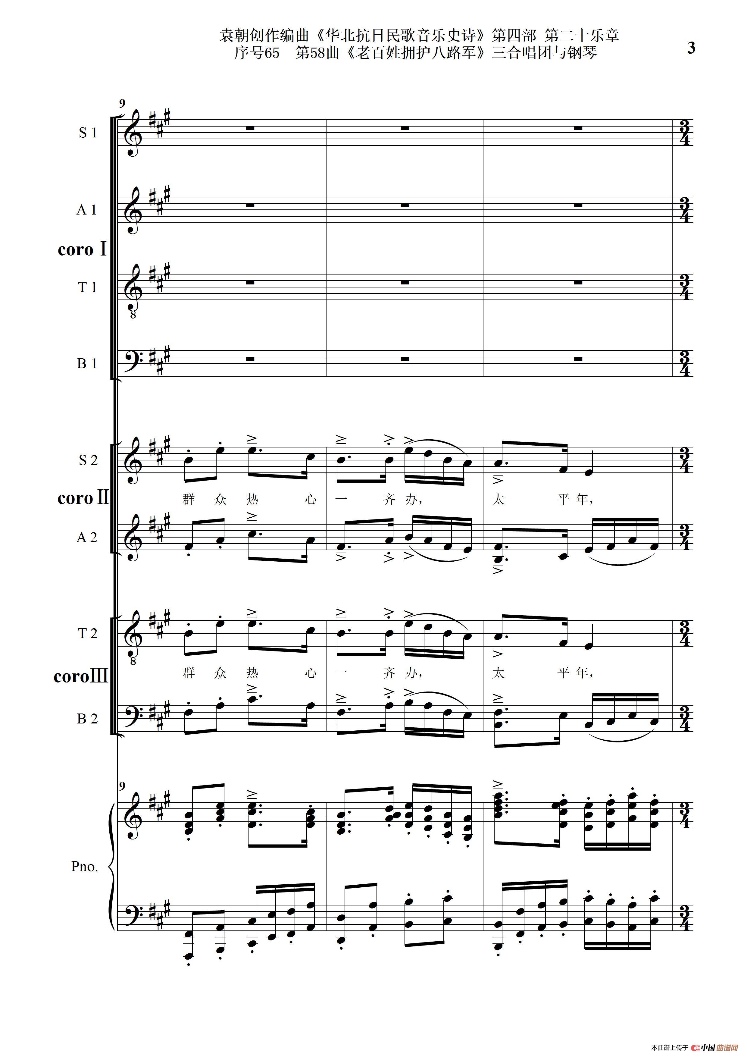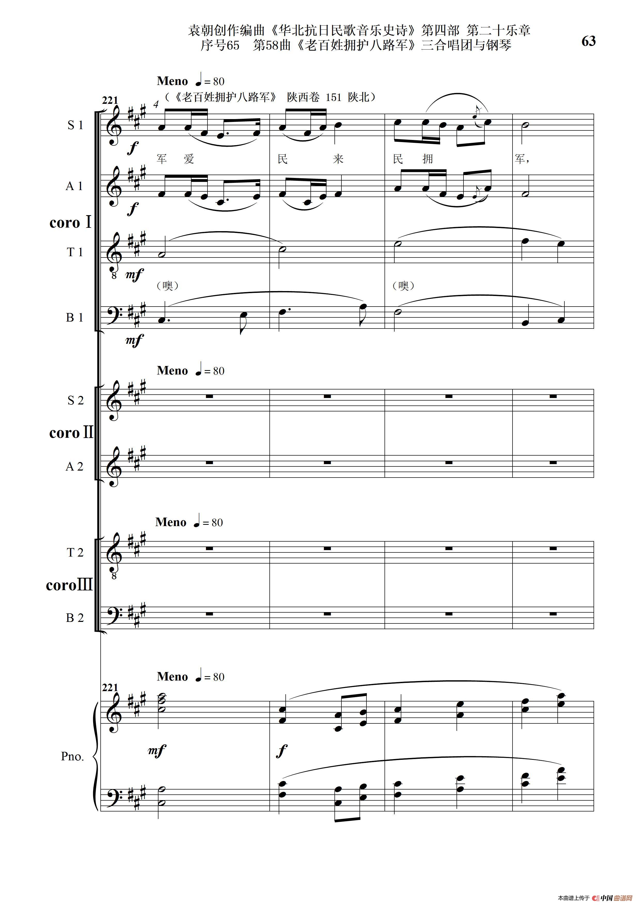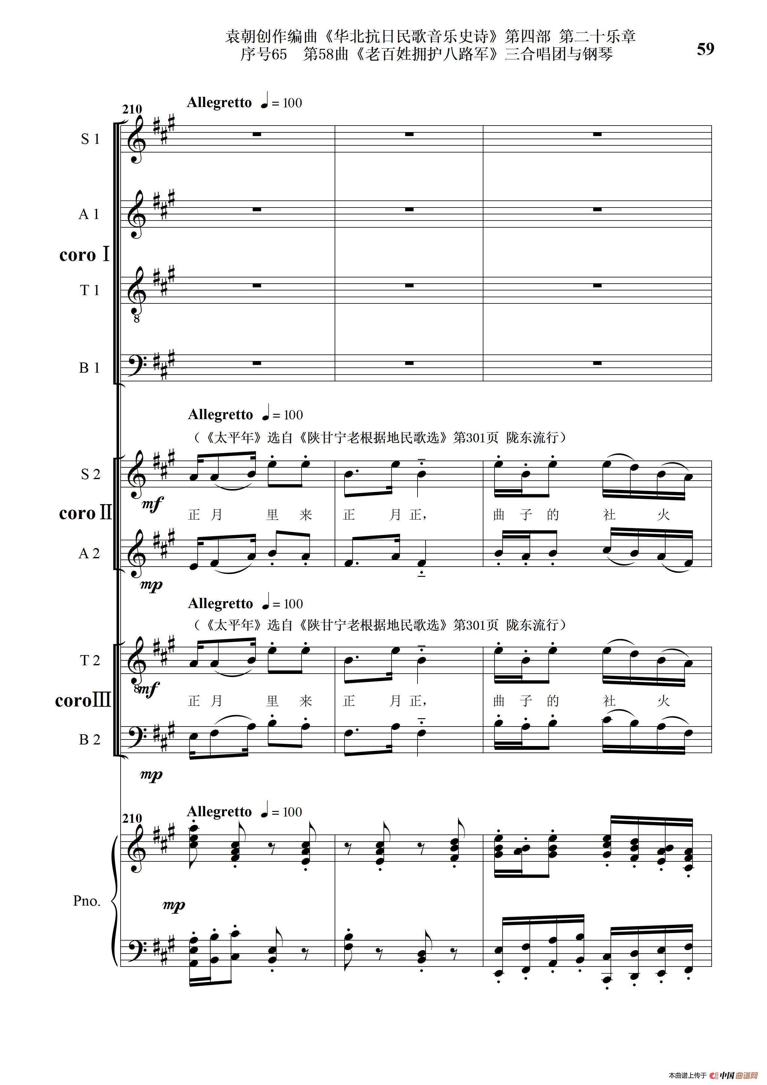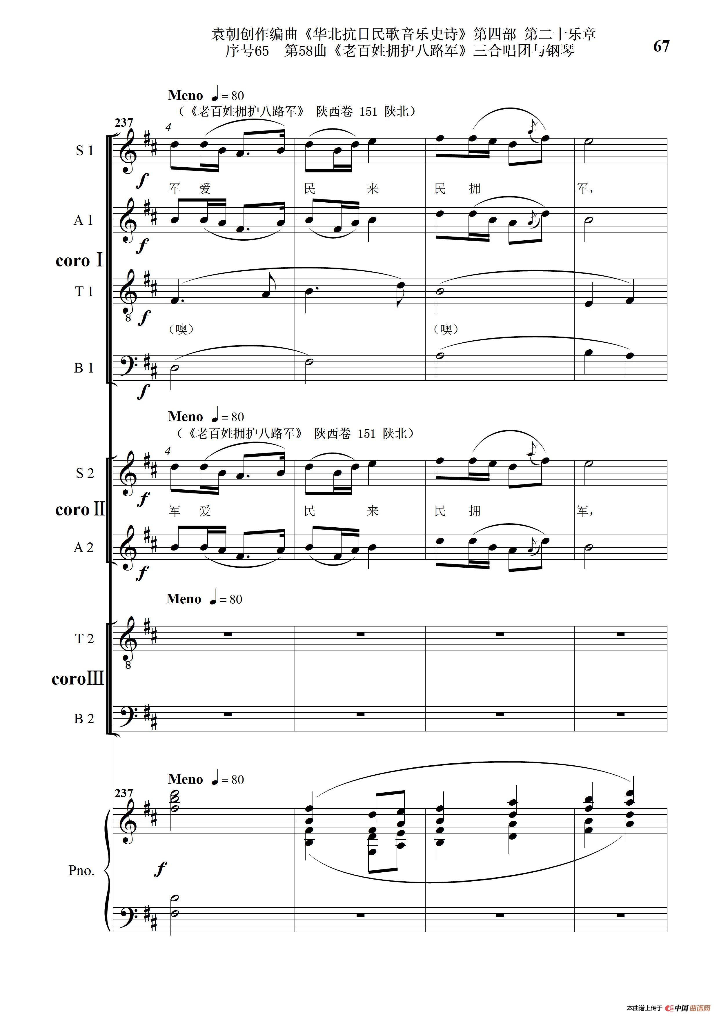 序号65第58曲《老百姓拥护八路军》三合唱团与钢琴
