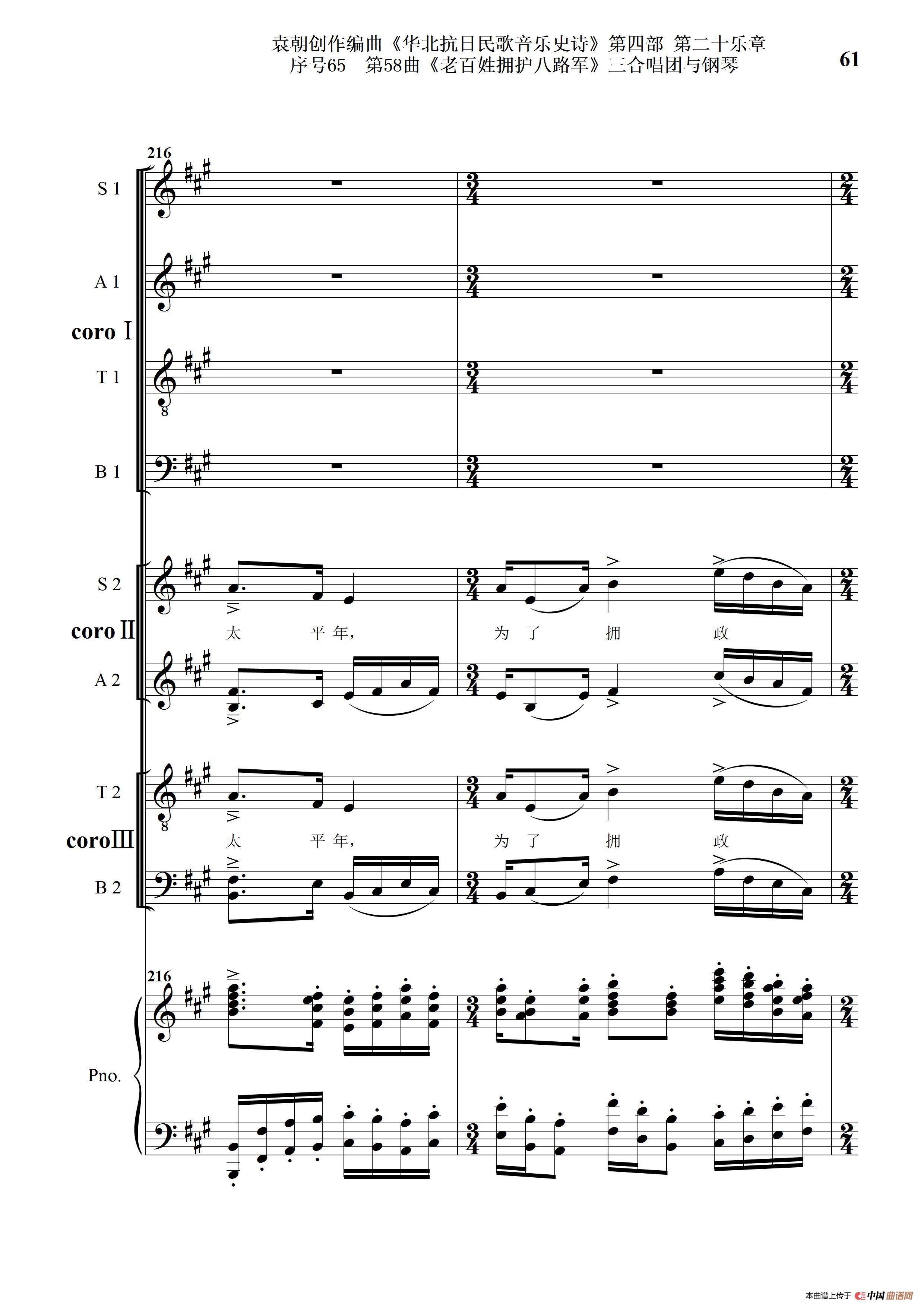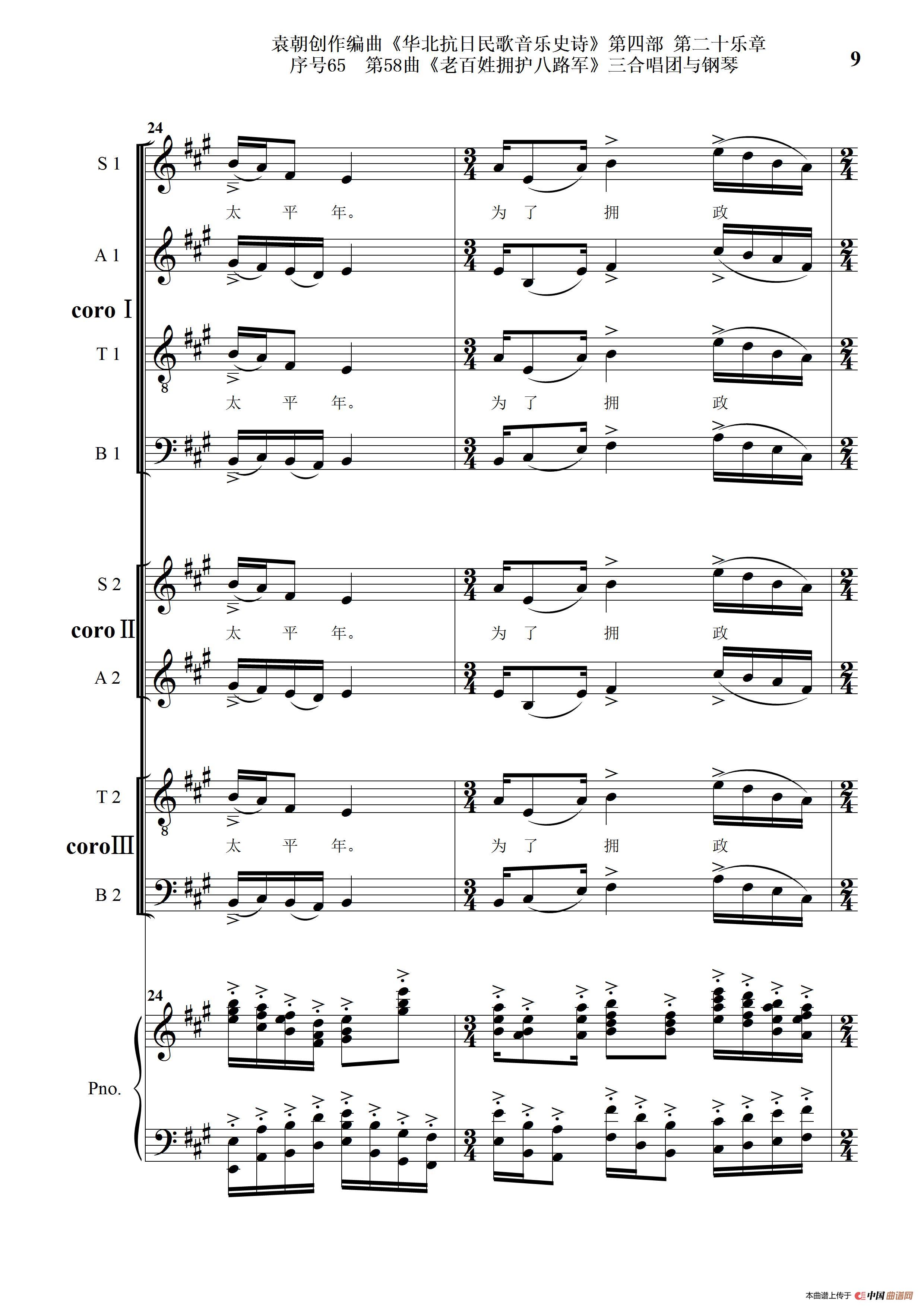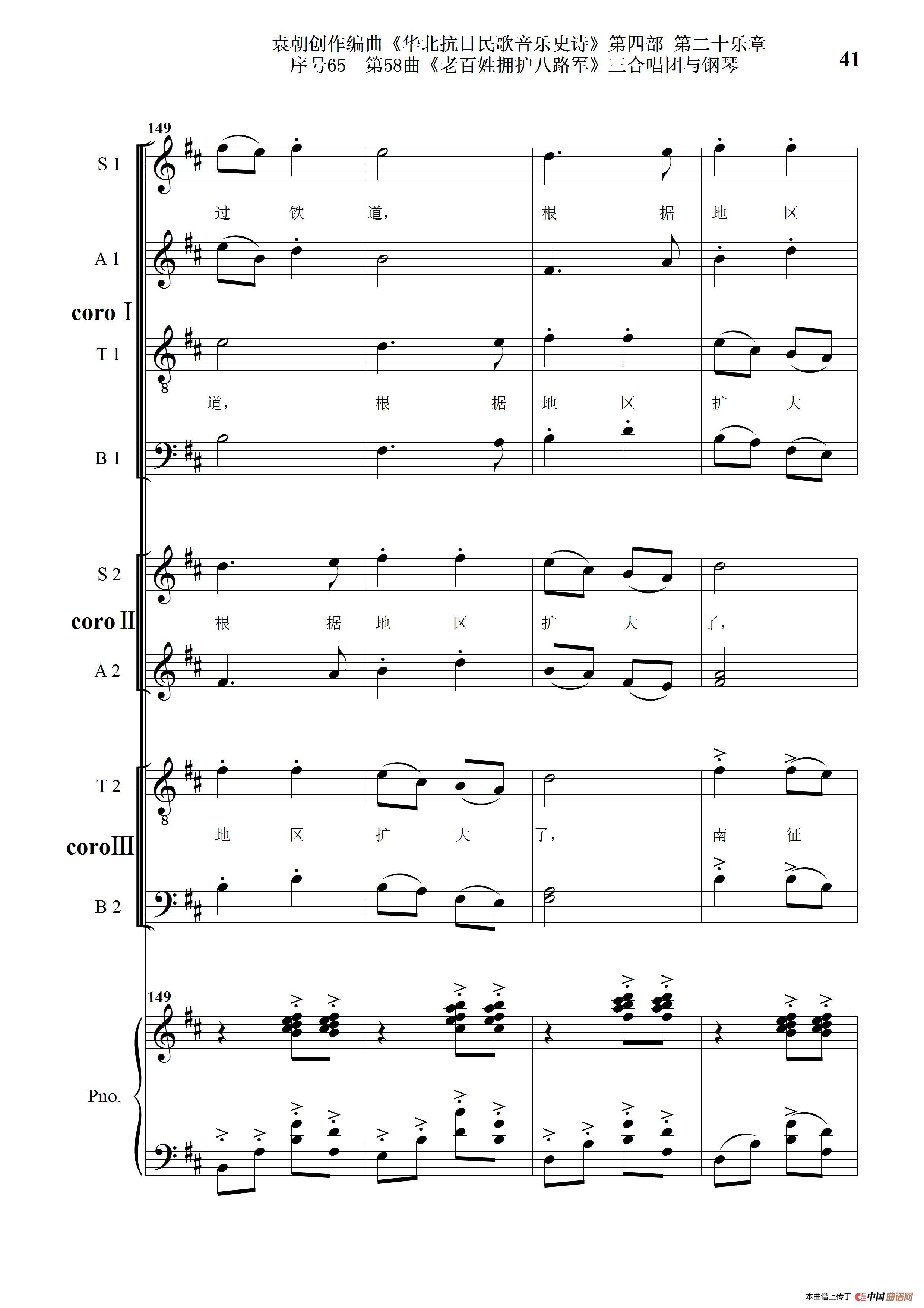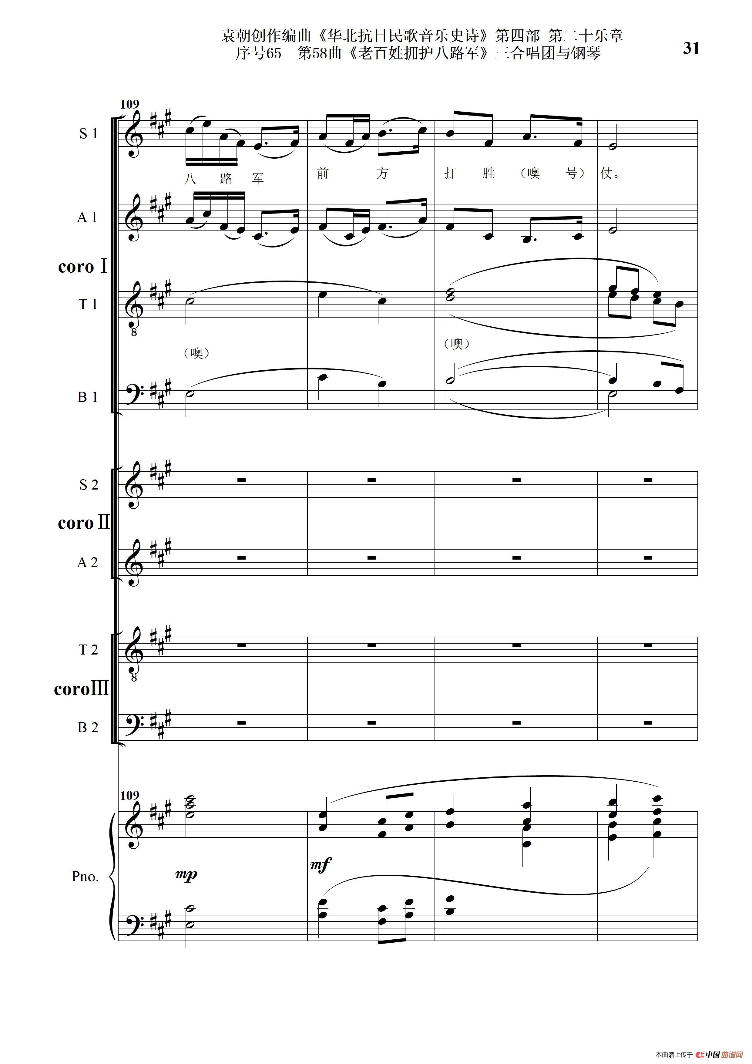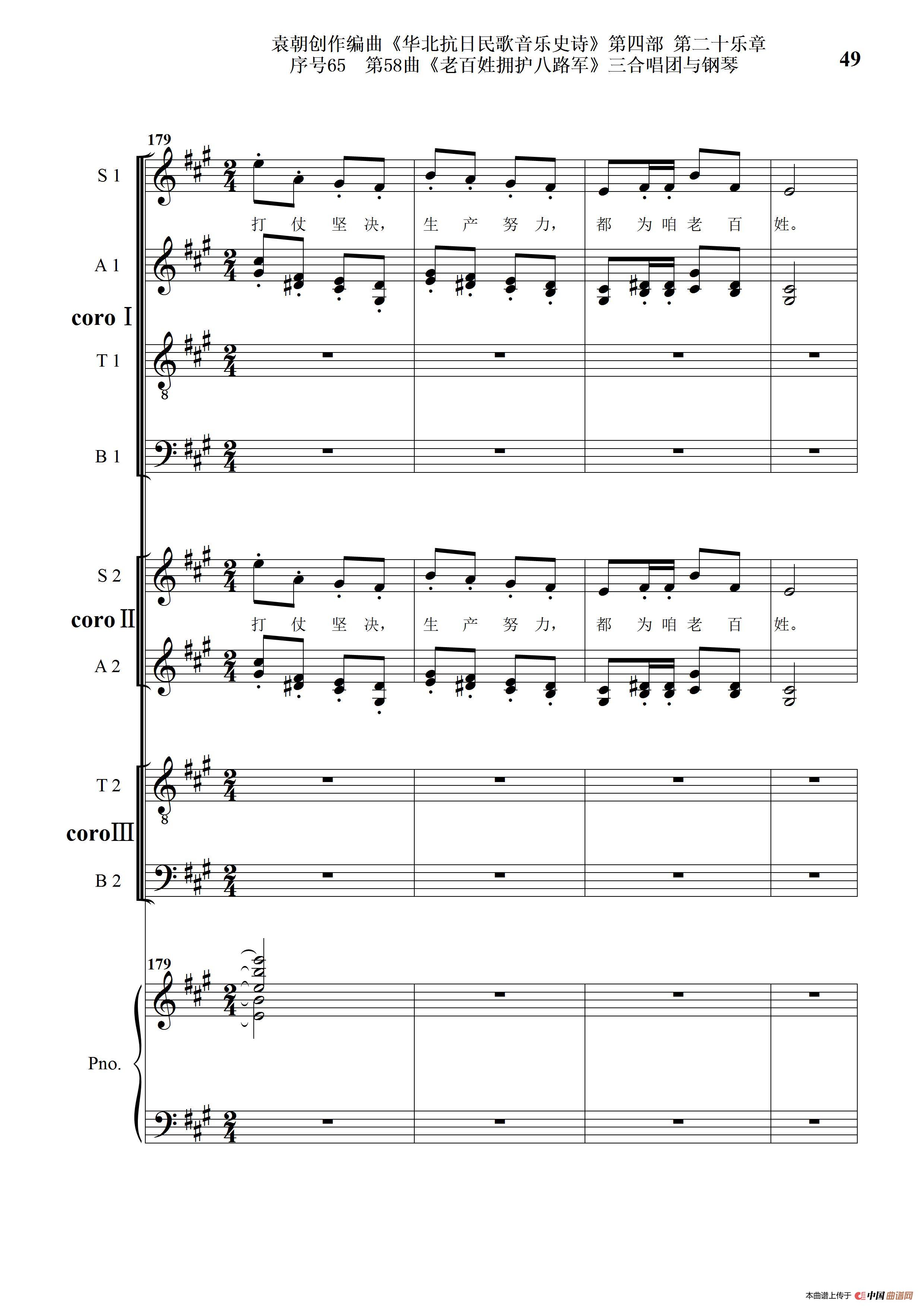 序号65第58曲《老百姓拥护八路军》三合唱团与钢琴