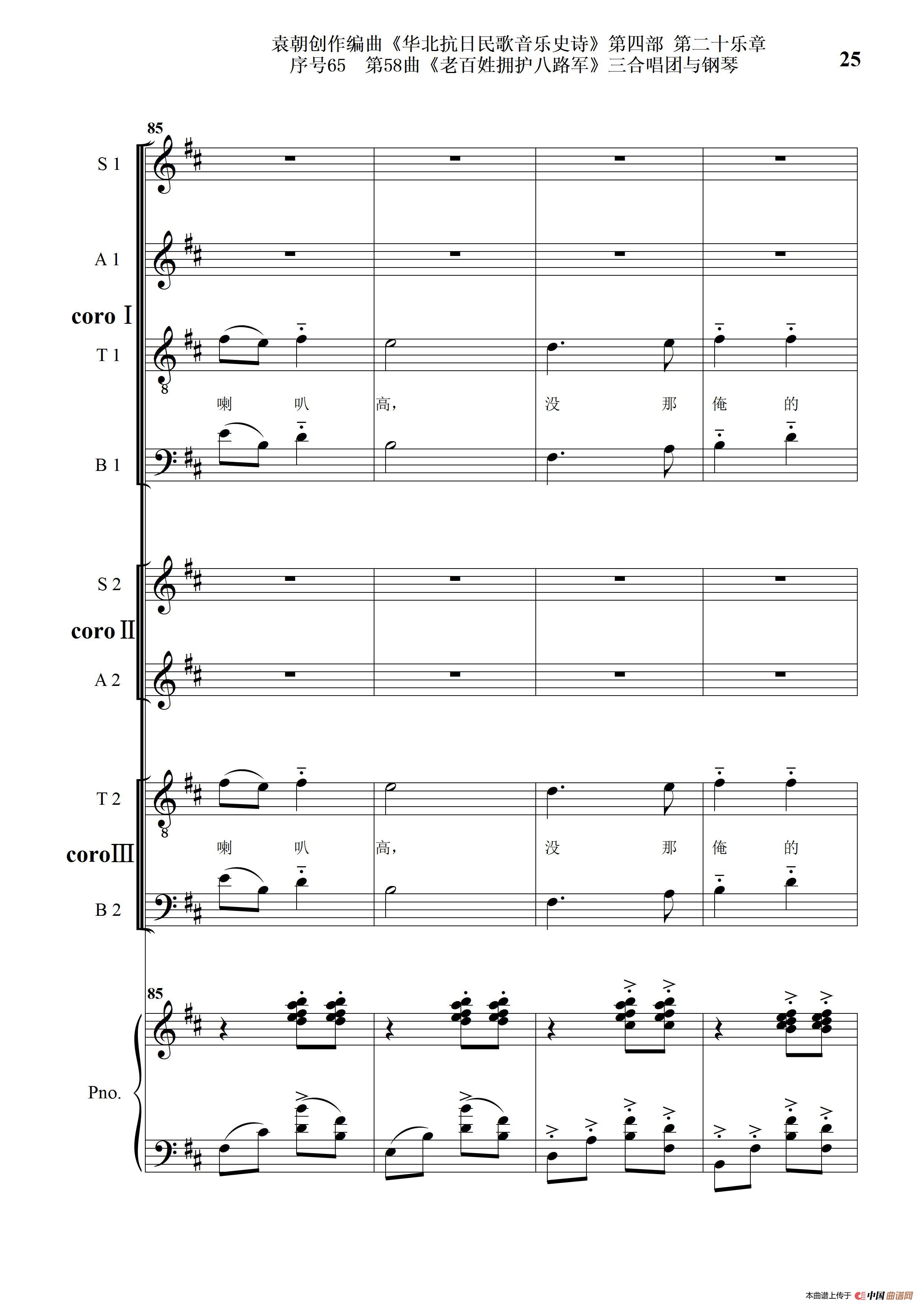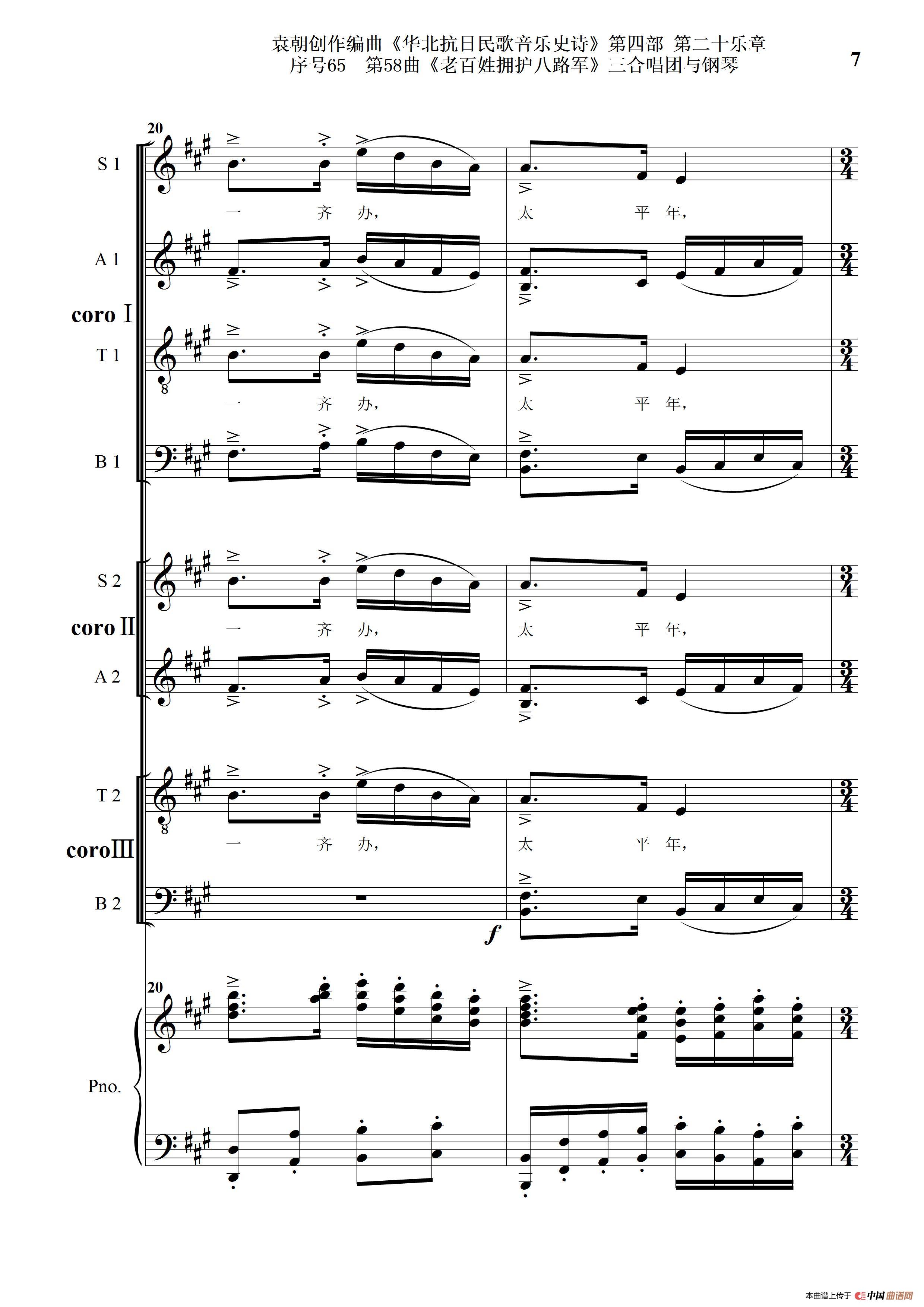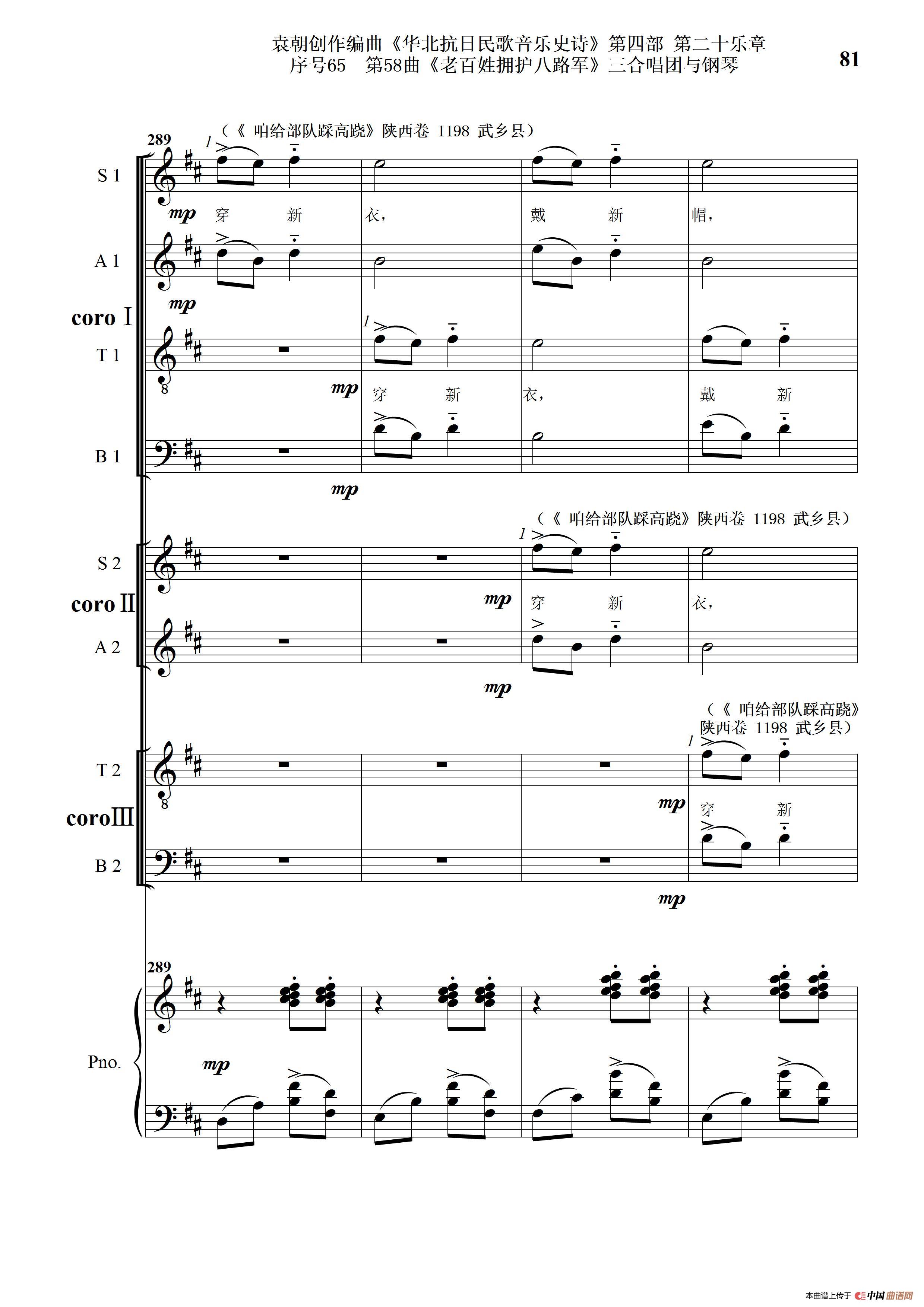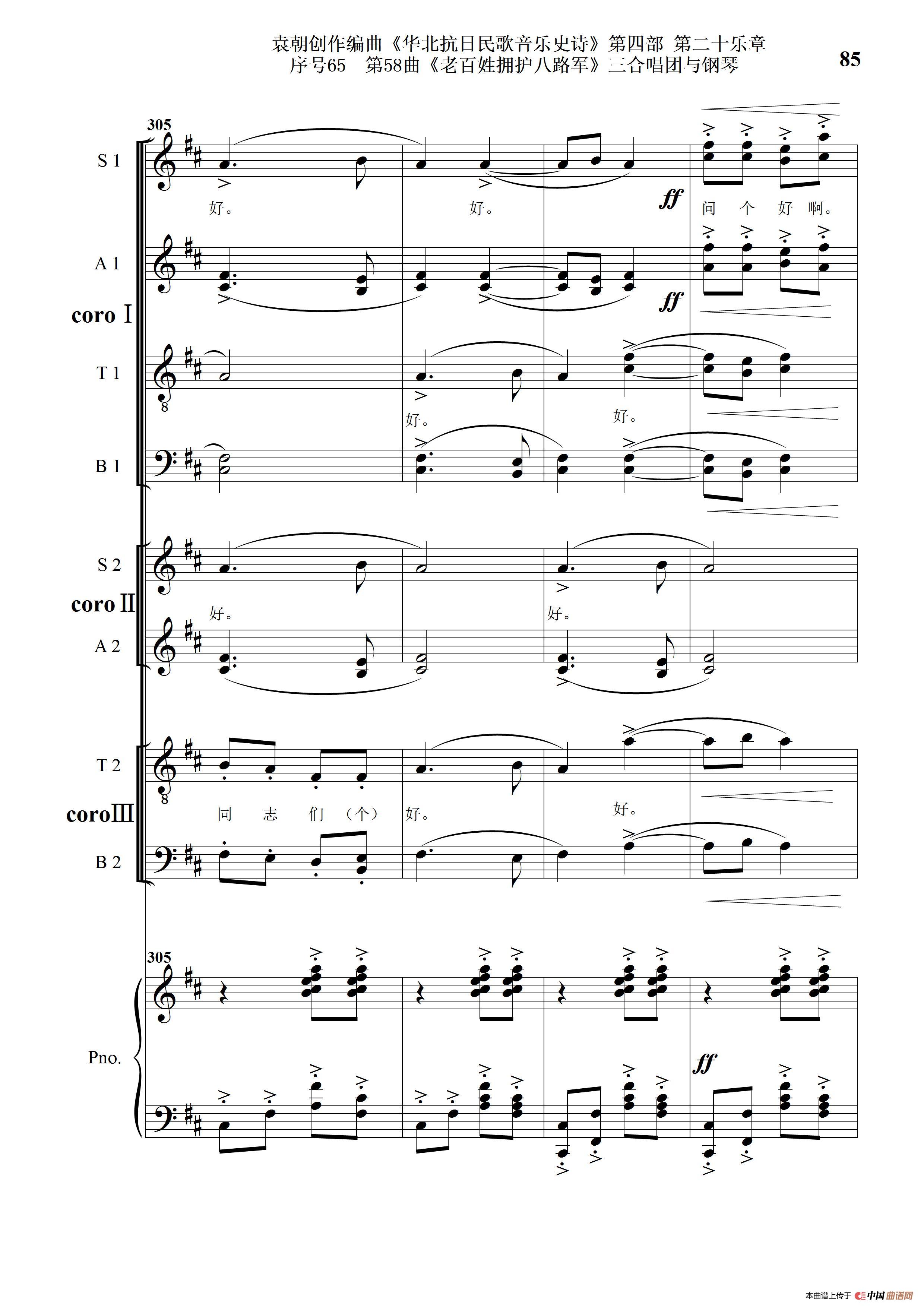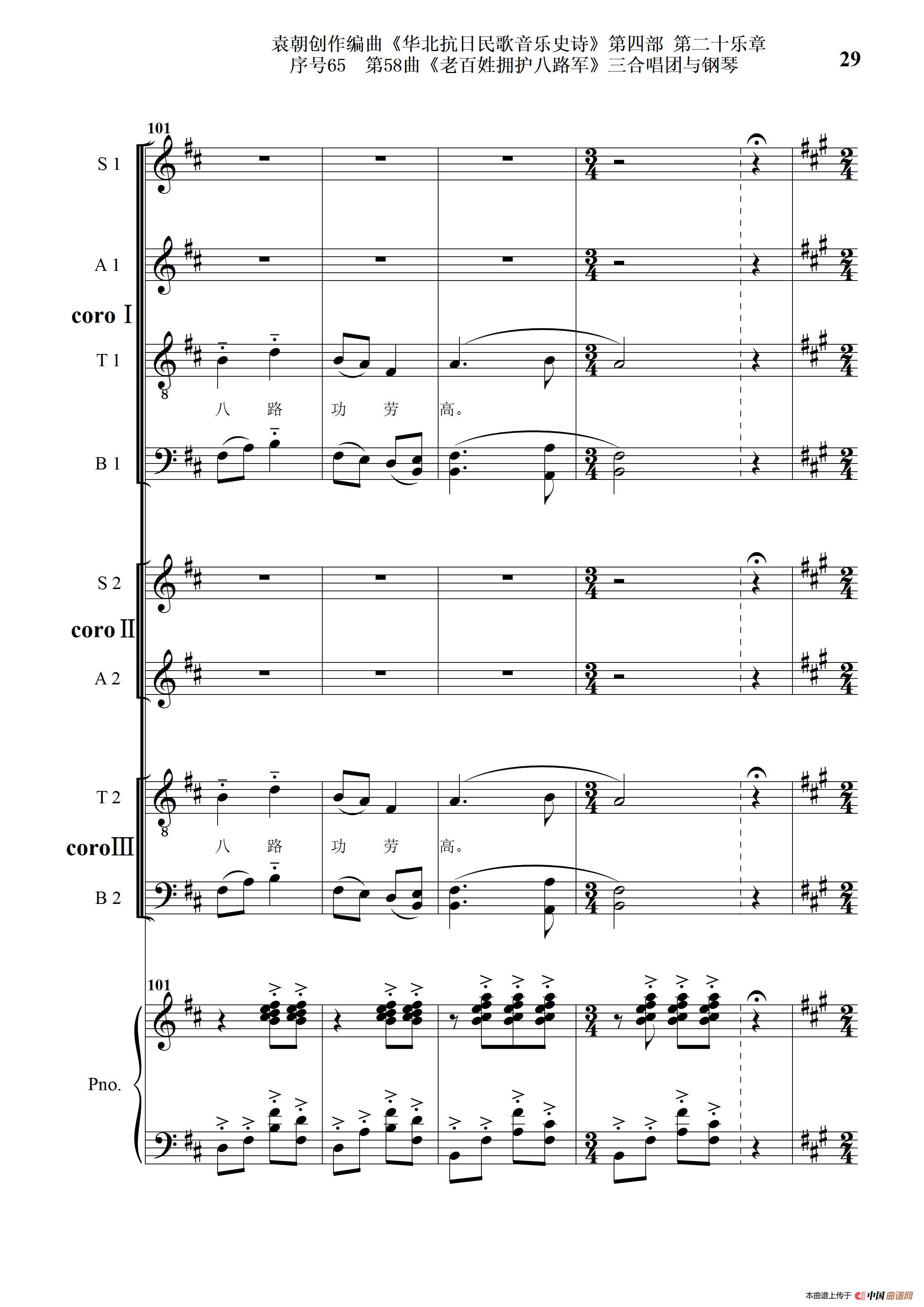 序号65第58曲《老百姓拥护八路军》三合唱团与钢琴