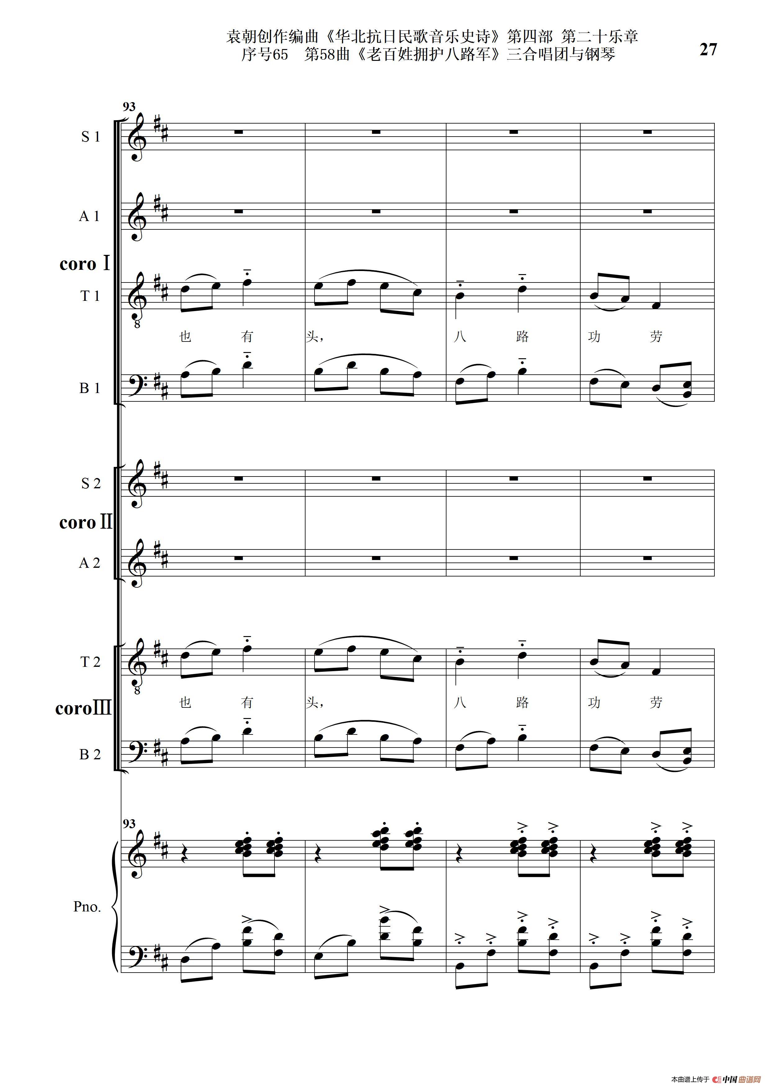 关于《序号65第58曲《老百姓拥护八路军》三合唱团与钢琴》曲谱的评论