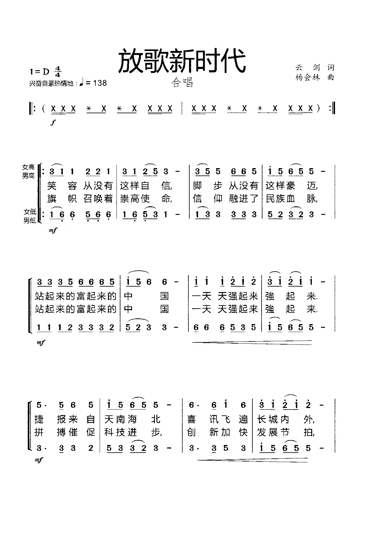 关于《放歌新时代》曲谱的评论