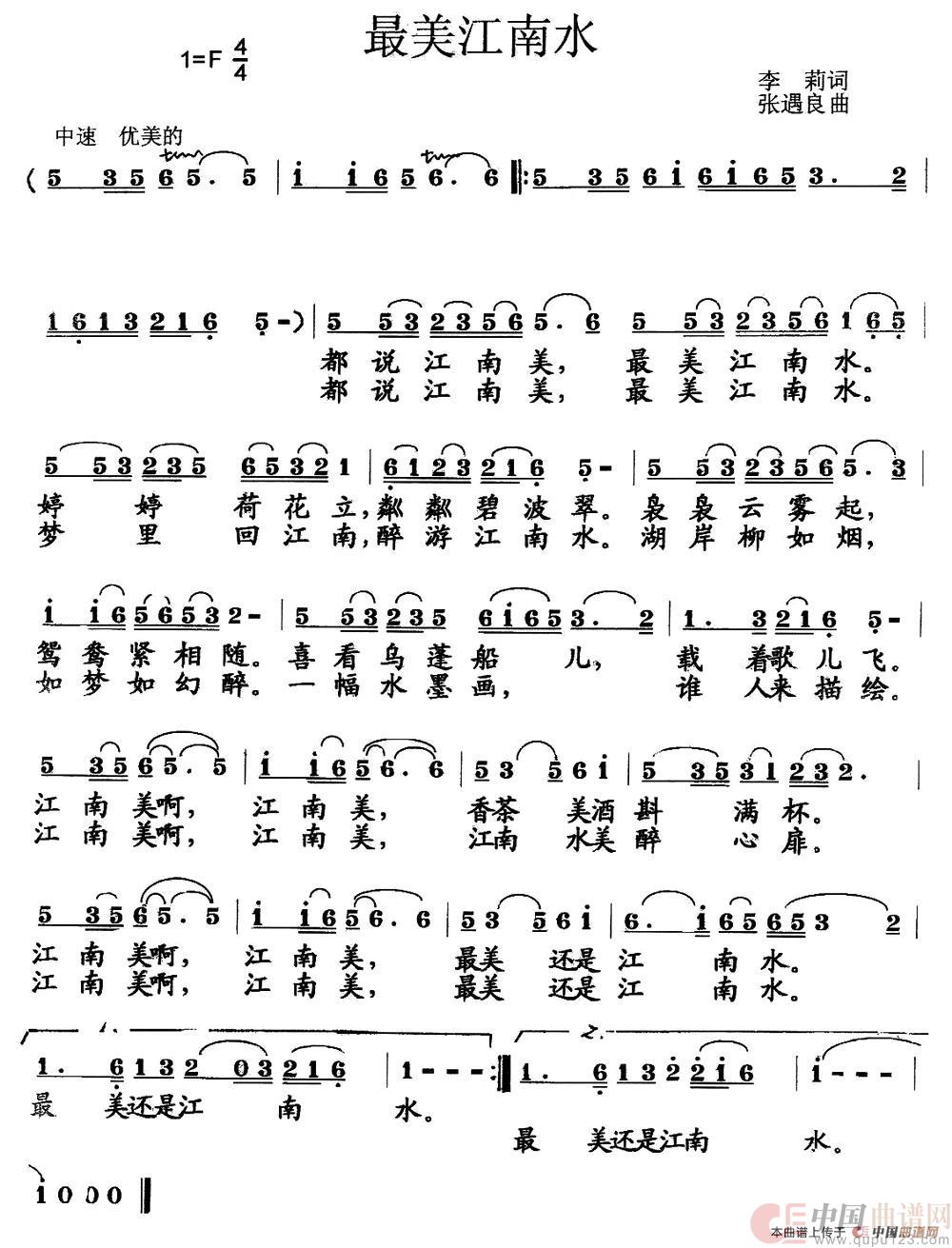 关于《最美江南水》曲谱的评论