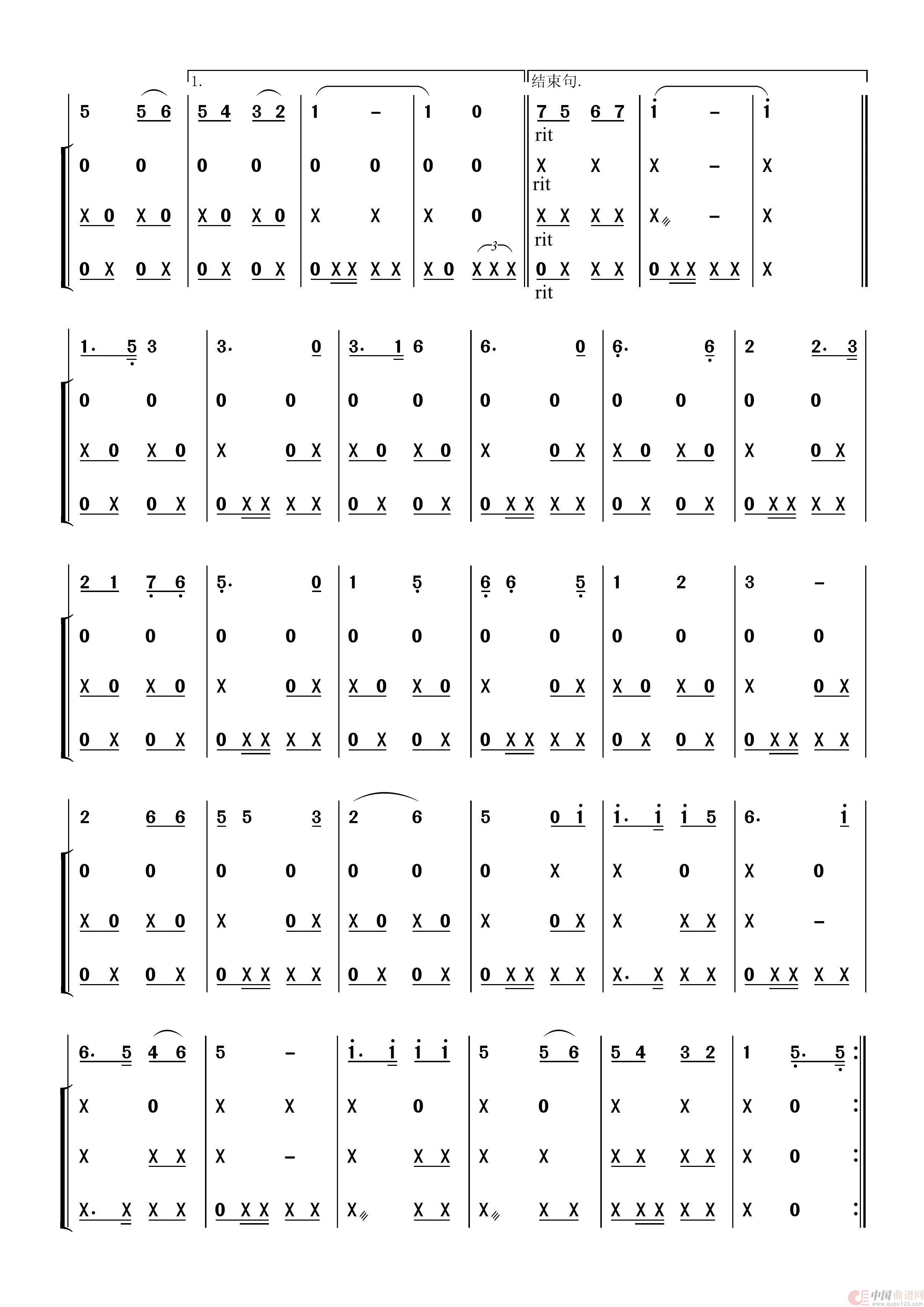 提示:在曲谱图片上单击右键,选择"图片另存为..."即可将曲谱保存到您的电脑中,打印时候可将图片插入到WORD中,调整合适大小打印即可。