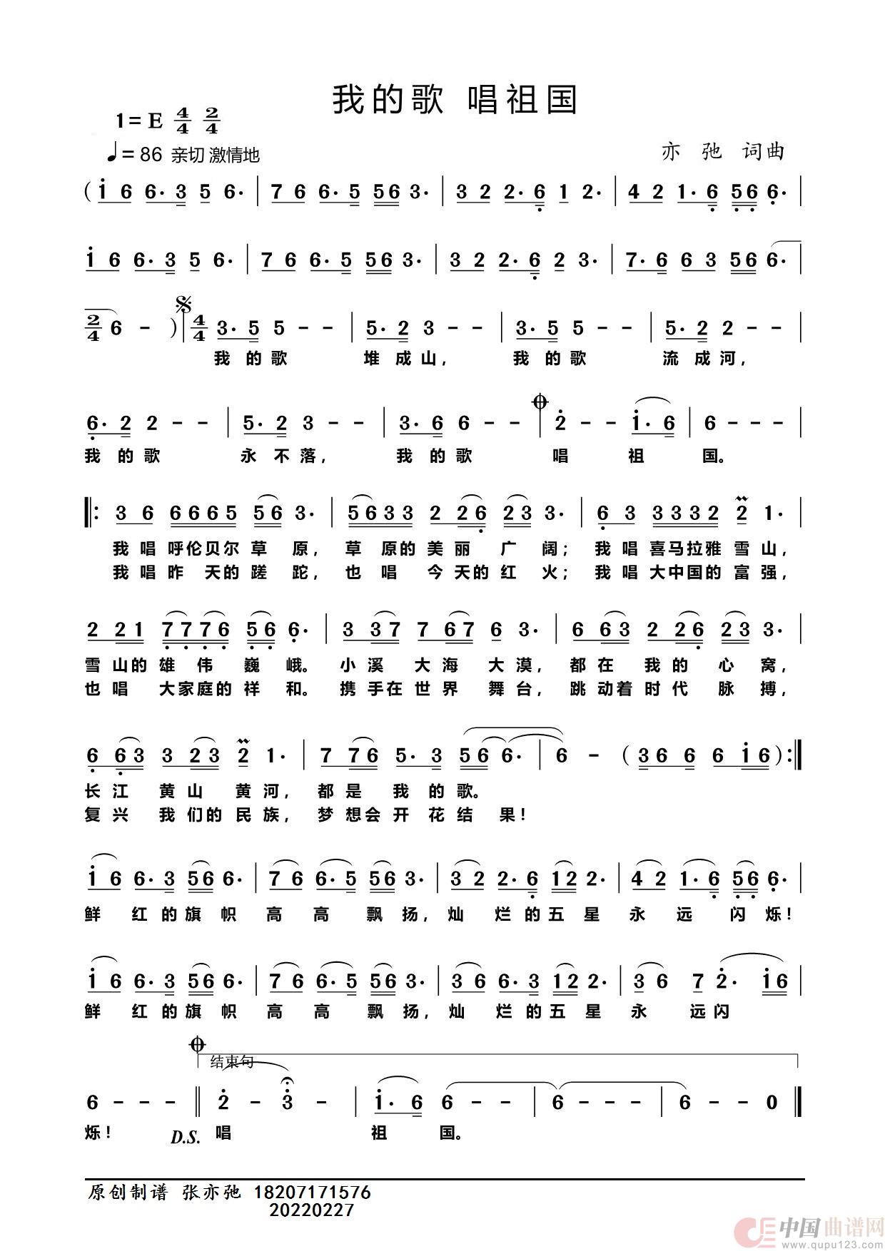 关于《我的歌 唱祖国(亦弛原创)》曲谱的评论