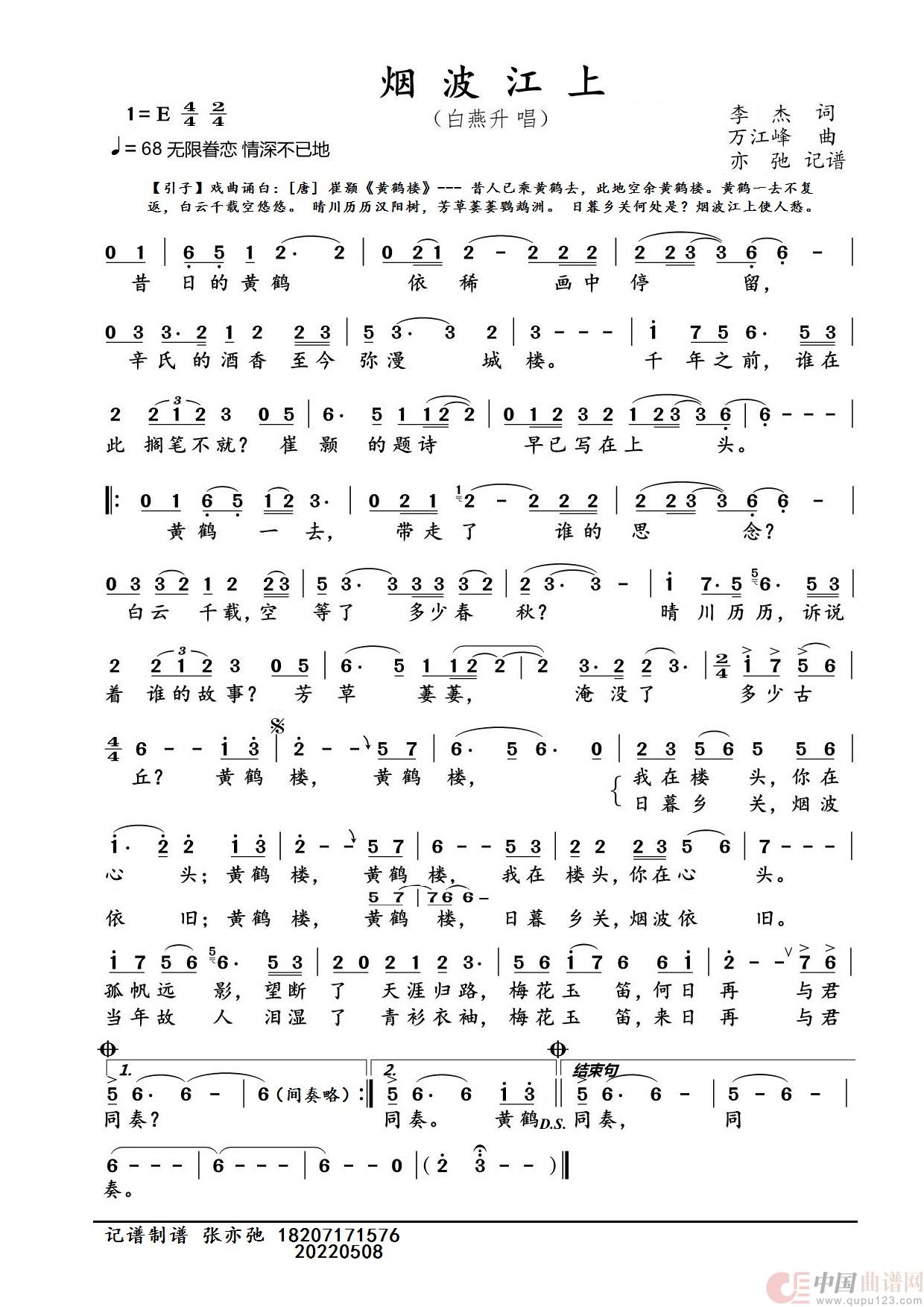 作词:李杰   作曲:万江峰   演唱(奏):白燕升   来源:张亦弛 记谱制谱   上传:咪迷米张亦弛   日期:2022-05-08   浏览次数: