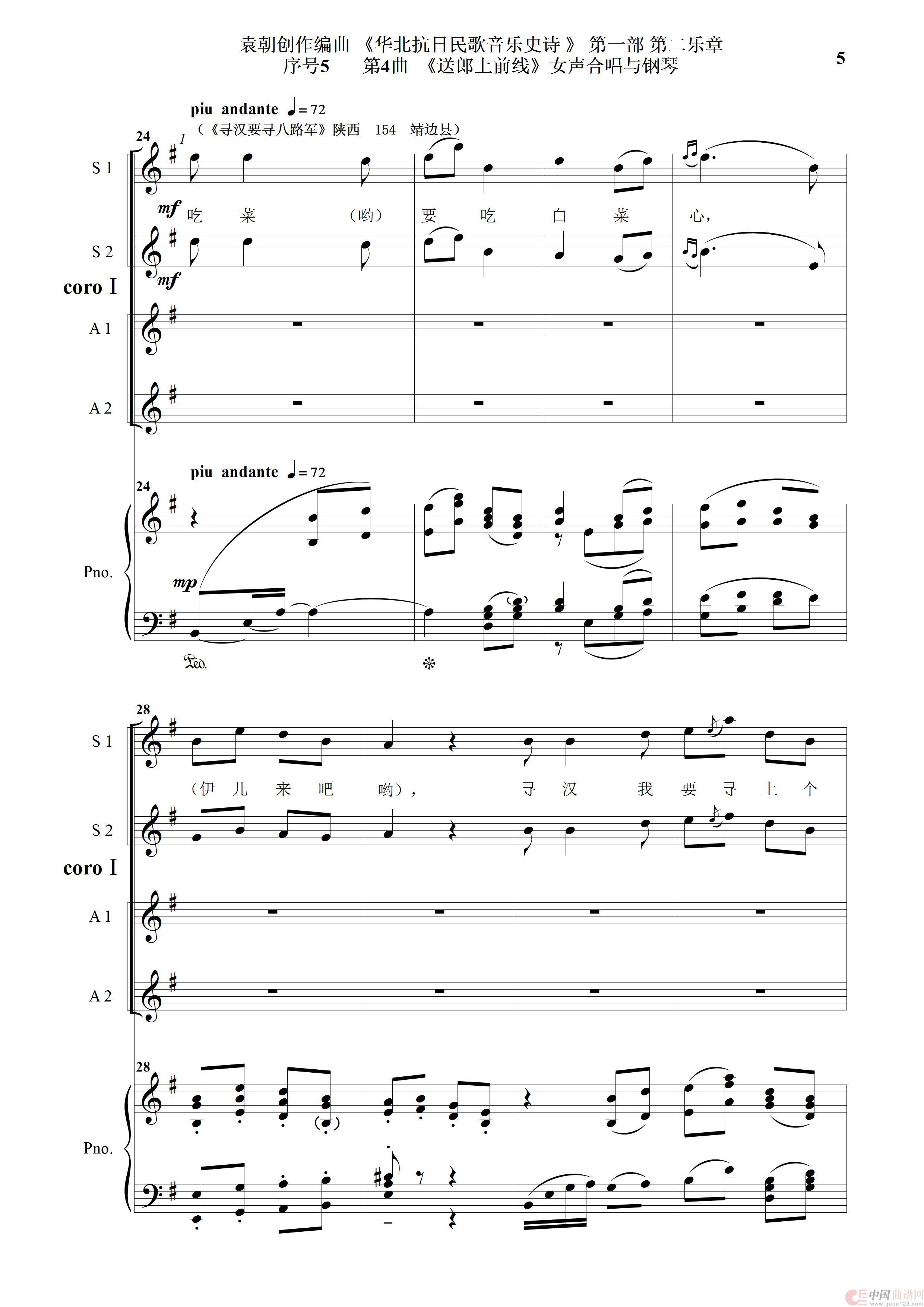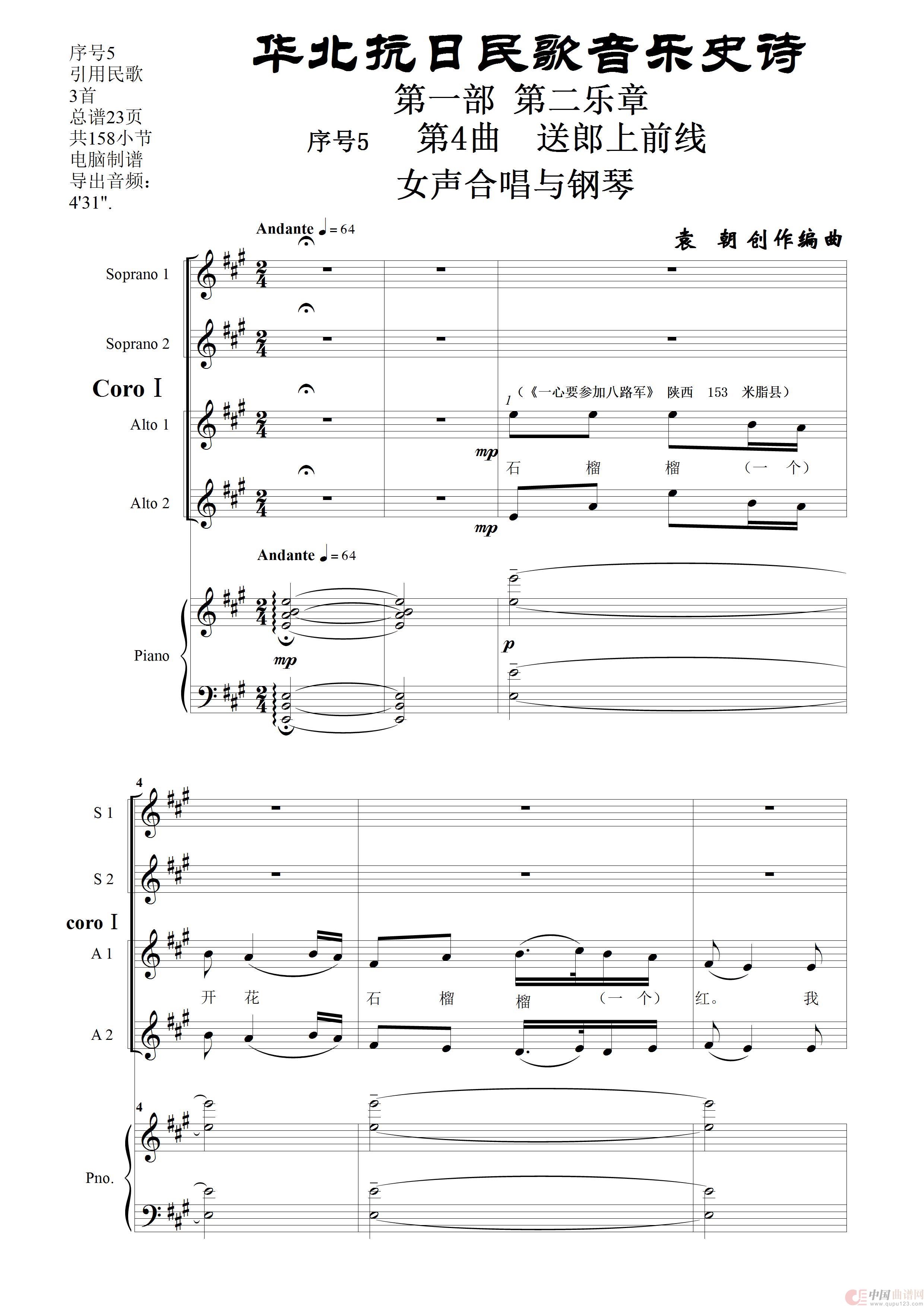 重发:序号5第4曲《送郎上前线》Ⅰ女声合唱与钢琴