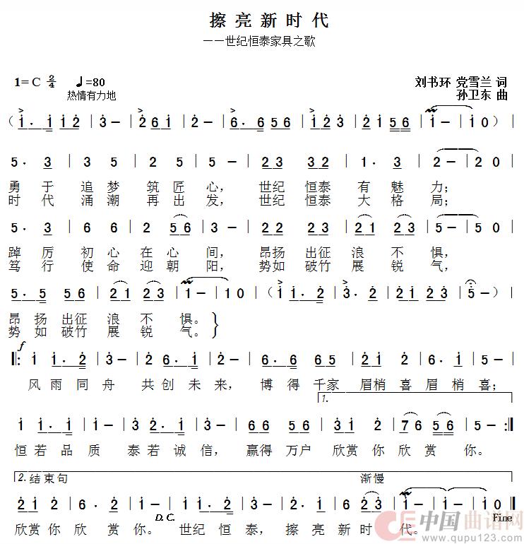 关于《擦亮新时代(刘书环党雪兰词孙卫东曲)》曲谱的评论