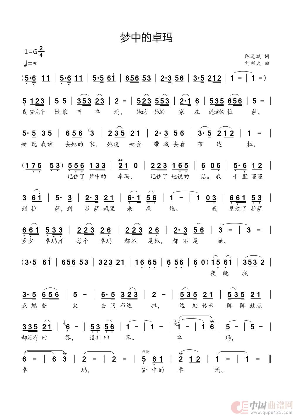 关于《梦中的卓玛》曲谱的评论