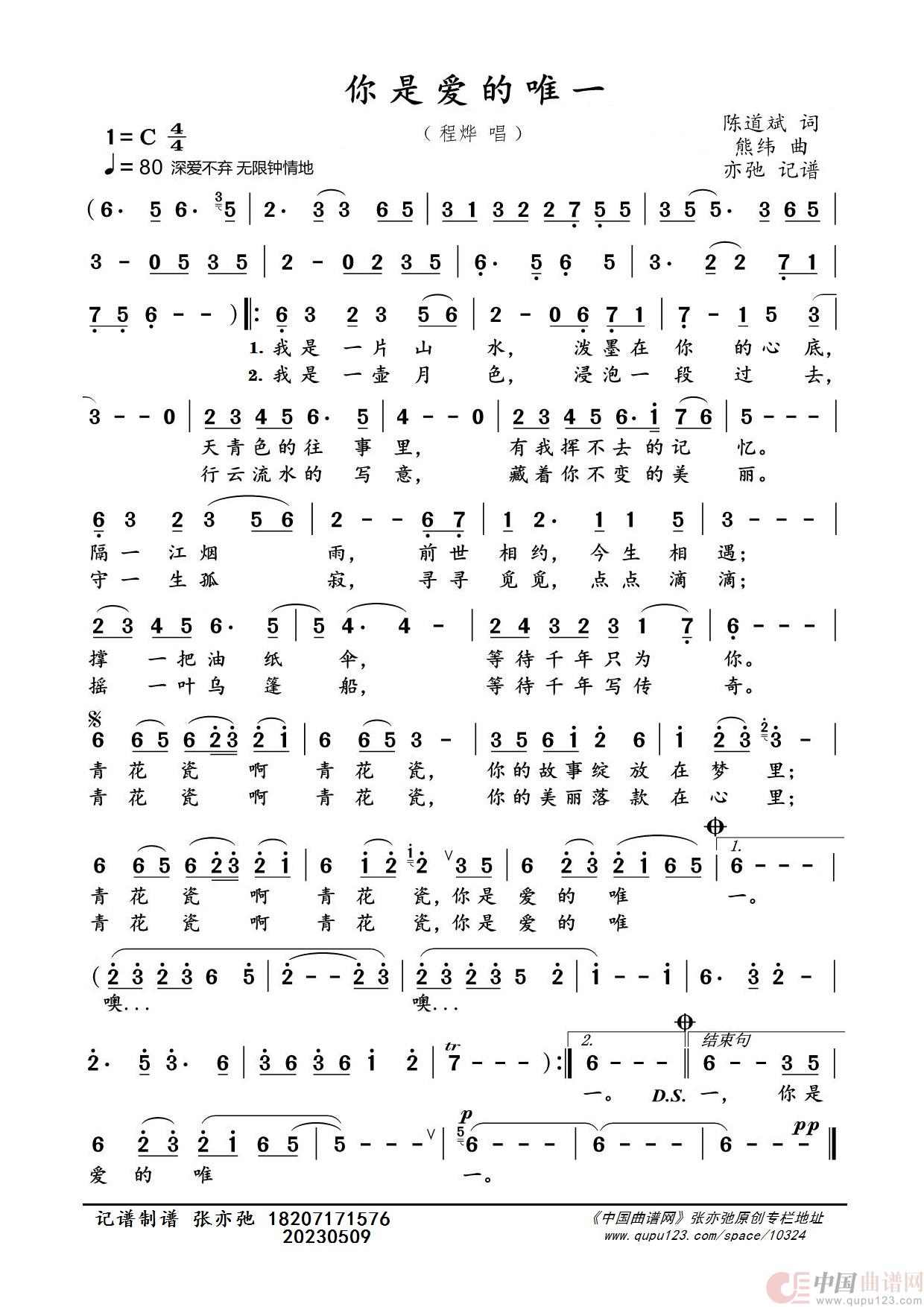 你是爱的唯一(亦弛记谱)(1)_原文件名:你是爱的唯一_Page1.jpg
