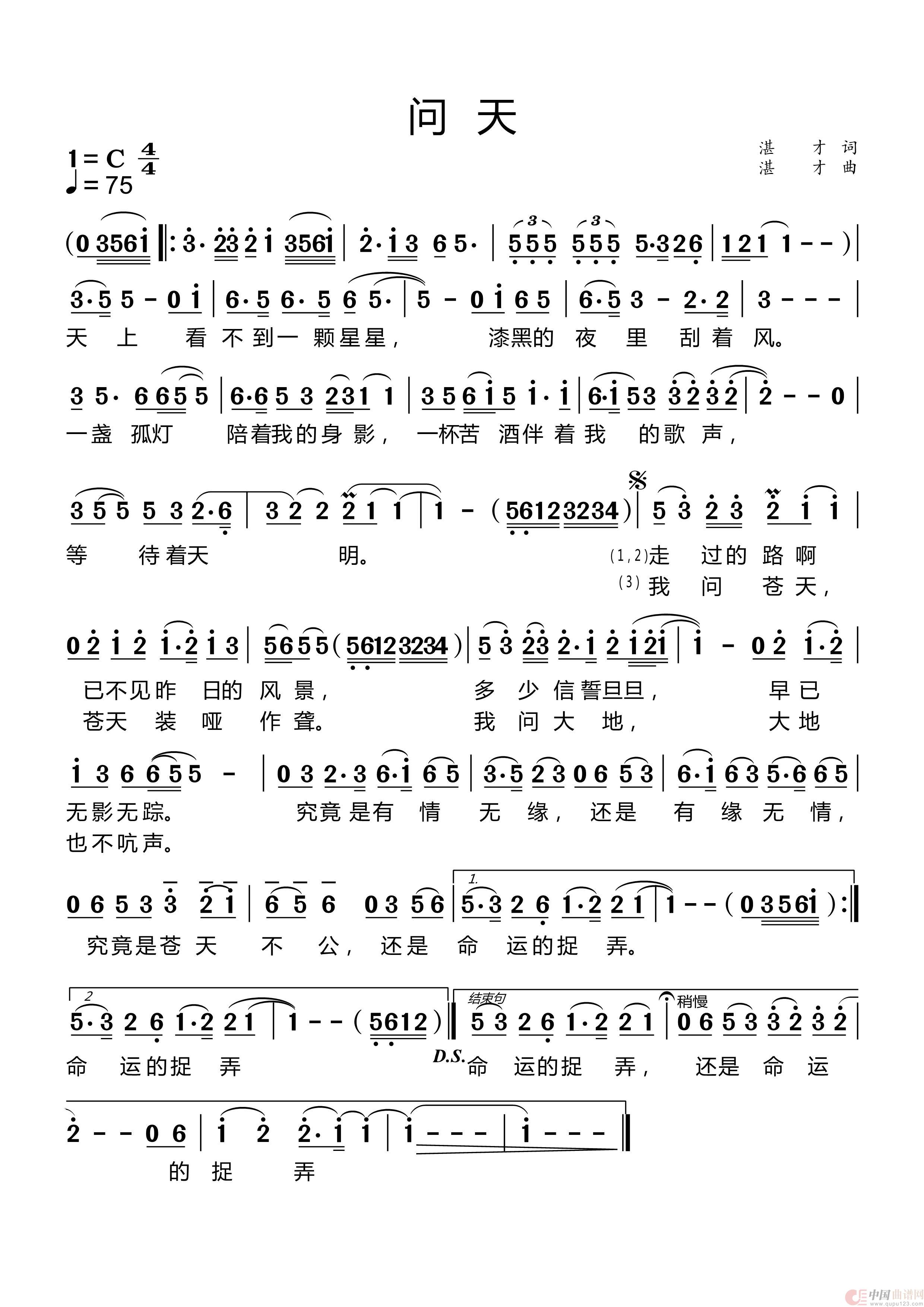 关于《问天》曲谱的评论