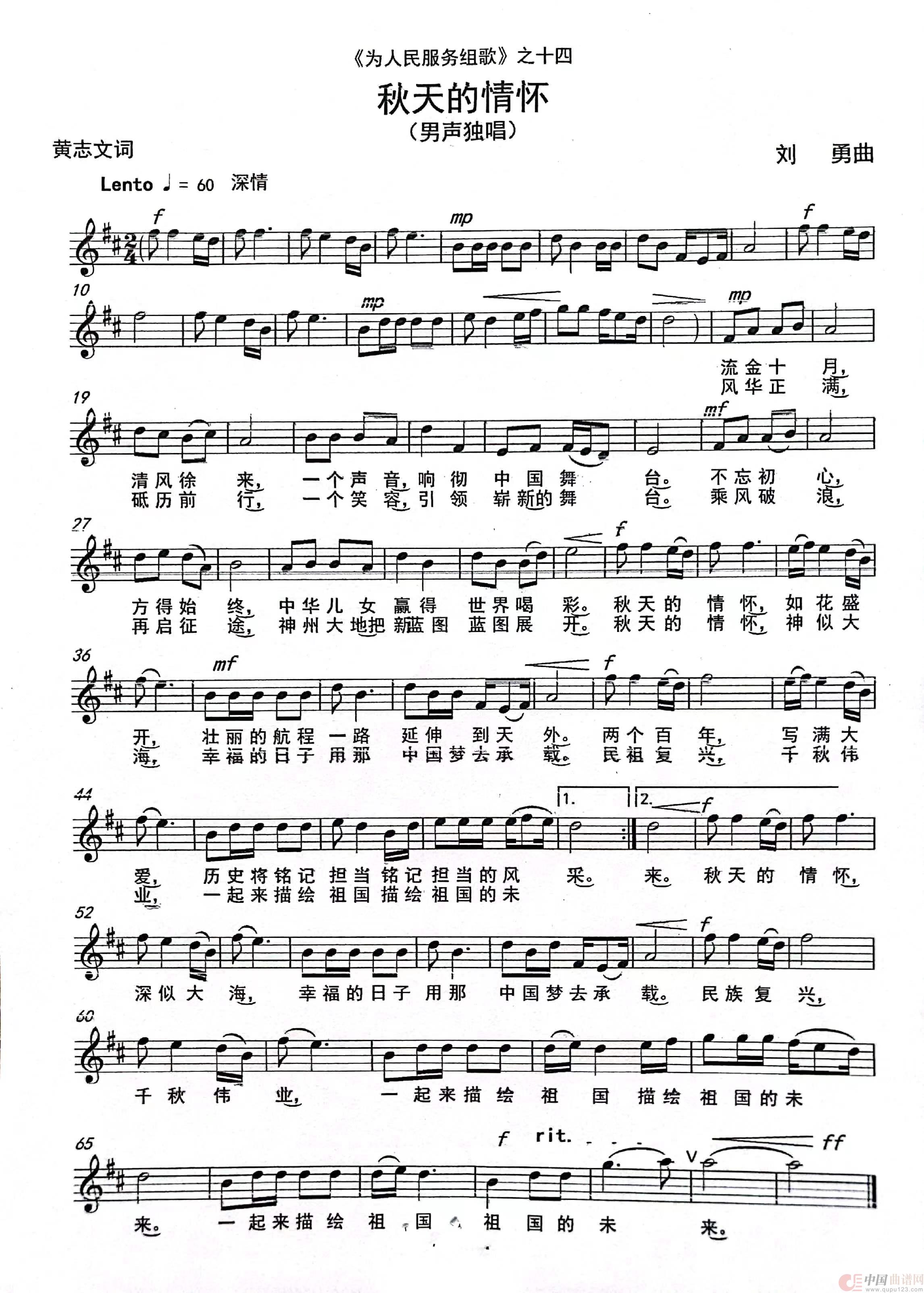 《《秋天的情怀》(男声独唱)》文本歌词