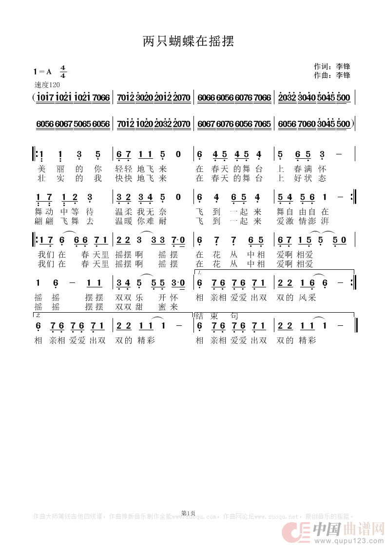 关于《两只蝴蝶在摇摆》曲谱的评论
