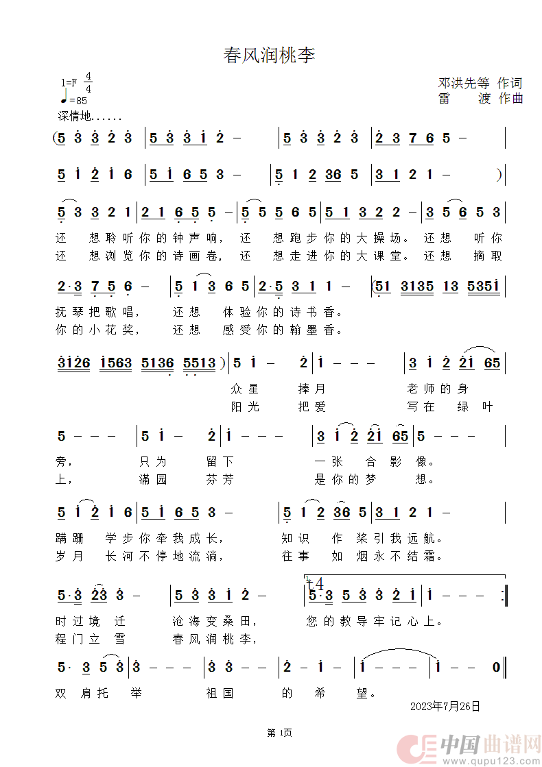 《春风润桃李》文本歌词