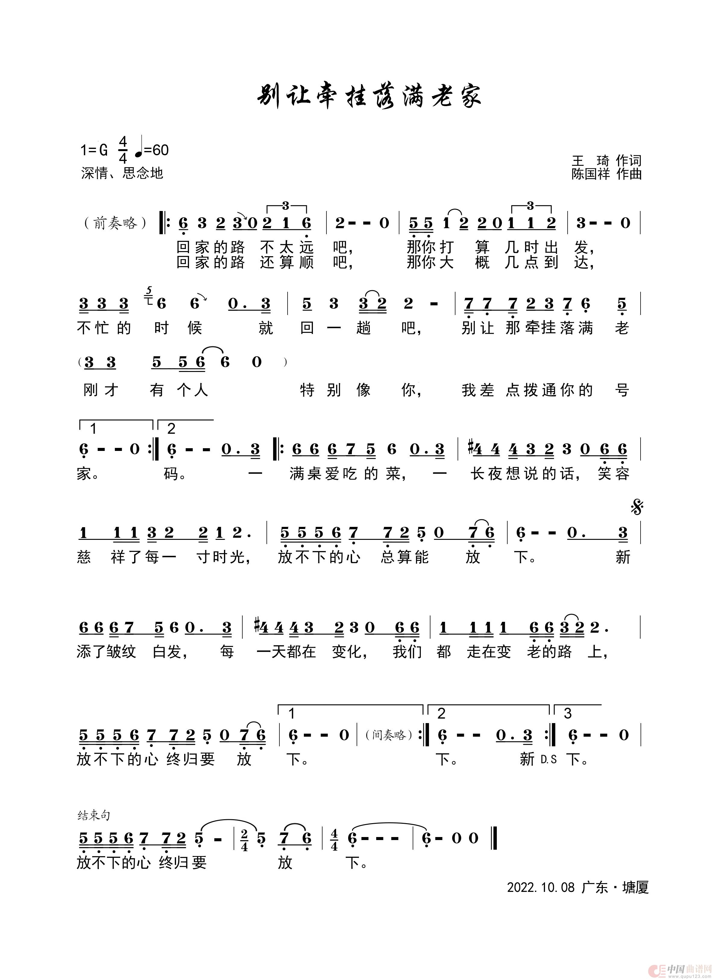 关于《别让牵挂落满老家》曲谱的评论