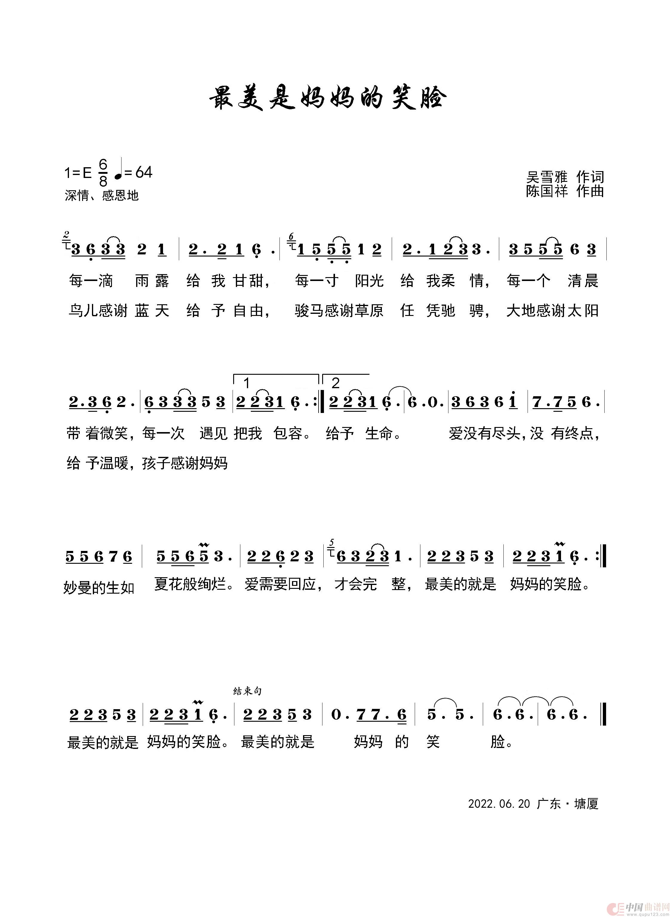 关于《最美是妈妈的笑脸》曲谱的评论