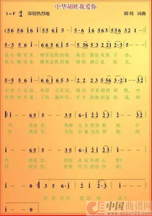 《中华胡姓我爱你》文本歌词