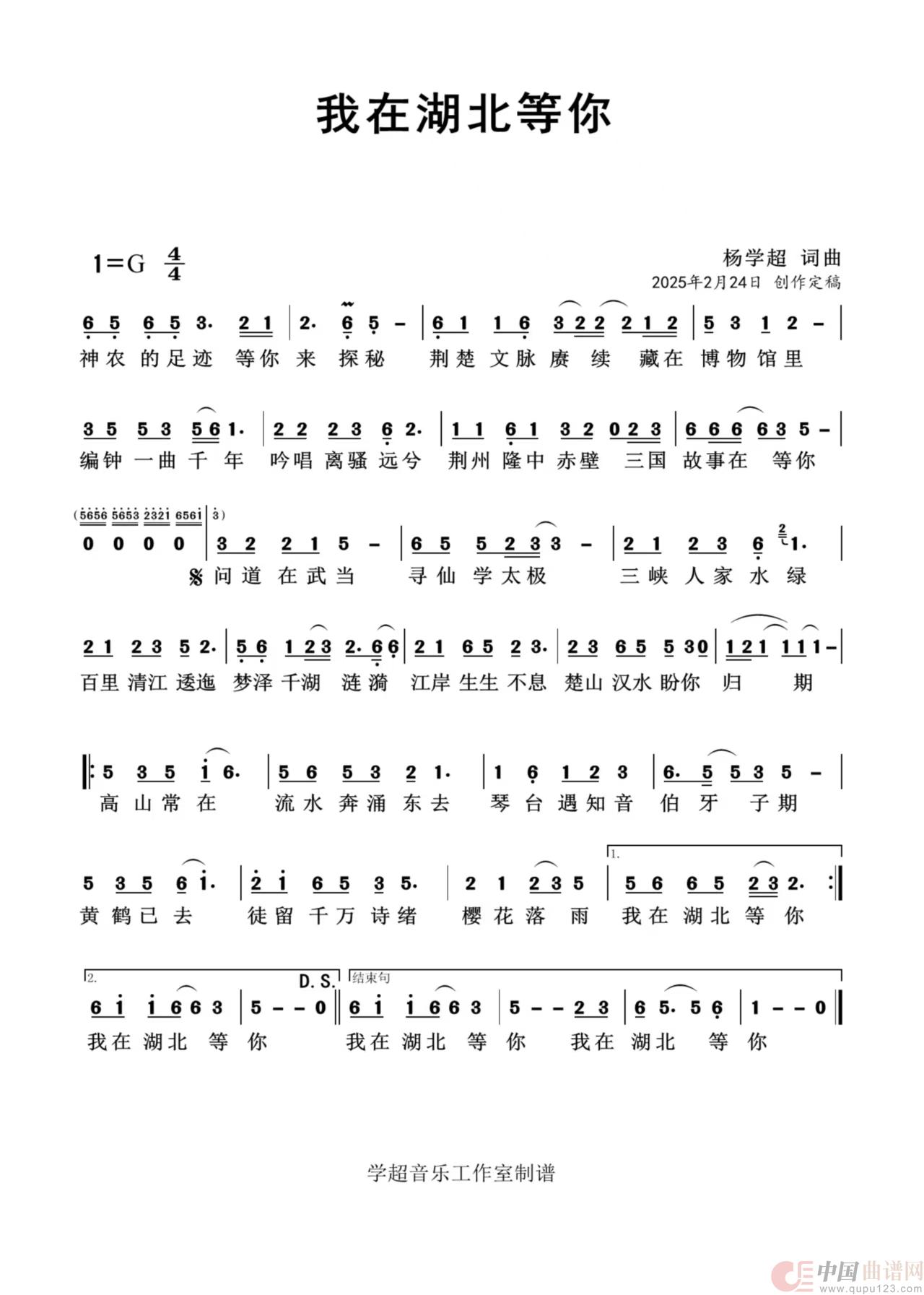 我在湖北等你(杨学超作品)(1)_原文件名:我在湖北等你 歌谱.jpg