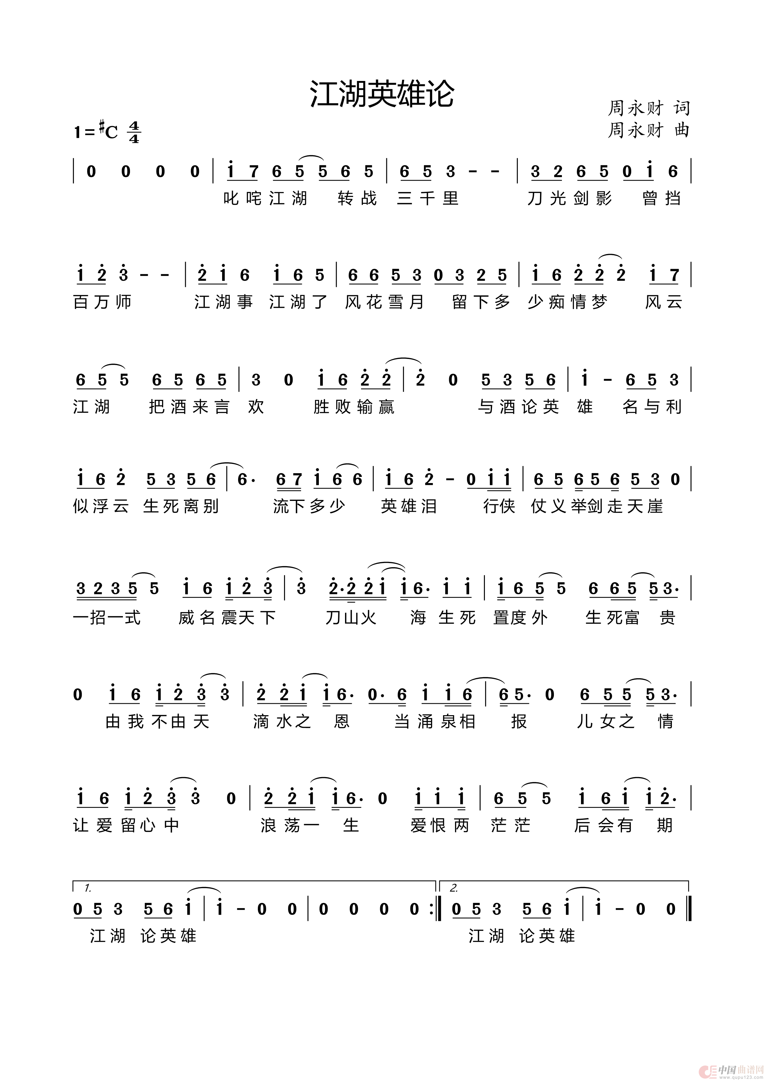 提示:在曲谱图片上单击右键,选择"图片另存为..."即可将曲谱保存到您的电脑中,打印时候可将图片插入到WORD中,调整合适大小打印即可。