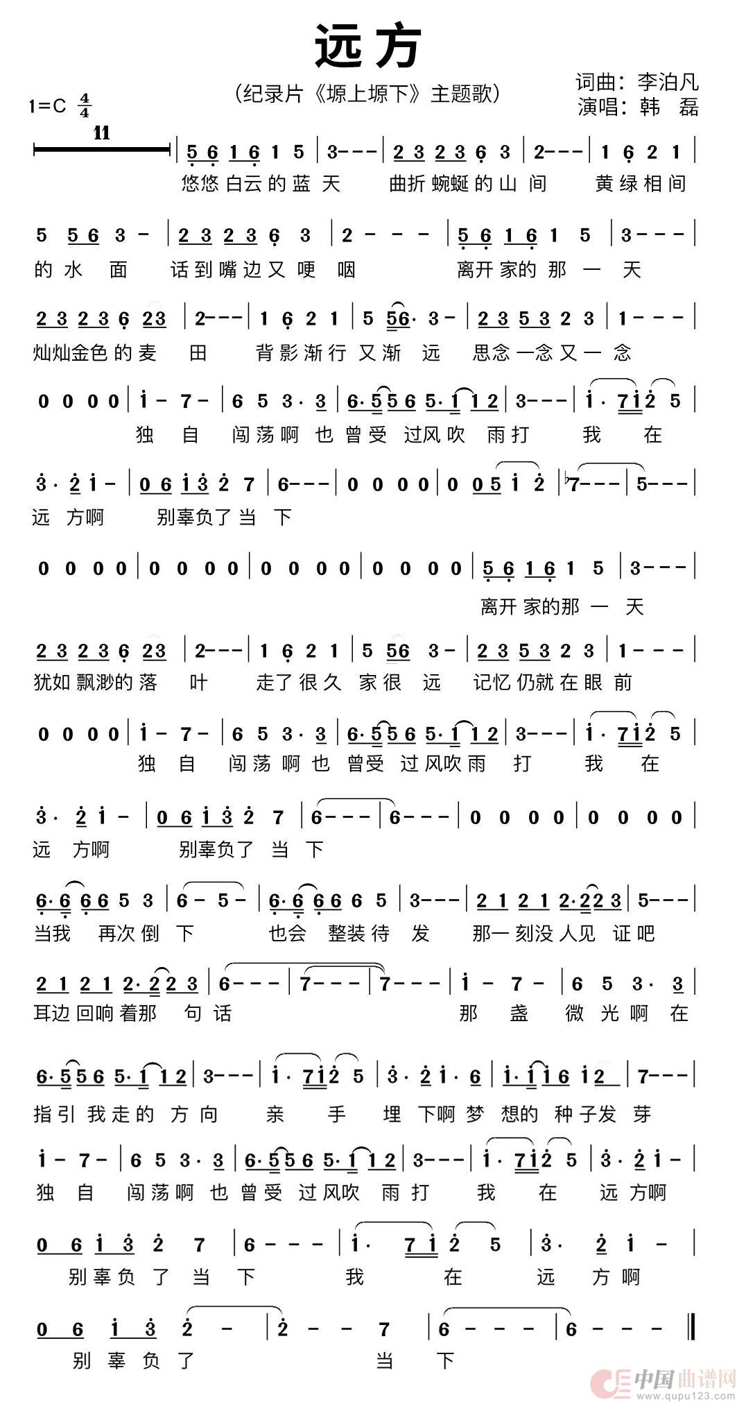 关于《远方》曲谱的评论