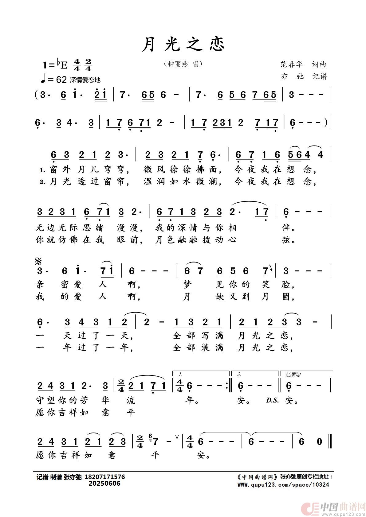 作词:范春华   作曲:范春华   演唱(奏):钟丽燕   来源:张亦弛 记谱 制谱   上传:咪迷米张亦弛   日期:2025-06-06   浏览次数:
