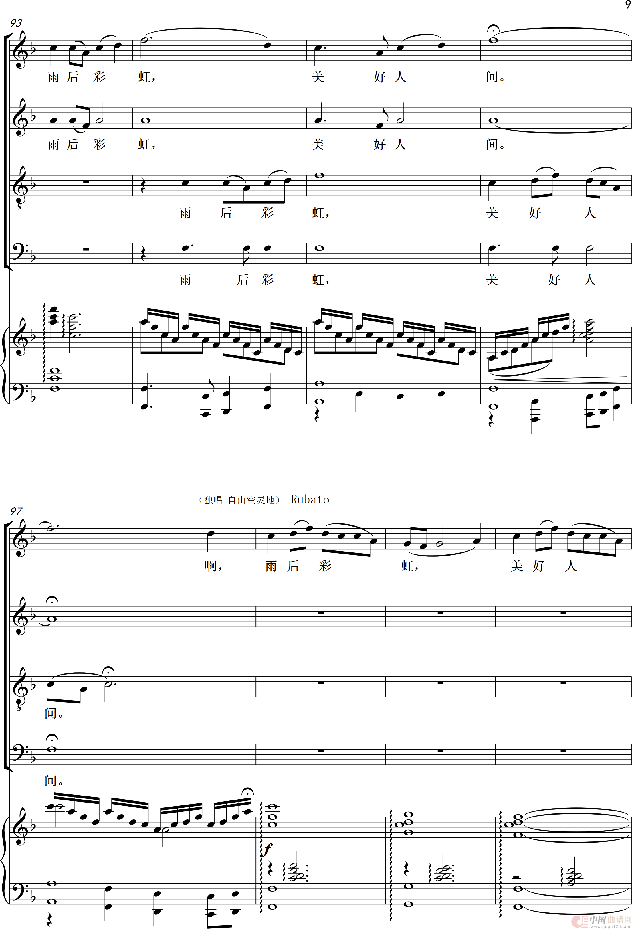 关于《雨后彩虹美好人间》曲谱的评论