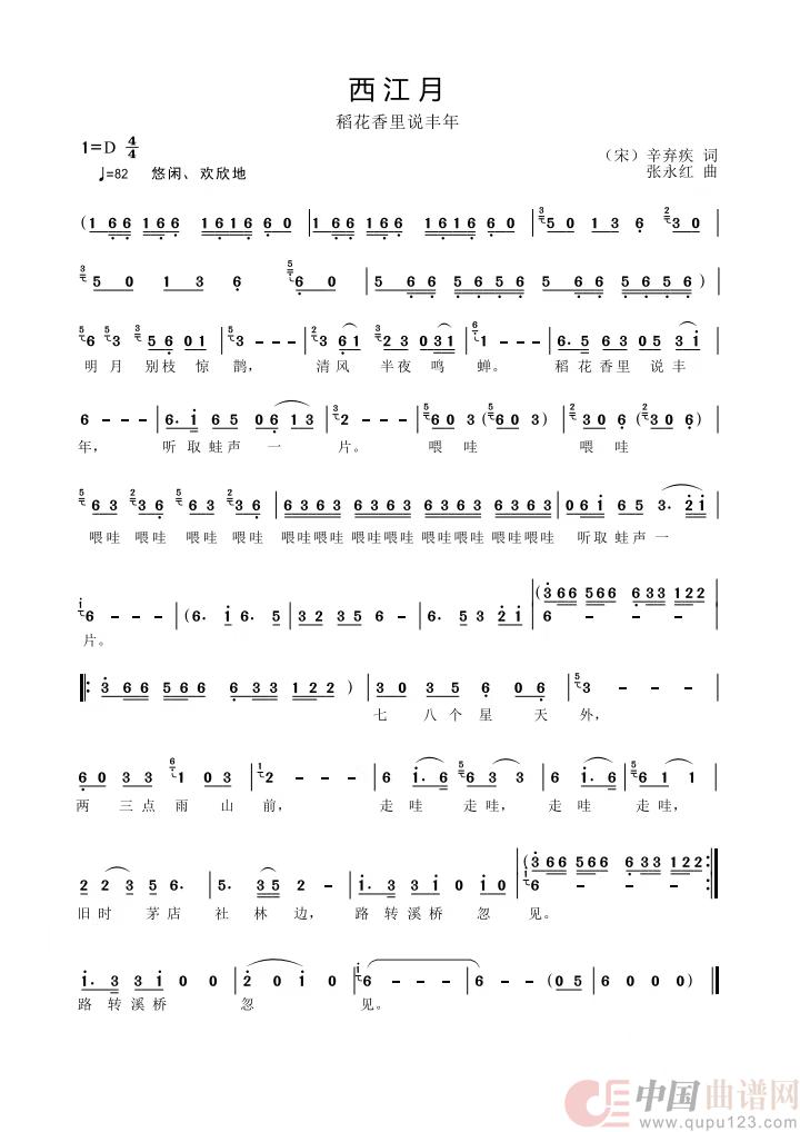 关于《西江月·稻花香里说丰年》曲谱的评论